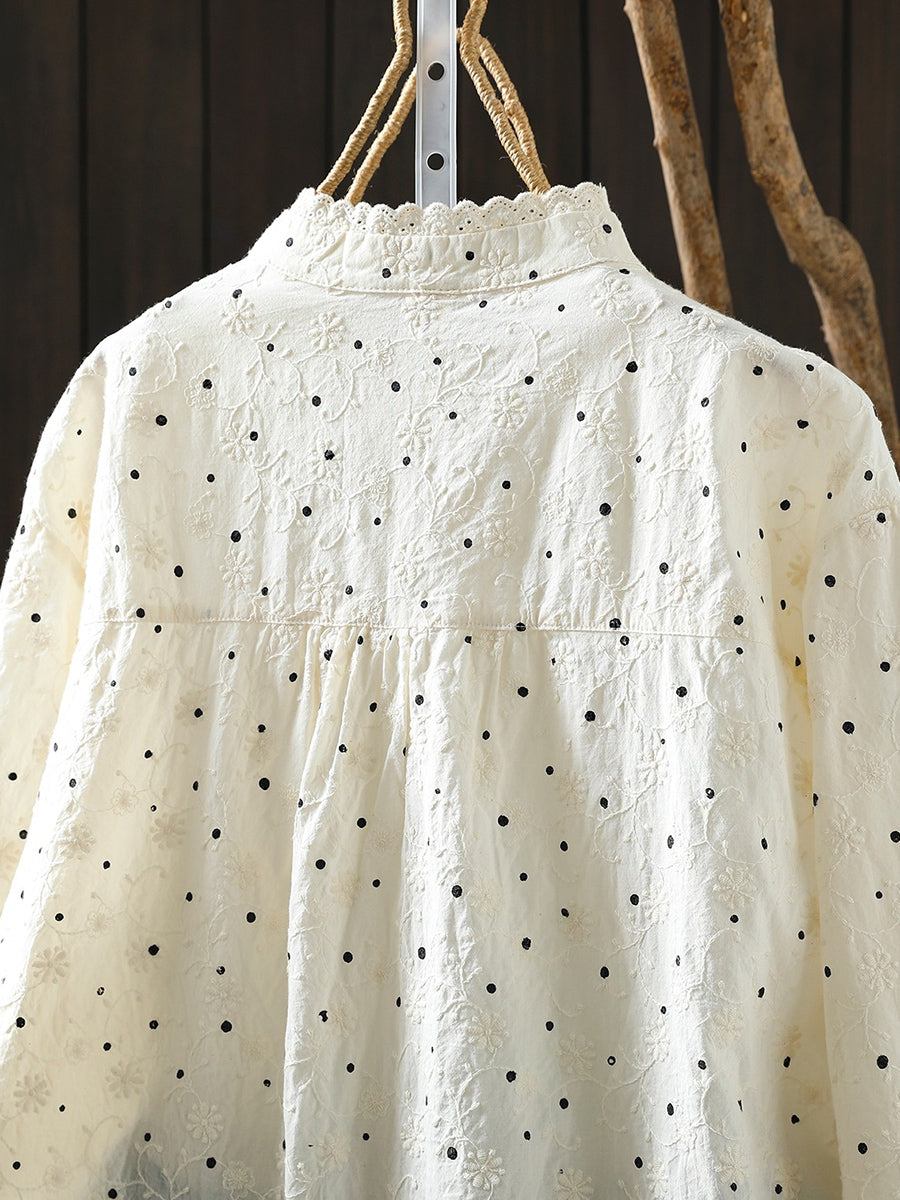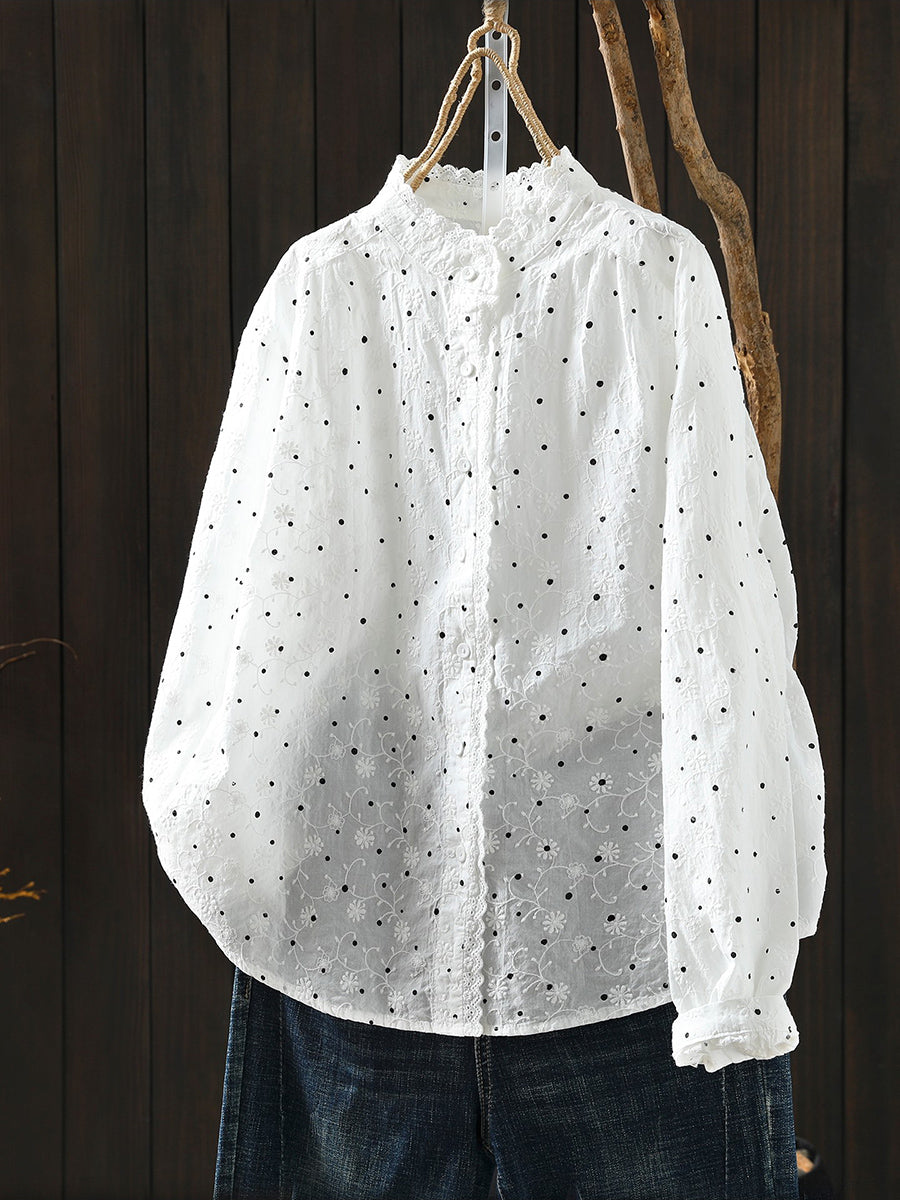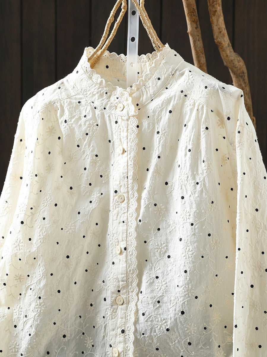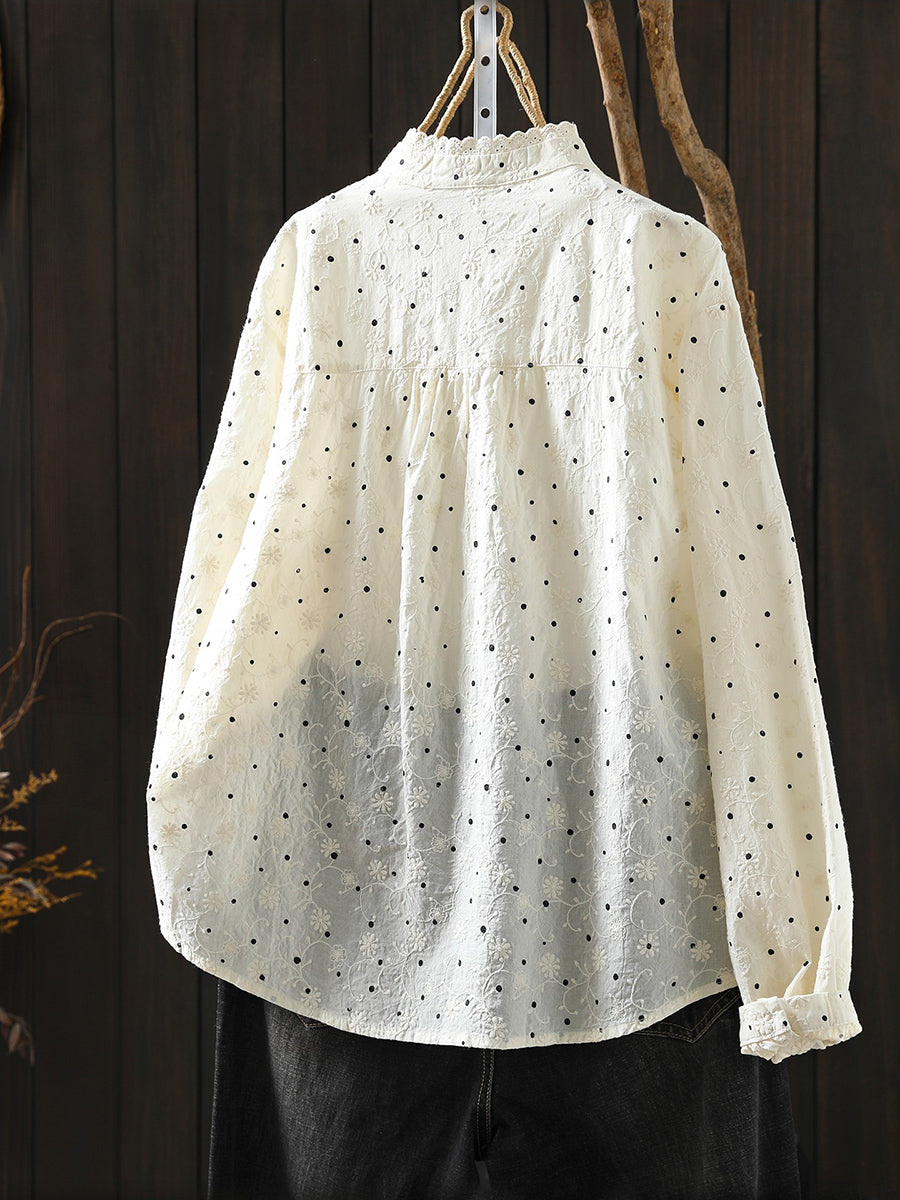 Damenbluse mit Stehkragen, 100 % Baumwolle, von Artsy Spring Dot