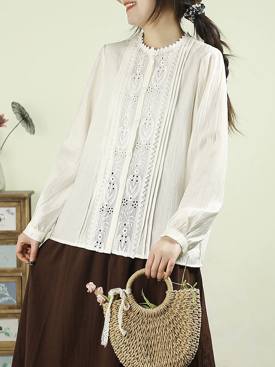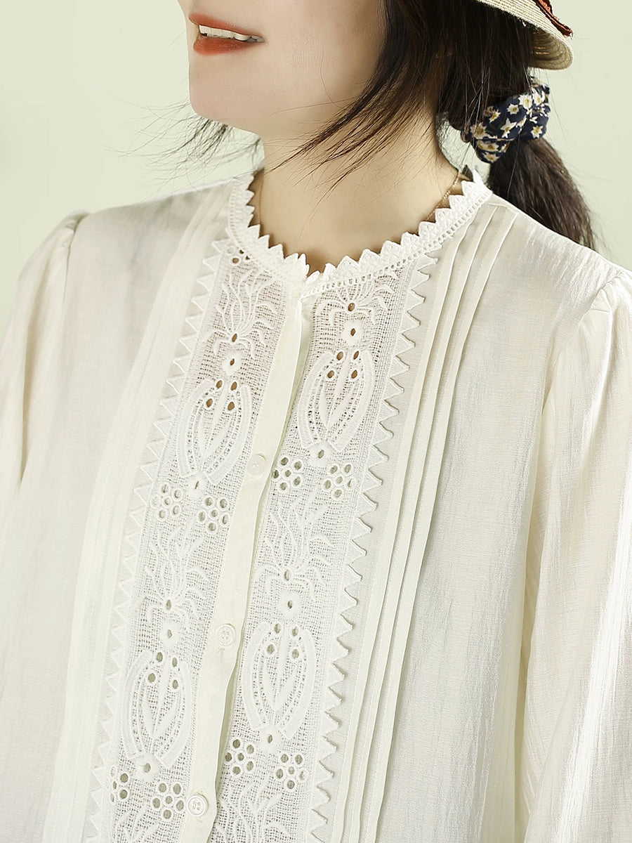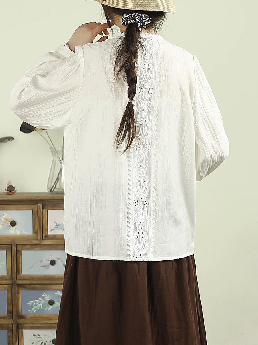 Damen-Frühlingsbluse mit kunstvoller Stickerei und Spitzeneinsatz