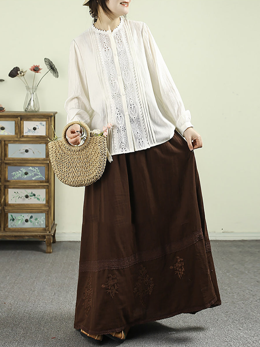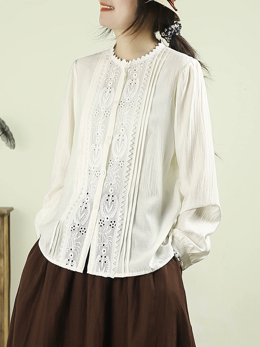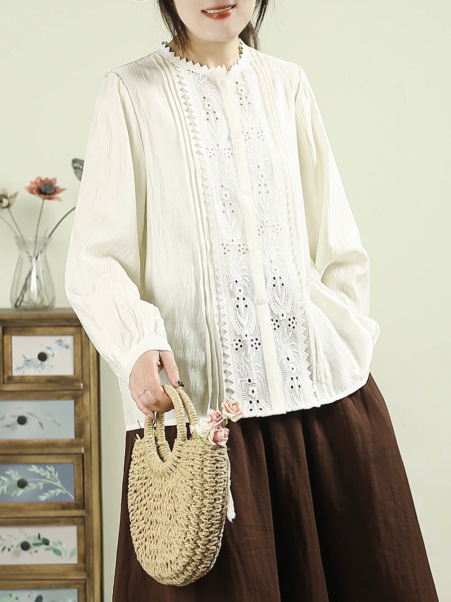 Damen-Frühlingsbluse mit kunstvoller Stickerei und Spitzeneinsatz