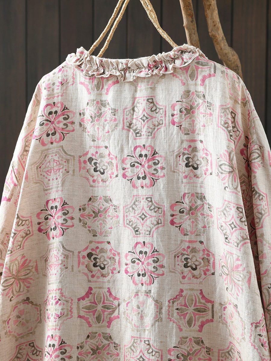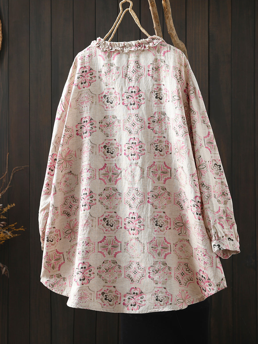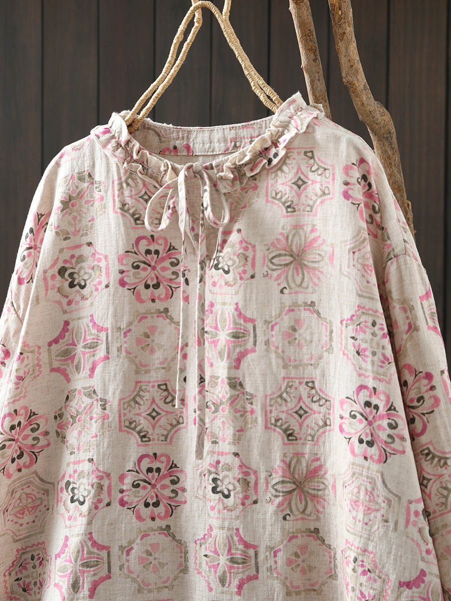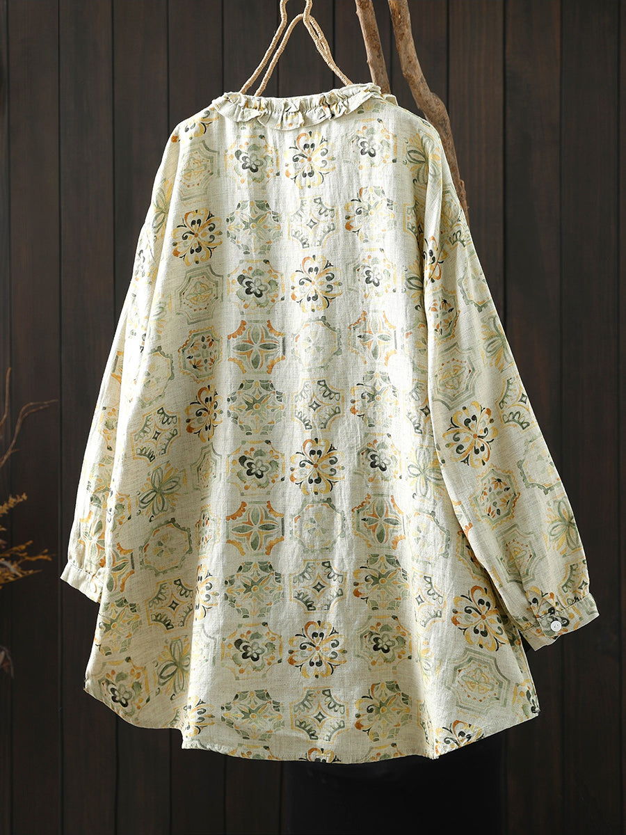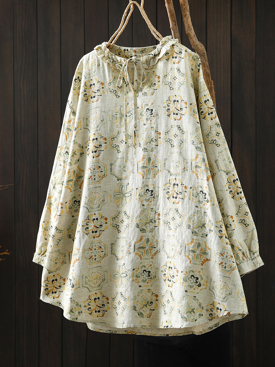 Damenbluse mit Frühlingsblumenmuster aus 100 % Leinen