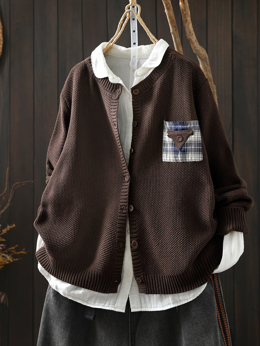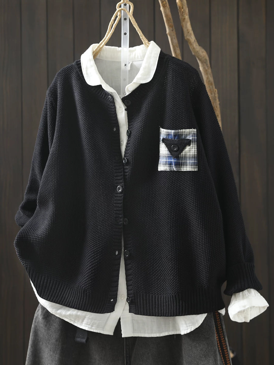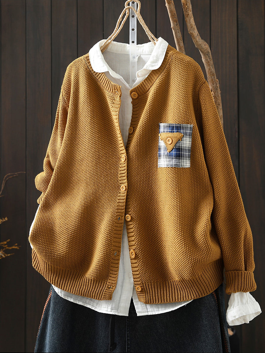 Damen-Cardigan mit Rundhalsausschnitt und Patchwork-Muster im Frühlingsstil