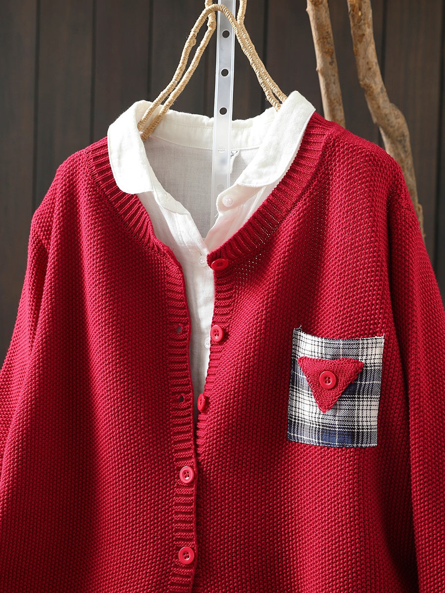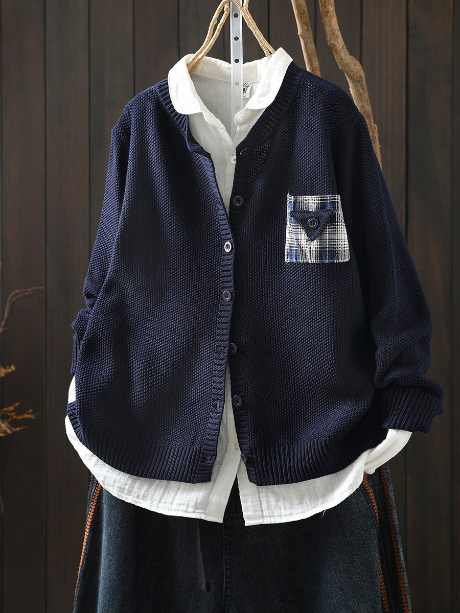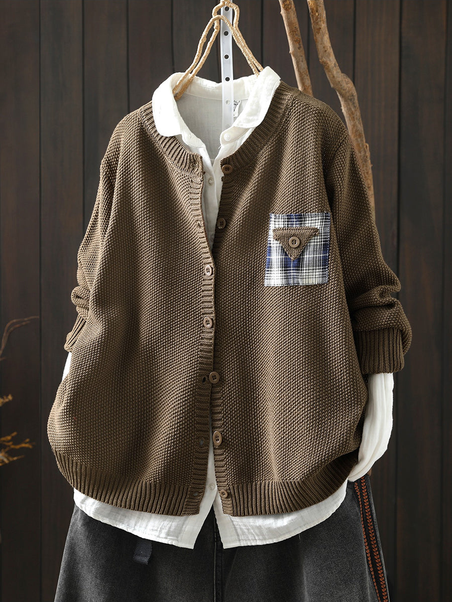 Damen-Cardigan mit Rundhalsausschnitt und Patchwork-Muster im Frühlingsstil
