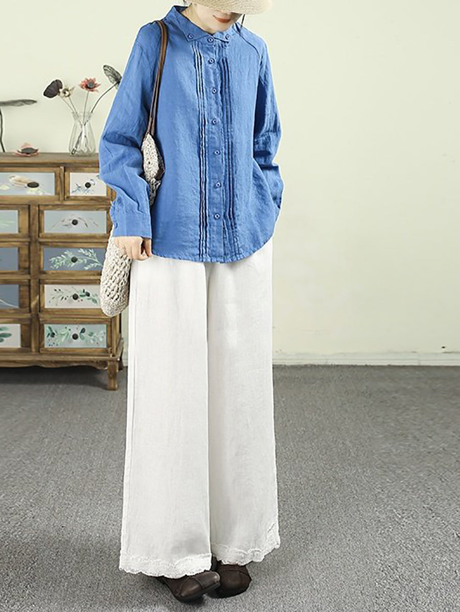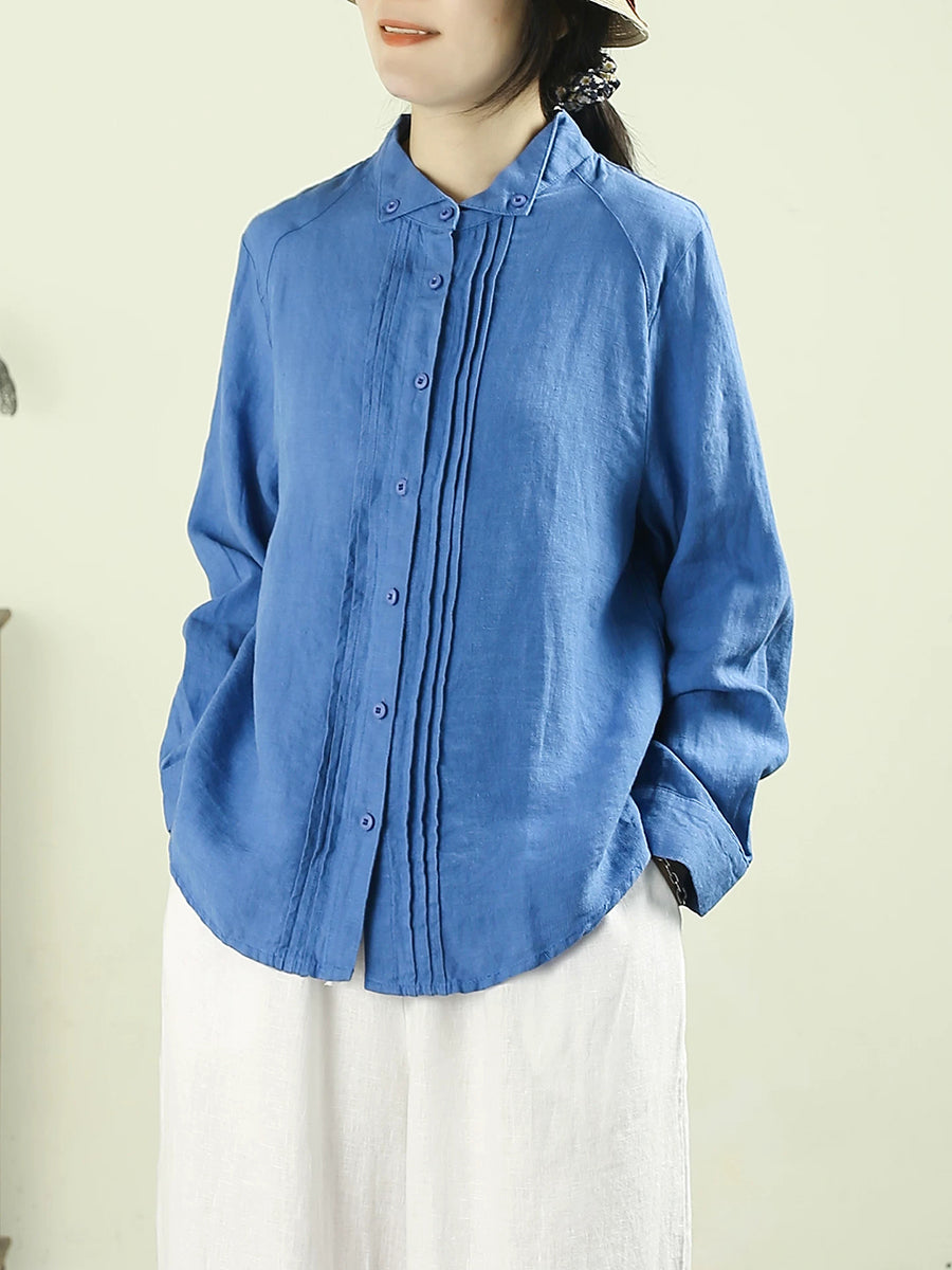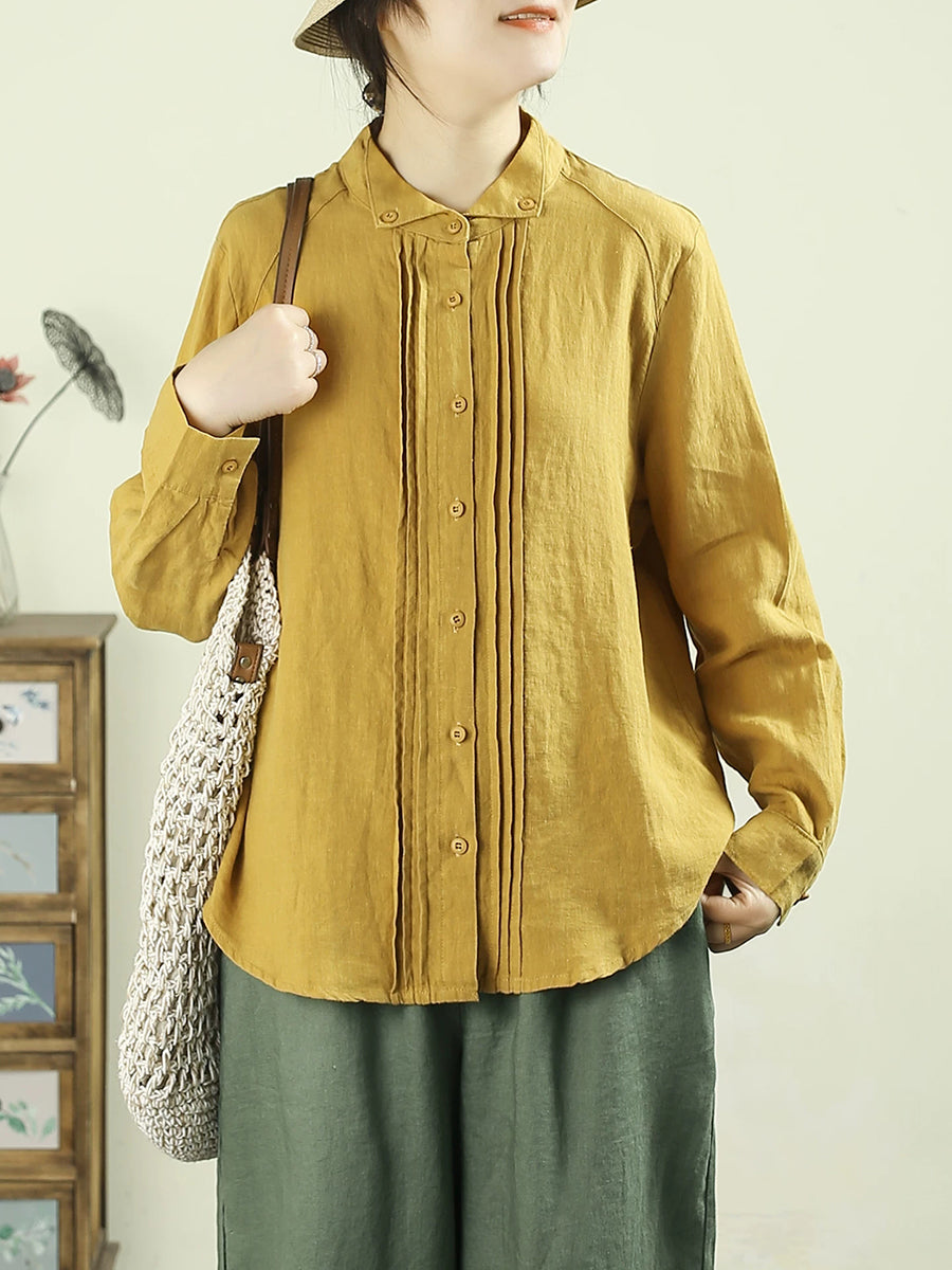 Damenbluse „Artsy Spring“ aus 100 % Leinen, gerafft, einfarbig.