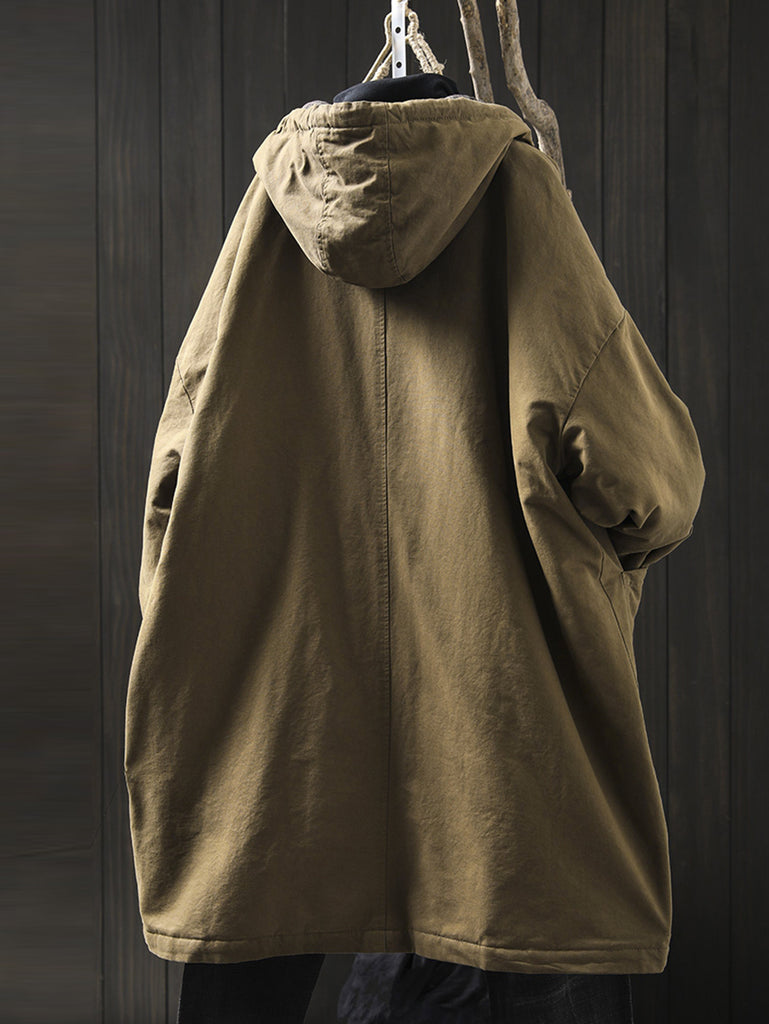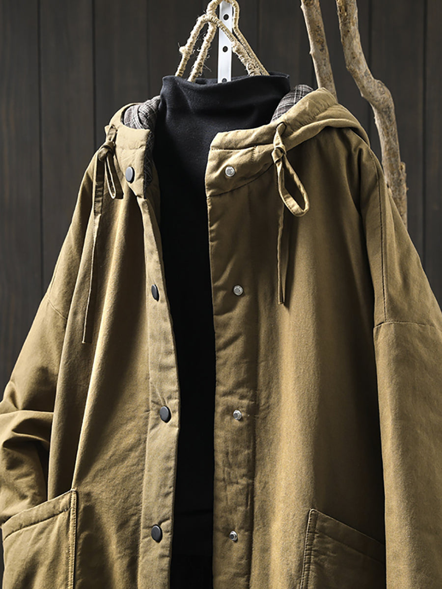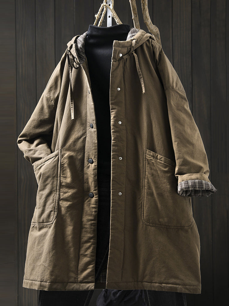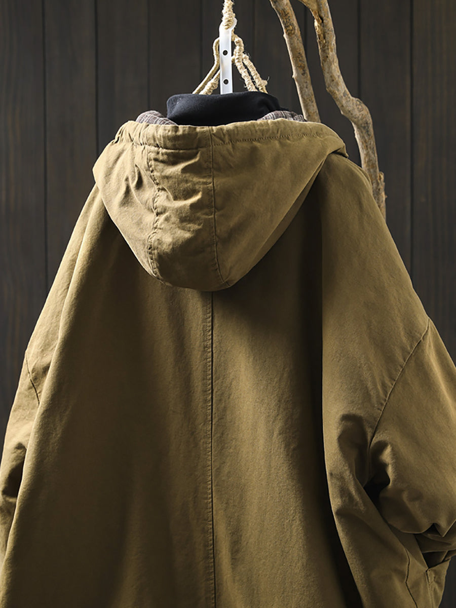 Damen Herbst Lässiger, reiner Farbiger Gepolsterter Mantel mit Kapuze