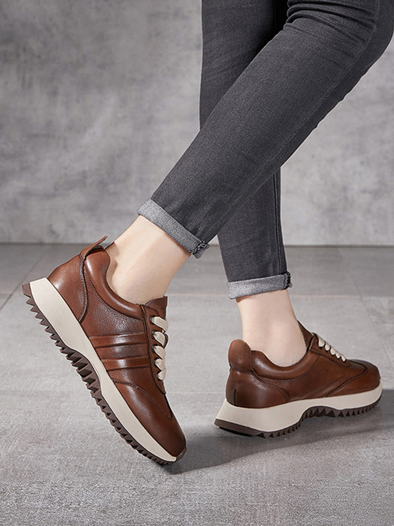 Damen Herbst Casual Pure Color Leder Sportschuhe