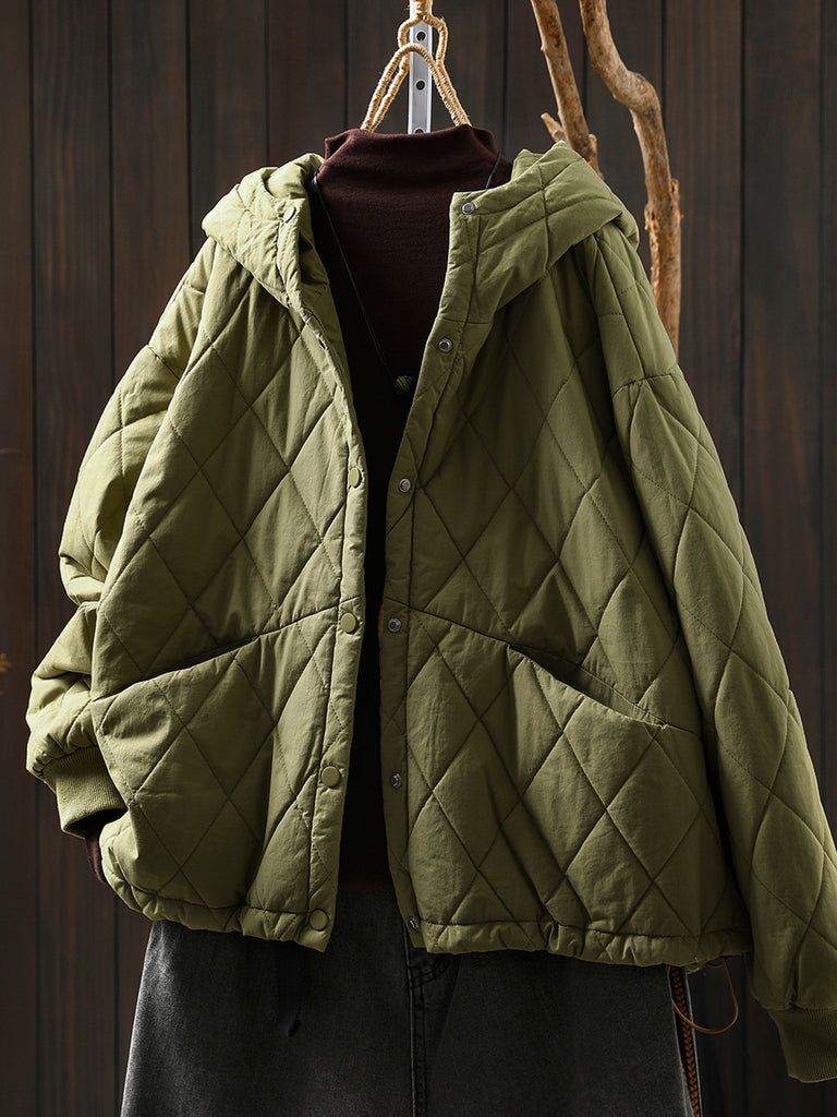 Damen Herbst Lässige Reine Farbe Gepolsterte Kapuzenjacke