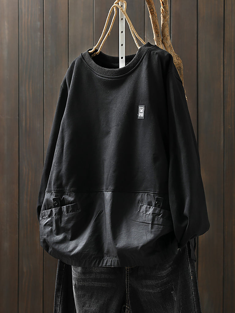 Damen Herbst Lässiges Sweatshirt aus reiner Farbe mit gespleißtem 100% Baumwolle
