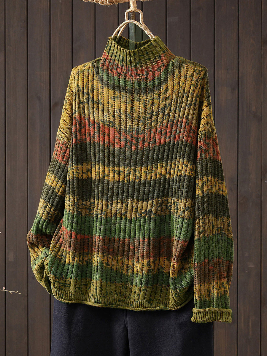 Dieser Pullover mit Streifenmuster hat einen halben Rollkragen und lange Raglanärmel im Vintage-Design. Ideal für Frühling und Herbst, kombiniert er klassischen Stil mit saisonalem Komfort.