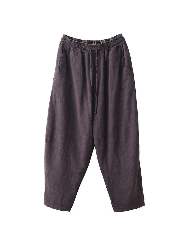 Damen Herbst beidseitig tragbar 100% Leinen Haremshose