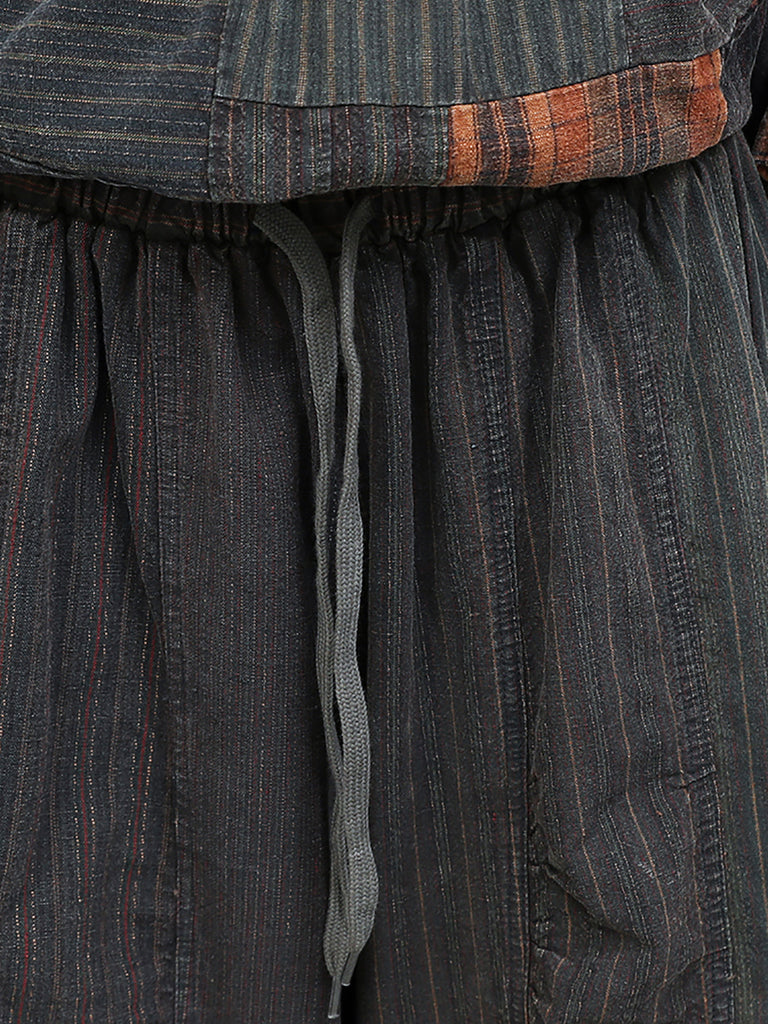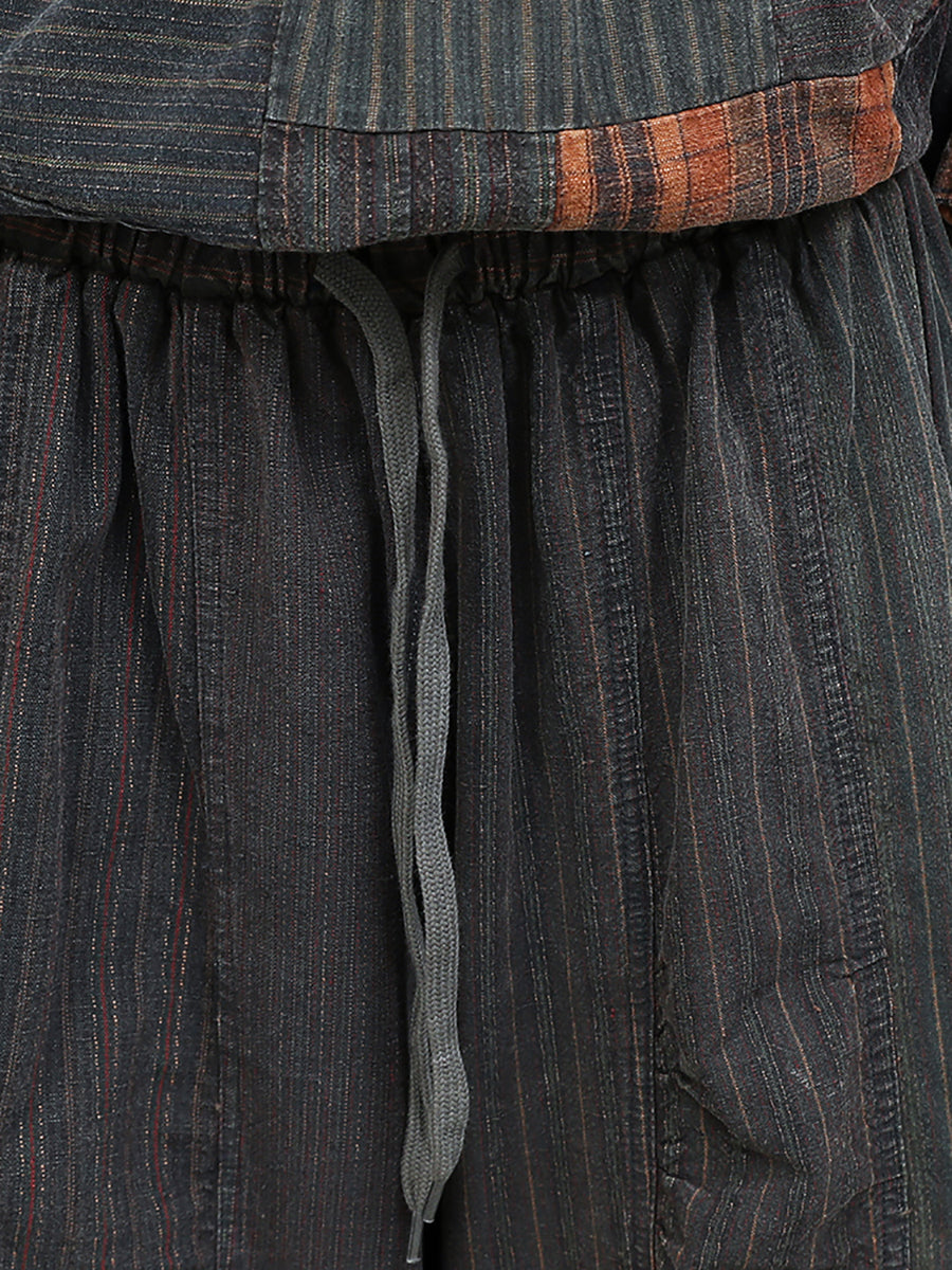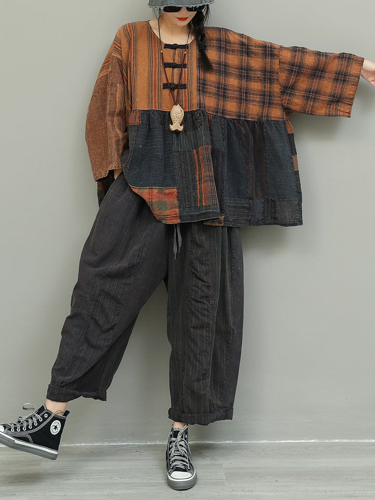 Frauen Herbst Retro Patchwork O-Ausschnitt Lose Baumwollanzüge