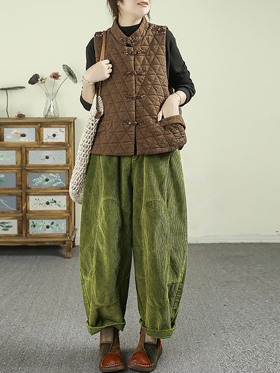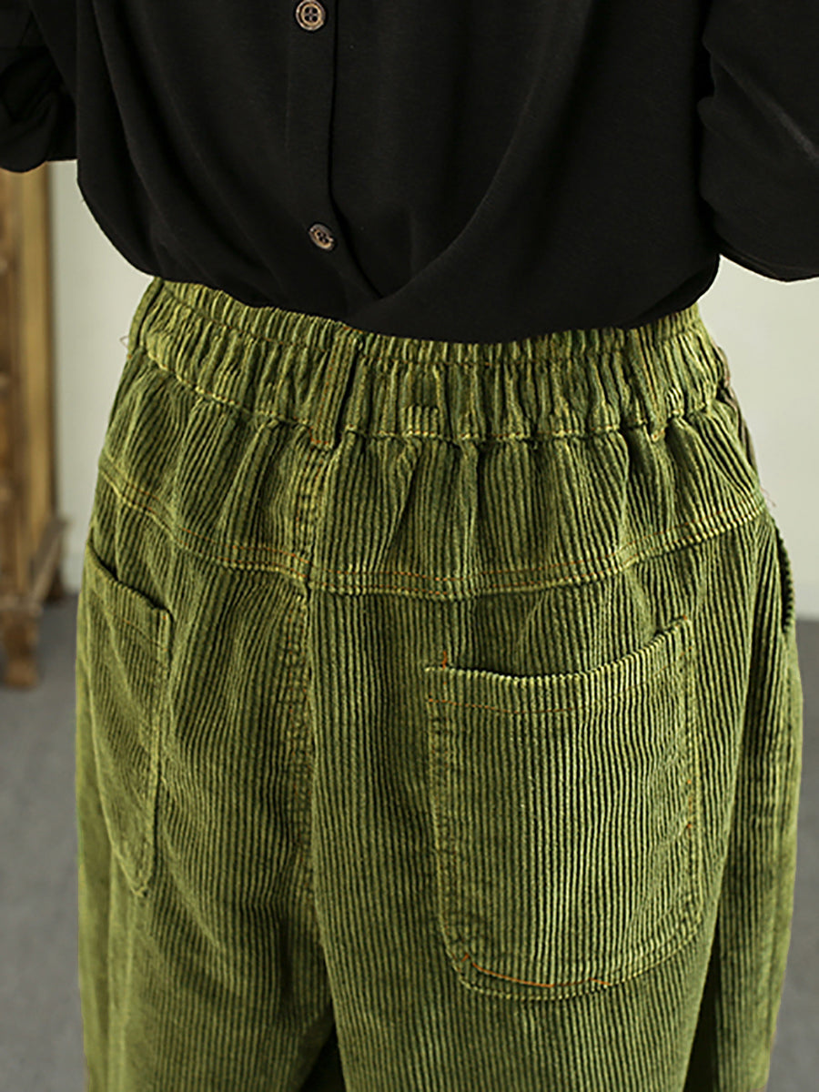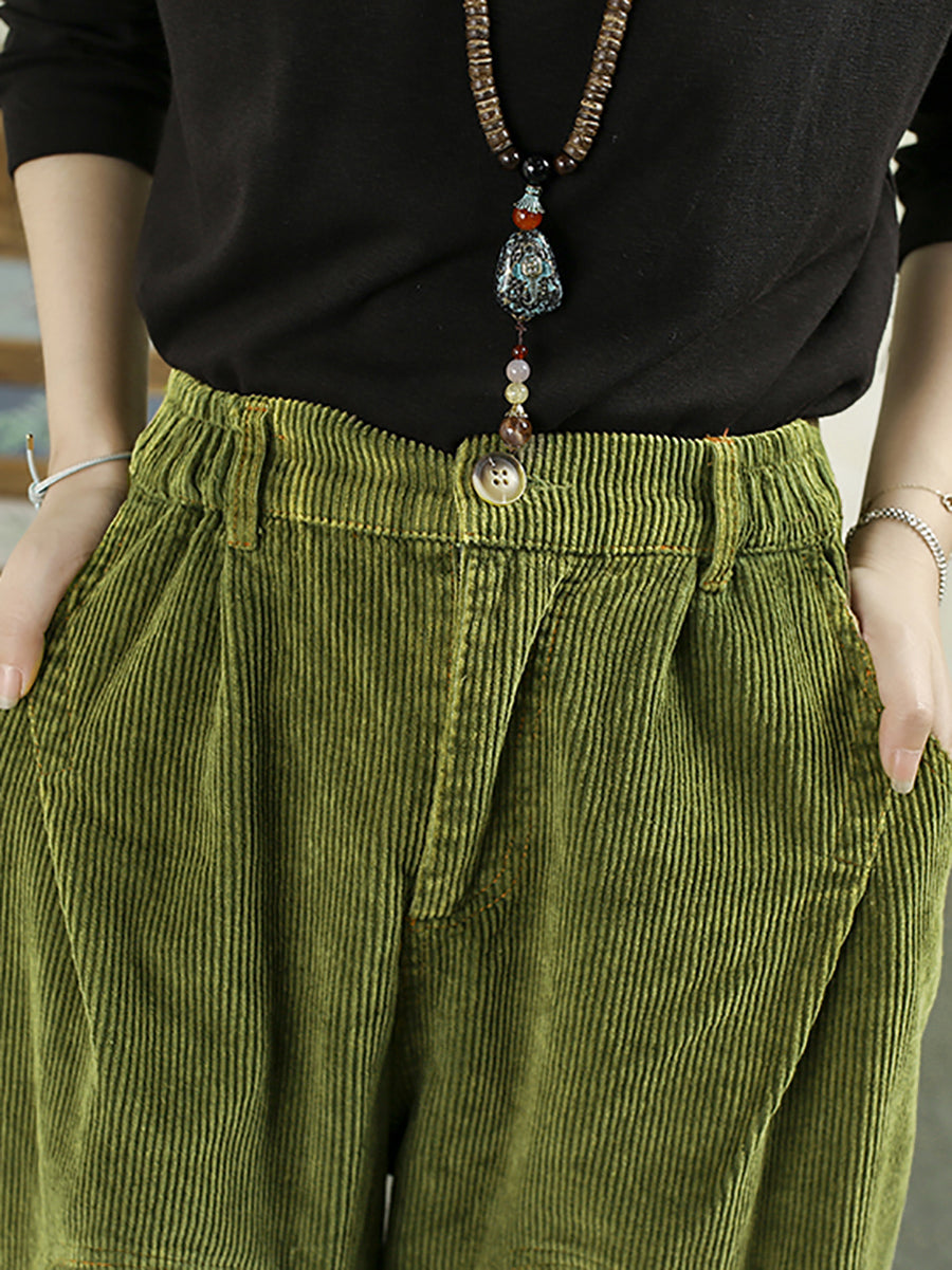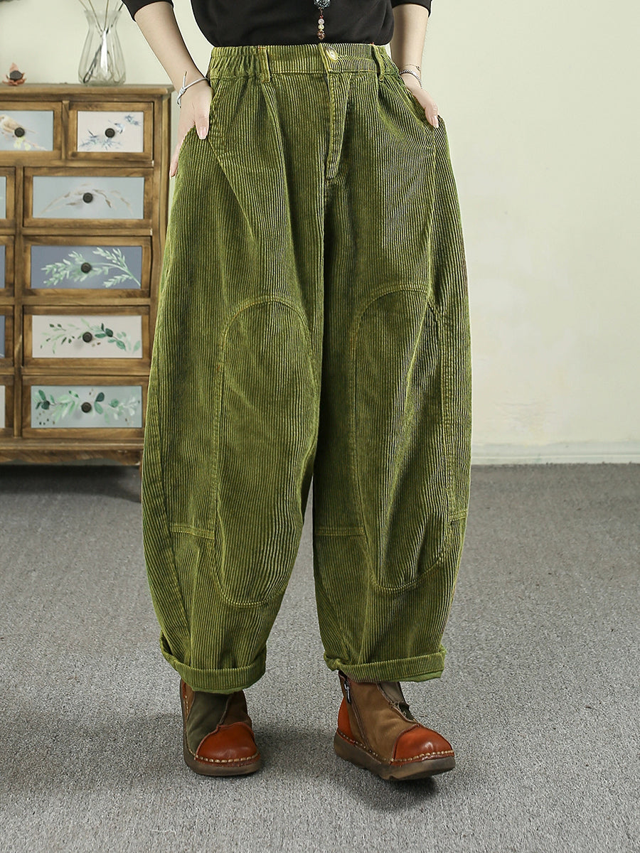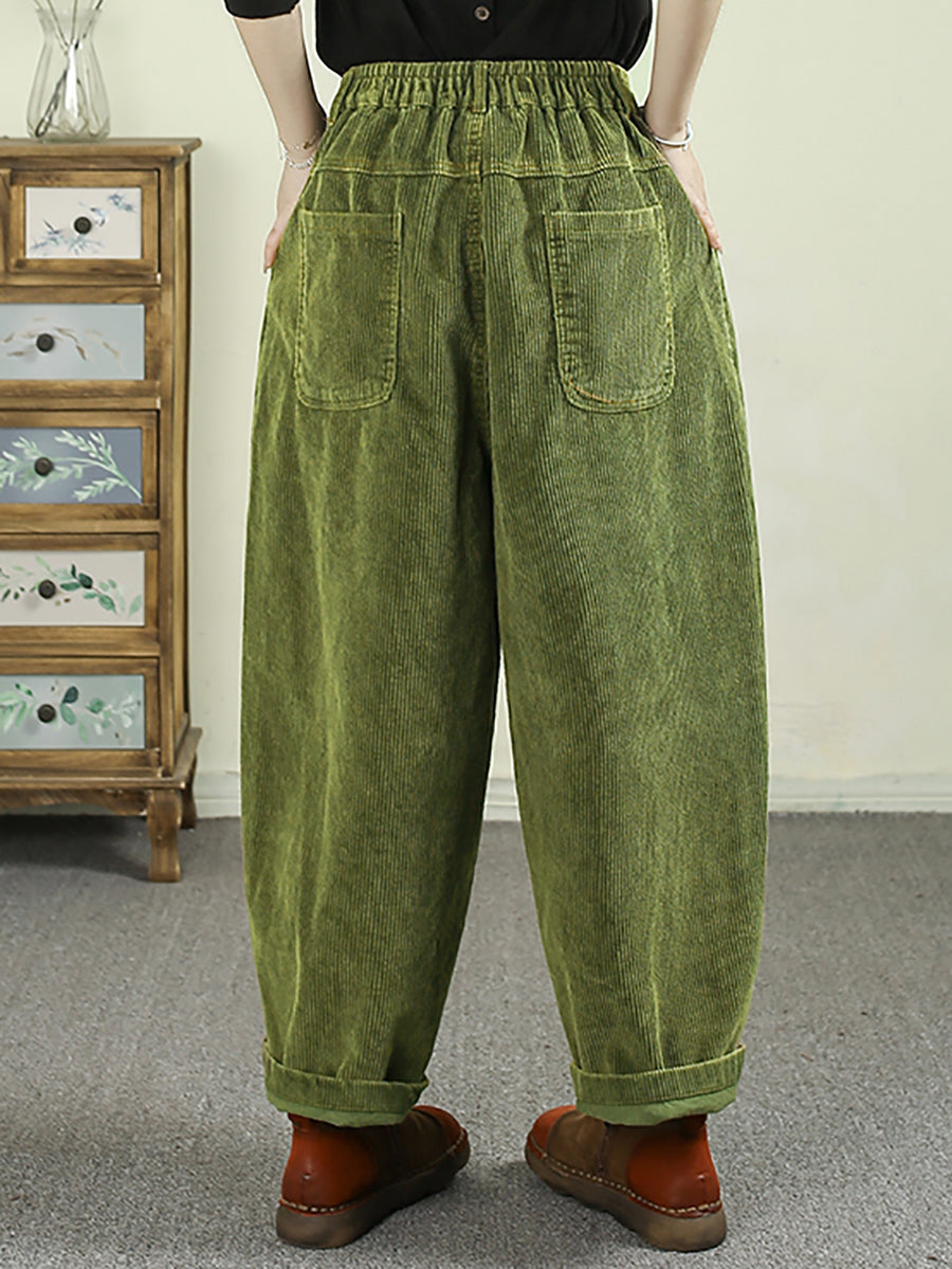 Damen Herbst Retro Pure Color Cord Haremshose