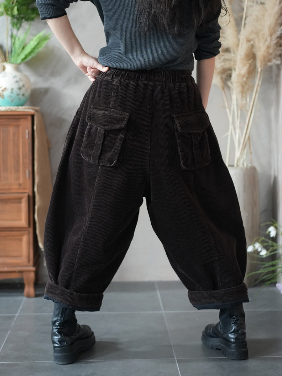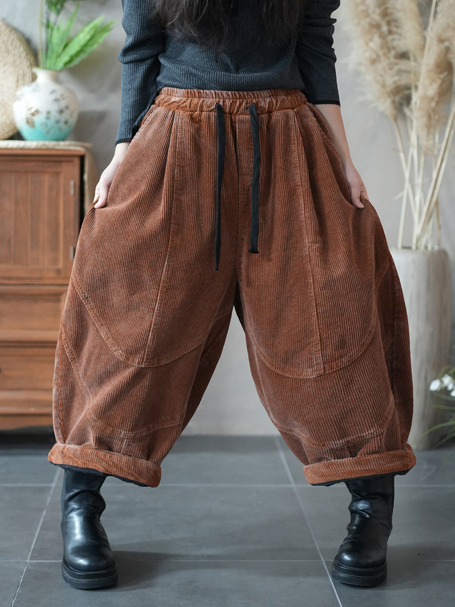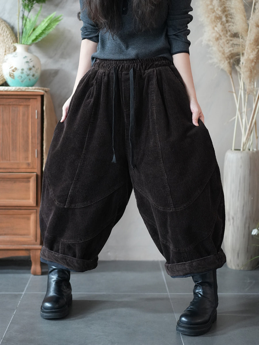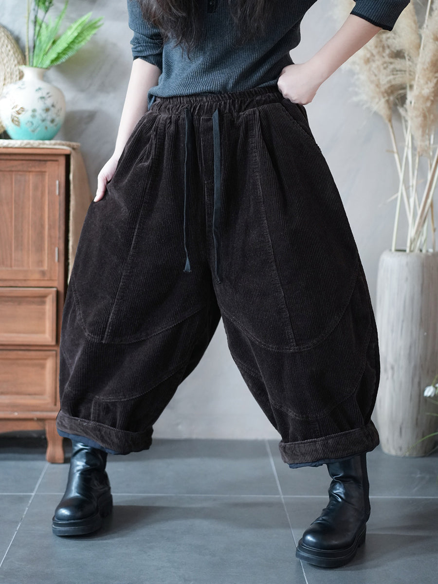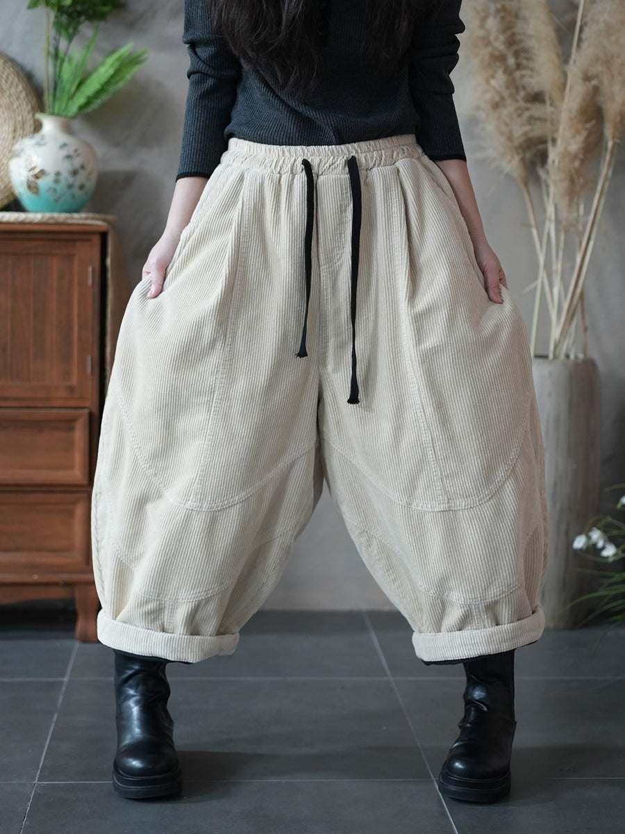 Damen Herbst Retro Cord Haremshose in Unifarben