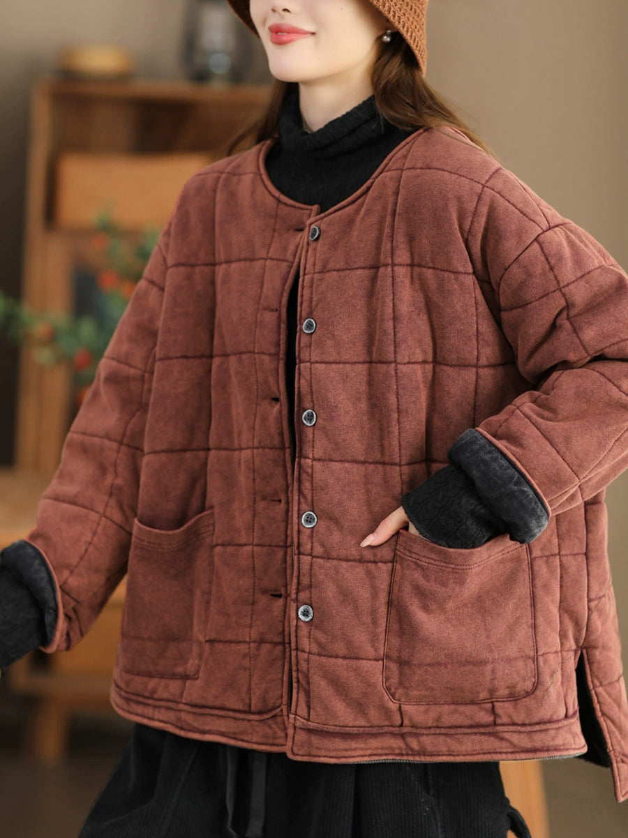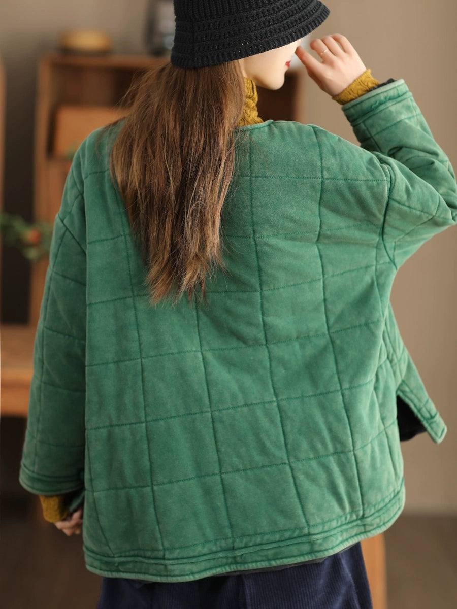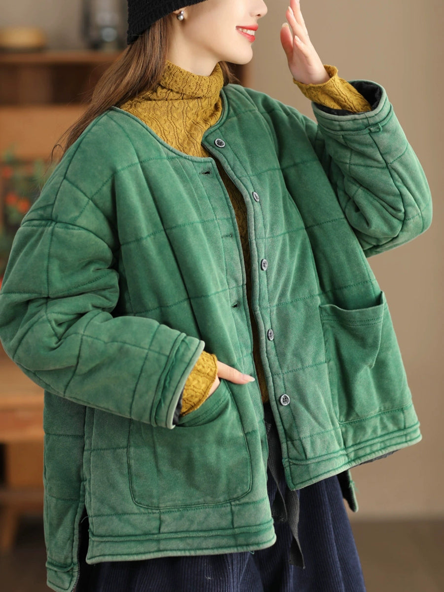 Damen Herbst Retro Pure Color O-Ausschnitt Gepolsterte Jacke