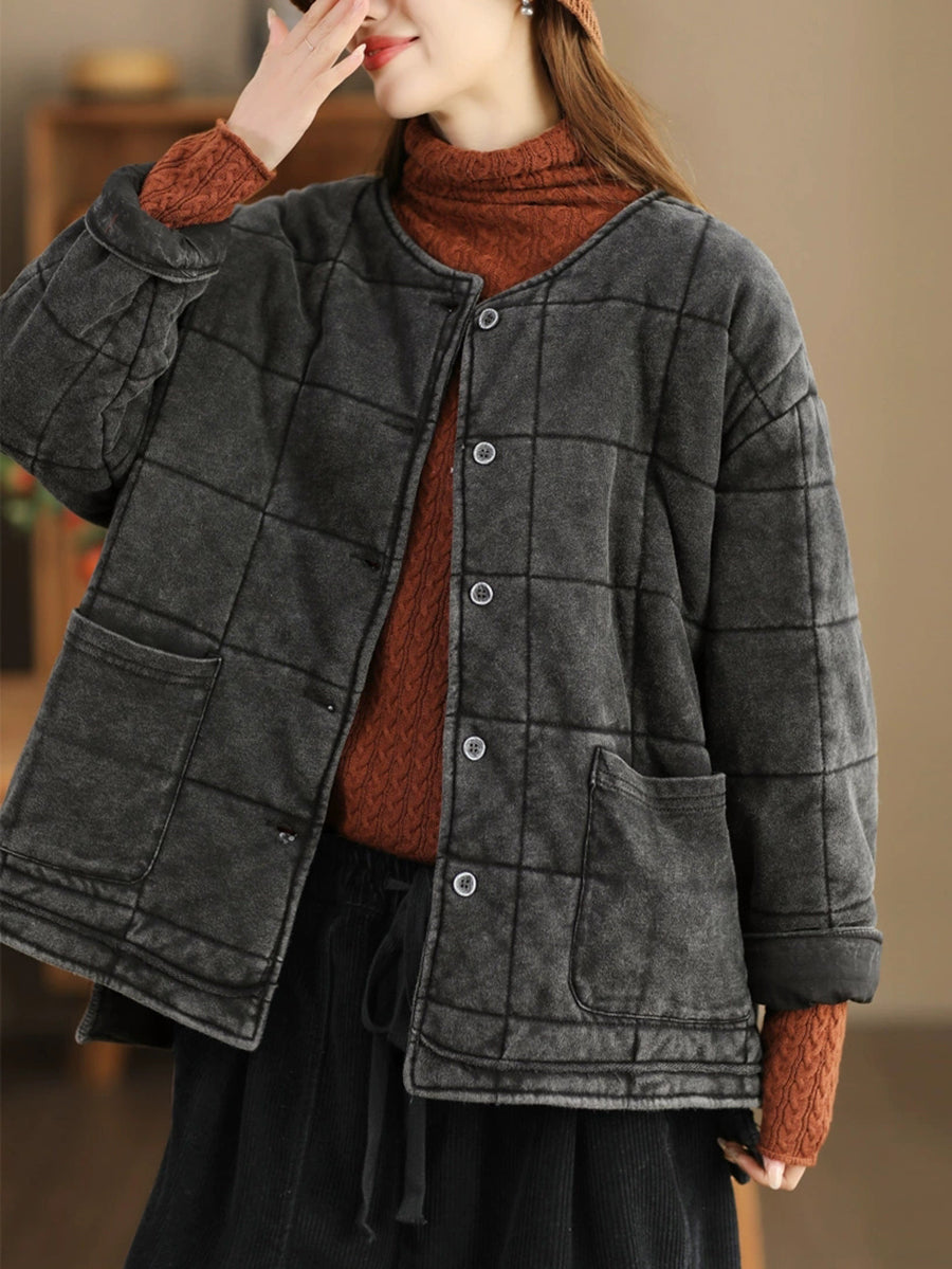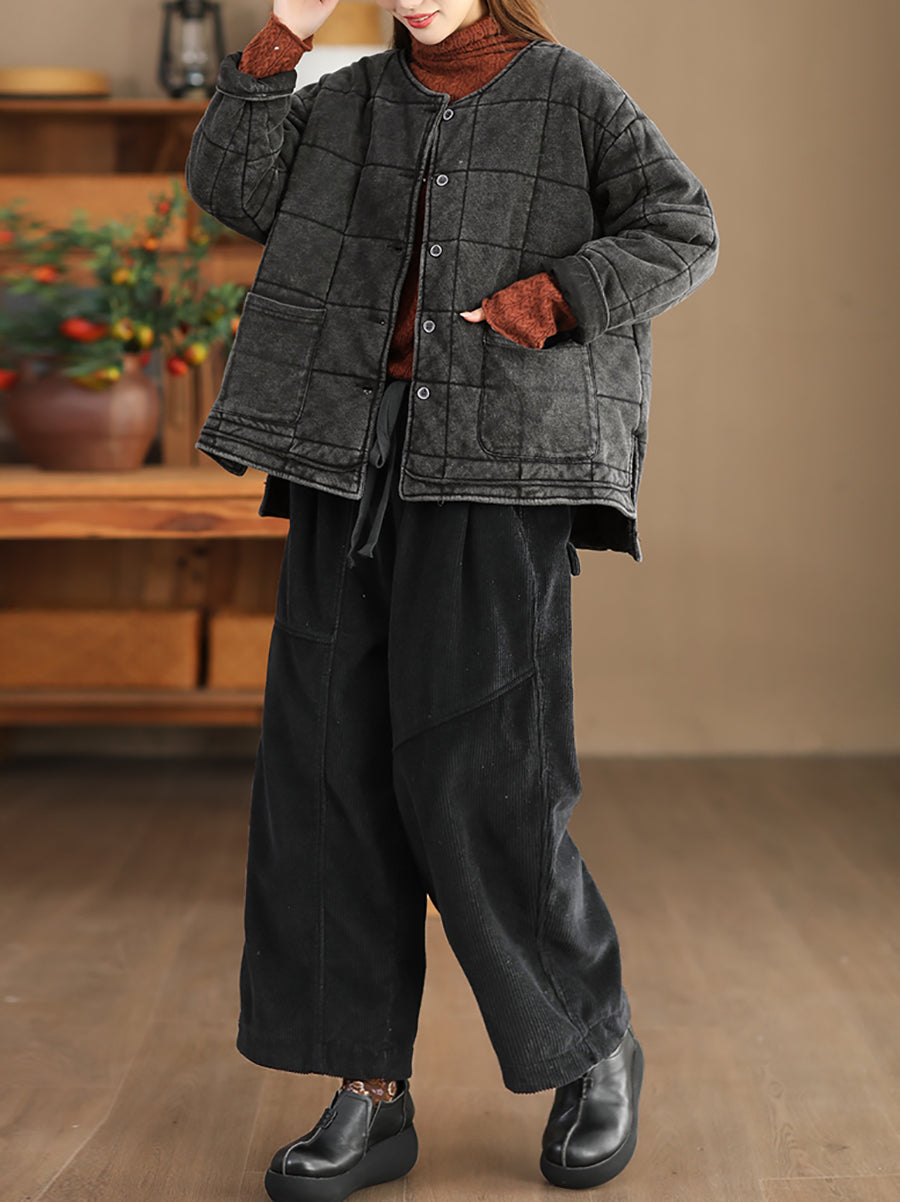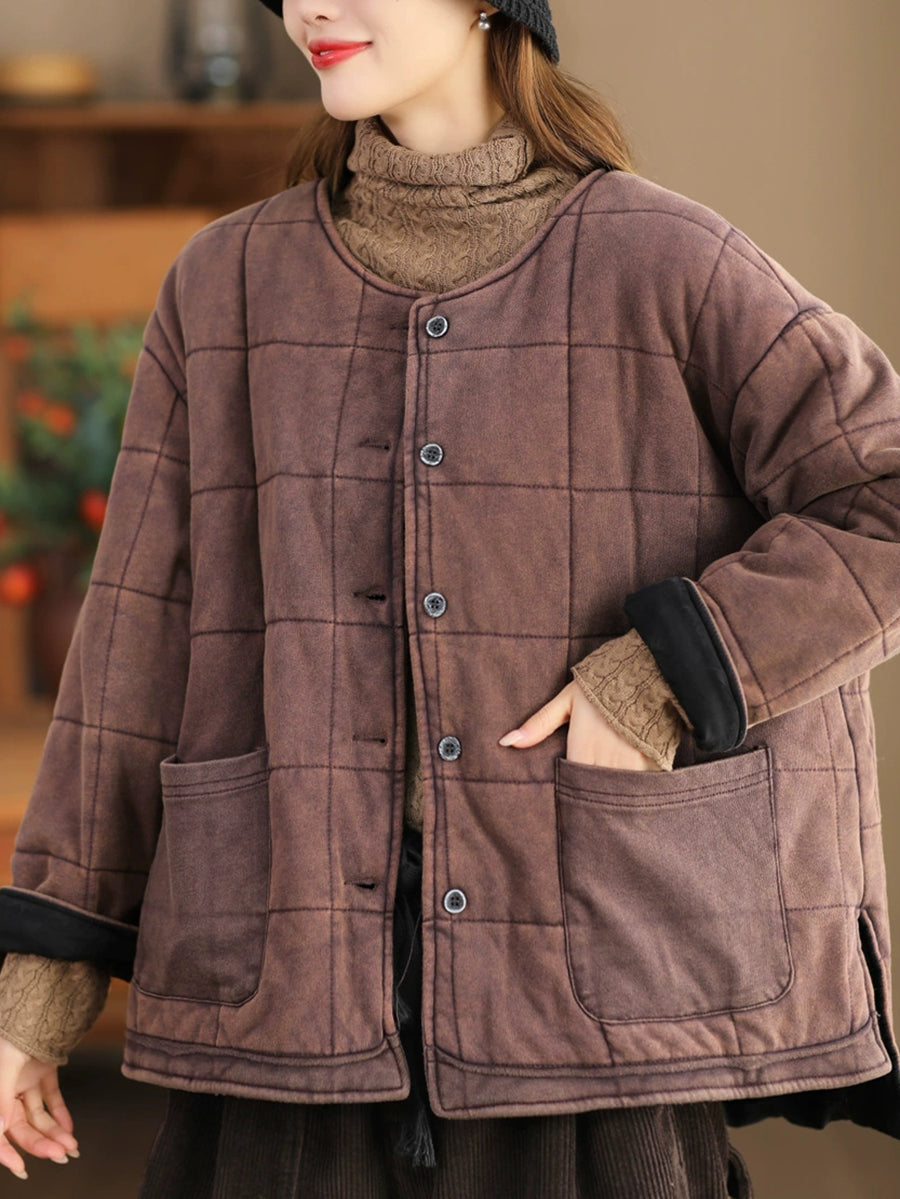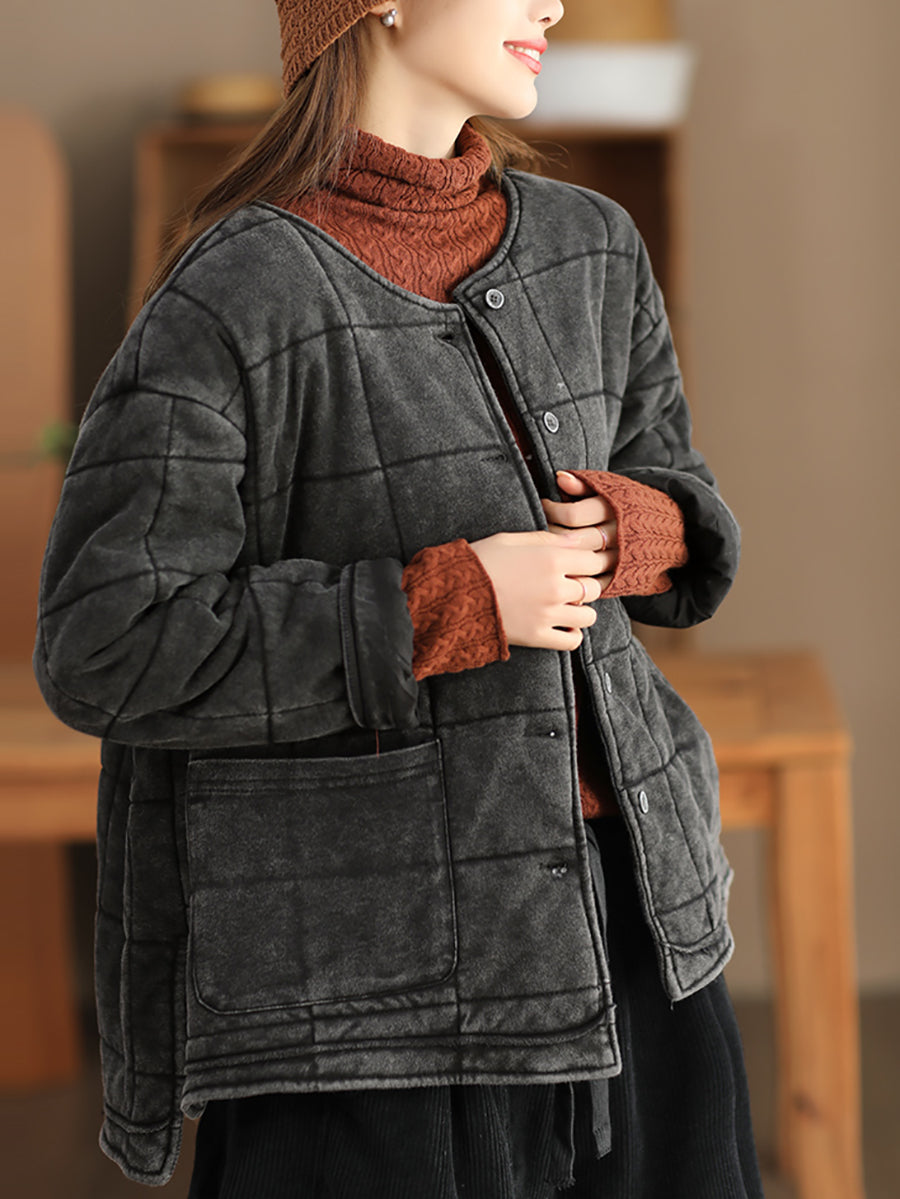 Damen Herbst Retro Pure Color O-Ausschnitt Gepolsterte Jacke