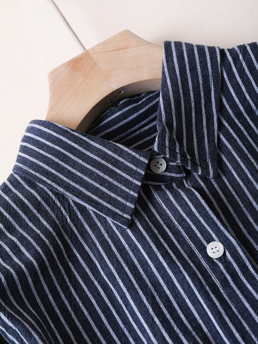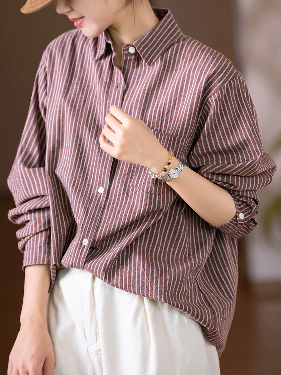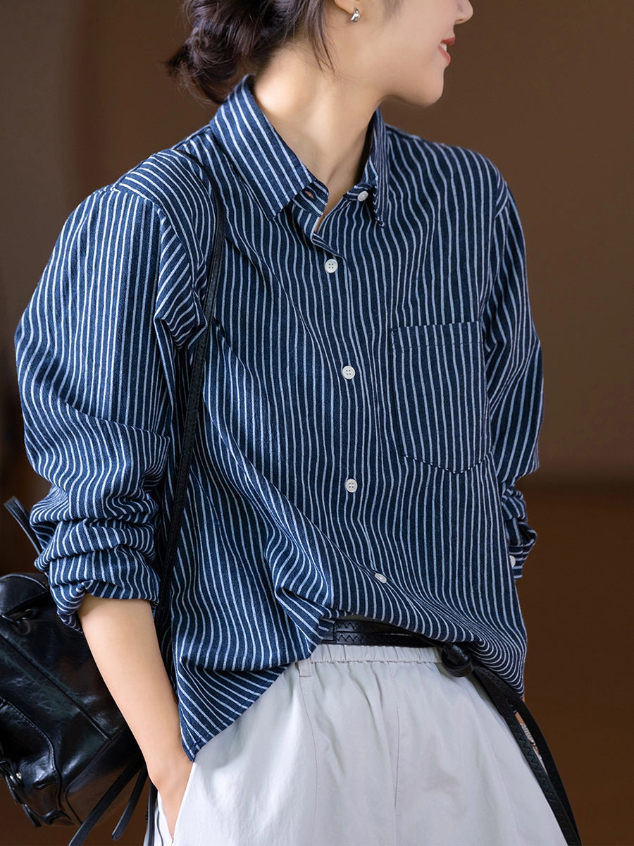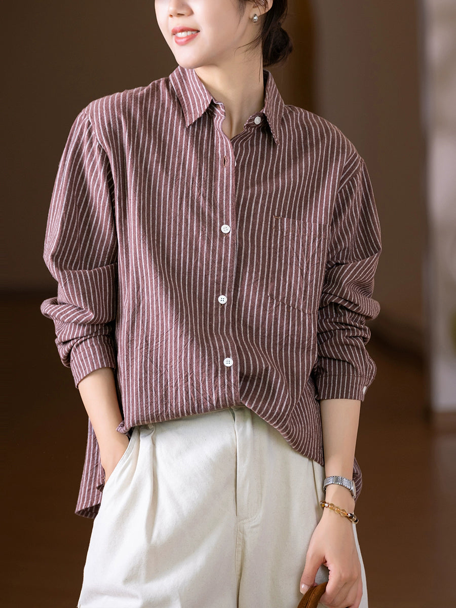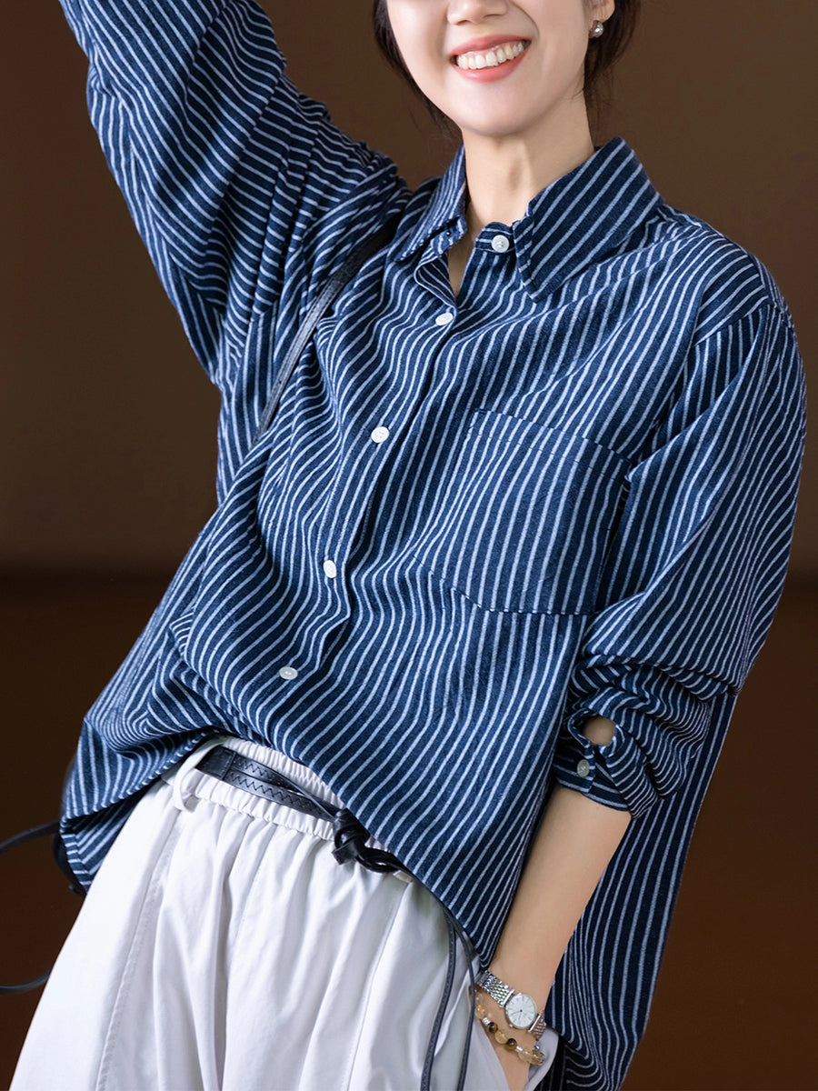 Damen Herbst-Streifen-Umlegekragen 100% Baumwolle Hemd