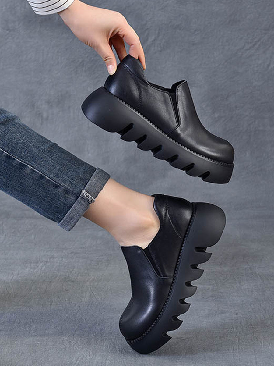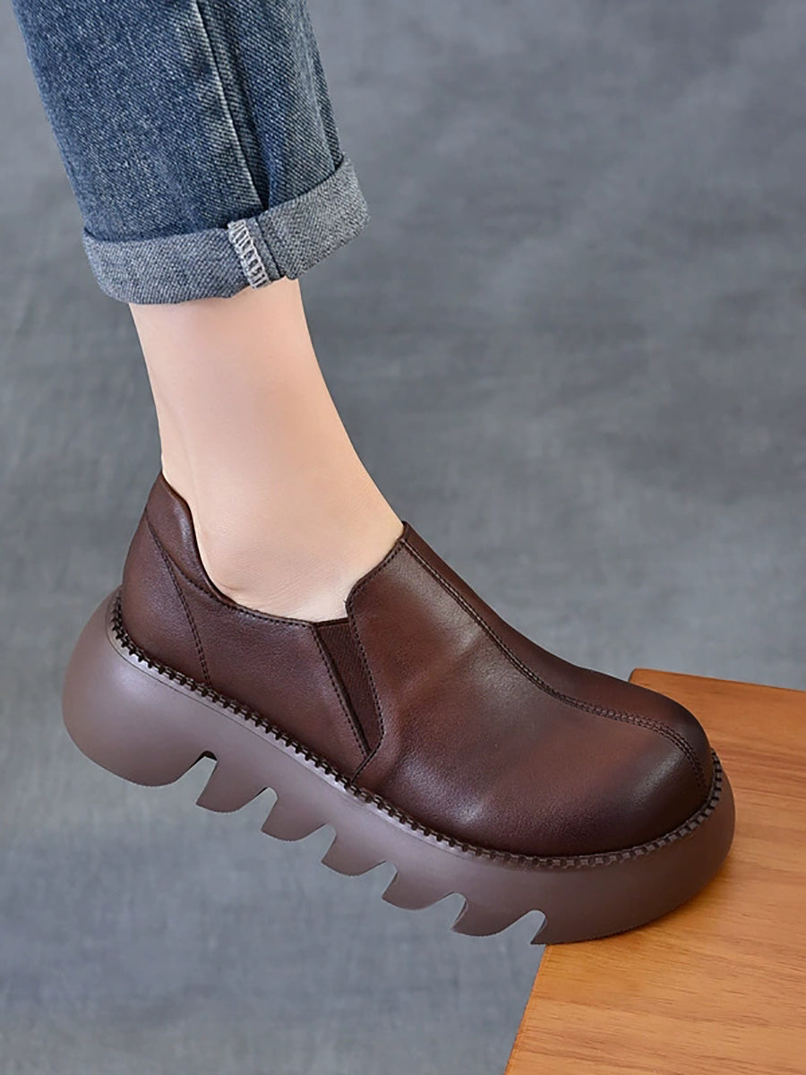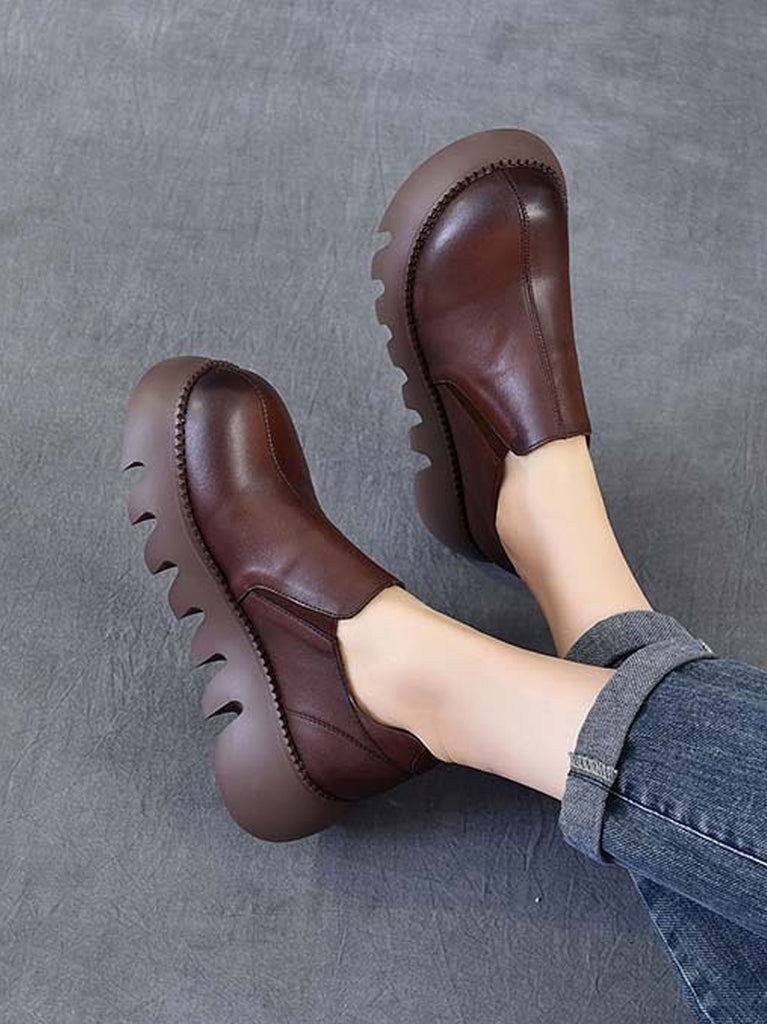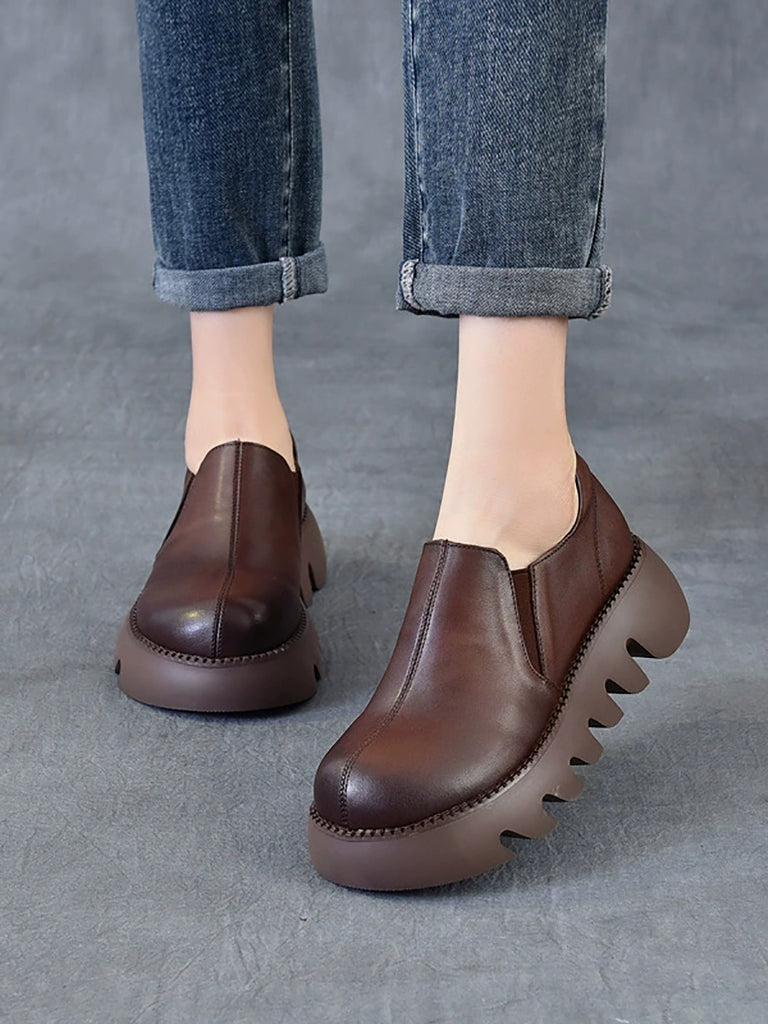 Damen Herbst Vintage Echtleder Plateauschuhe