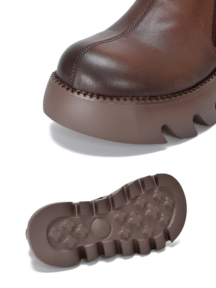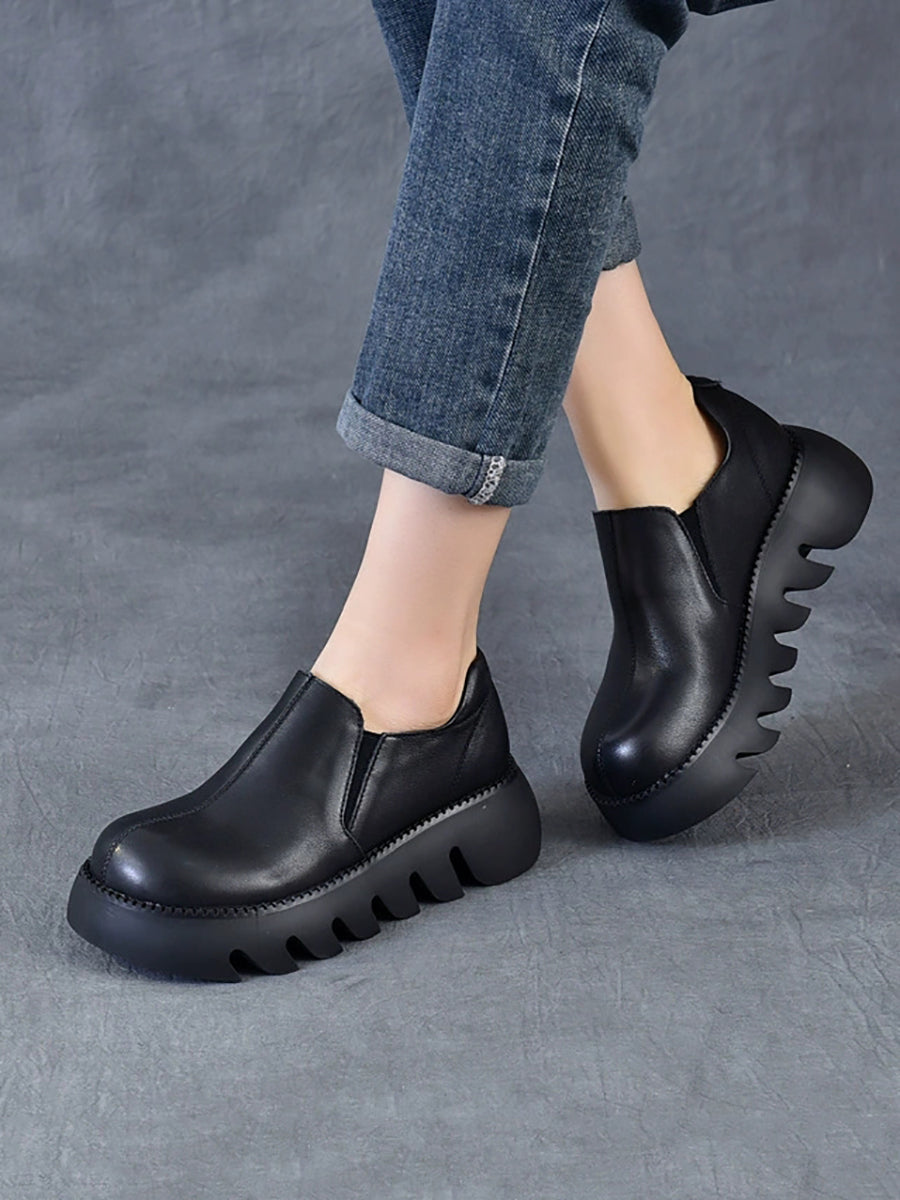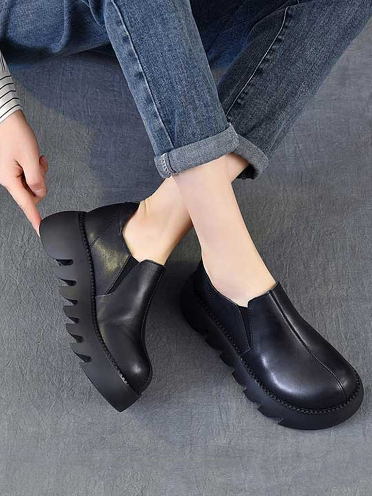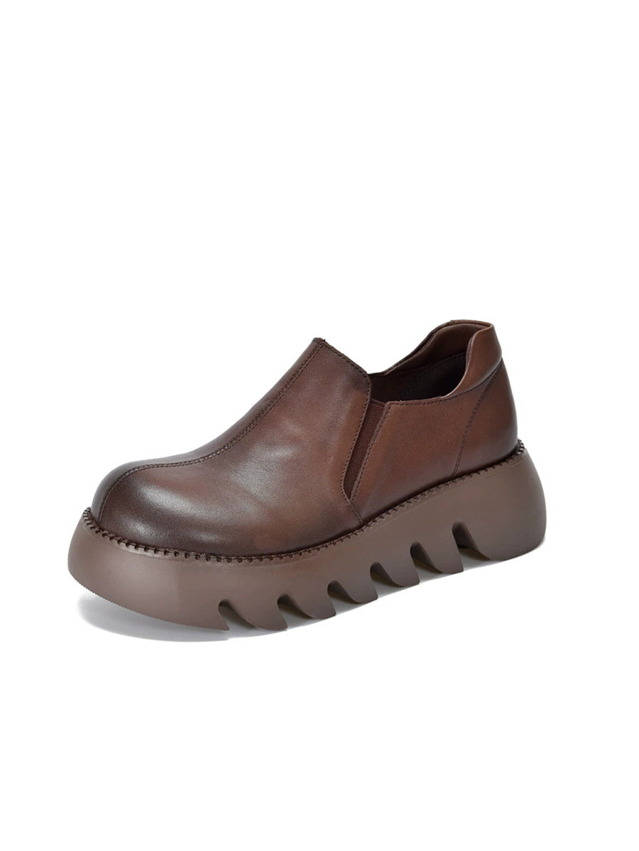 Damen Herbst Vintage Echtleder Plateauschuhe