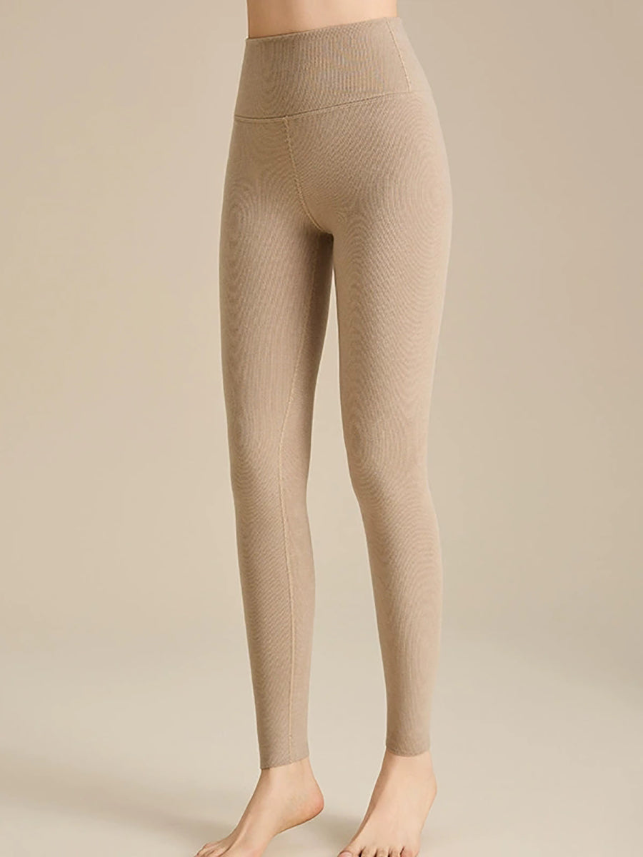Damen Herbst Warm Reine Farbe Hohe Taille Leggings