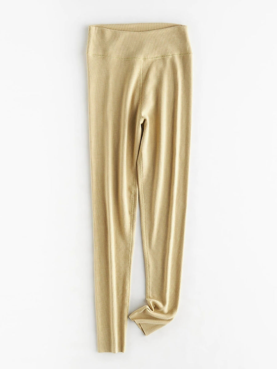 Damen Herbst Warm Reine Farbe Hohe Taille Leggings