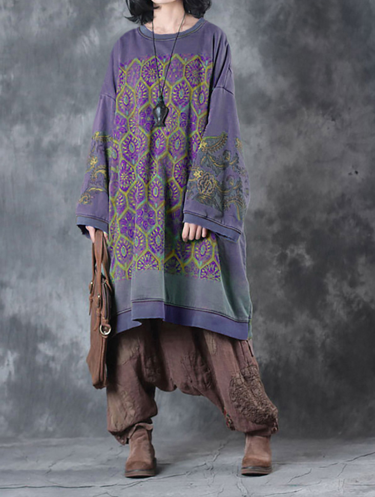 Dieses Kleid ist aus Baumwolle und hat ein Blumenmuster. Es hat einen O-Ausschnitt, lange Raglanärmel und einen Vintage-Stil, der sowohl für den Herbst als auch für den Frühling perfekt ist.