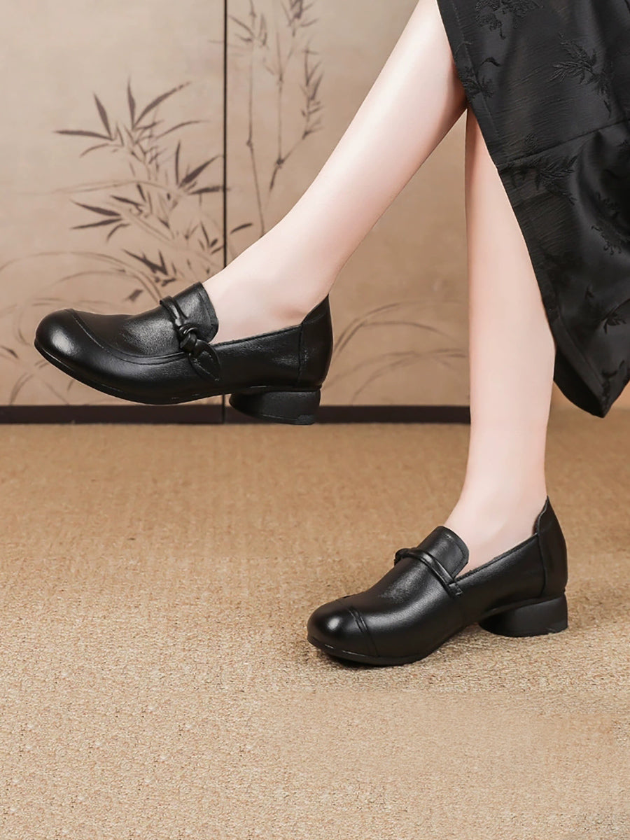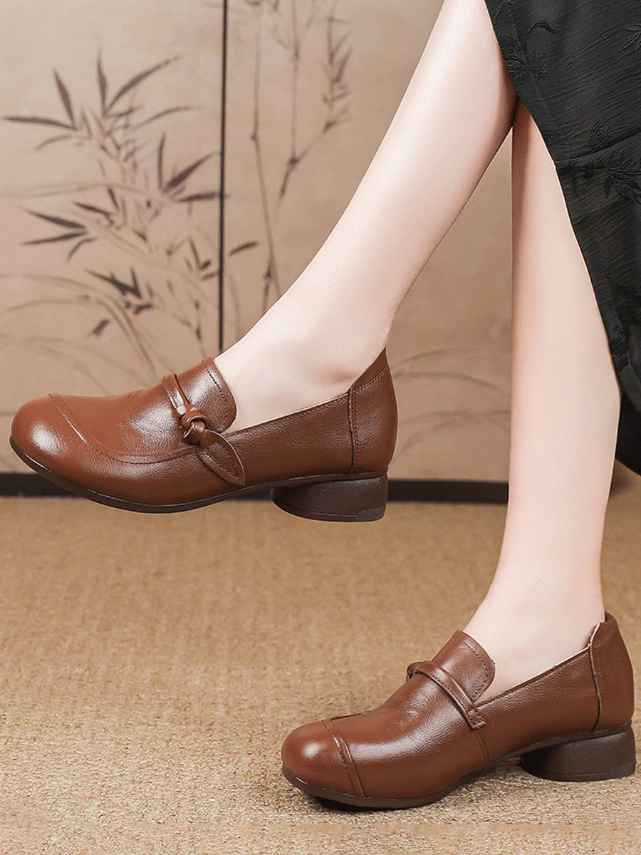 Damen-Freizeitschuhe aus echtem Leder mit niedrigem Absatz