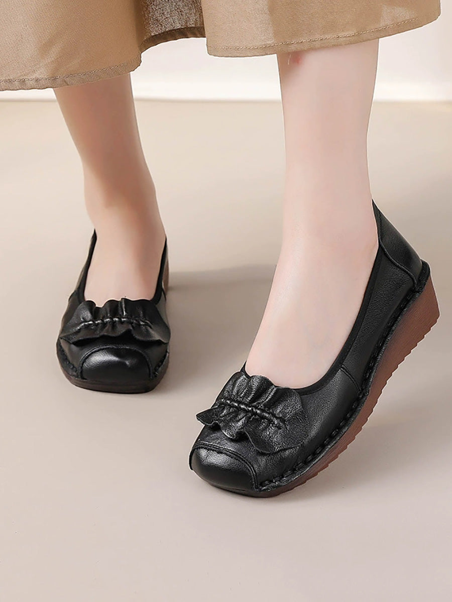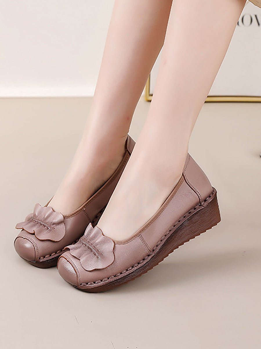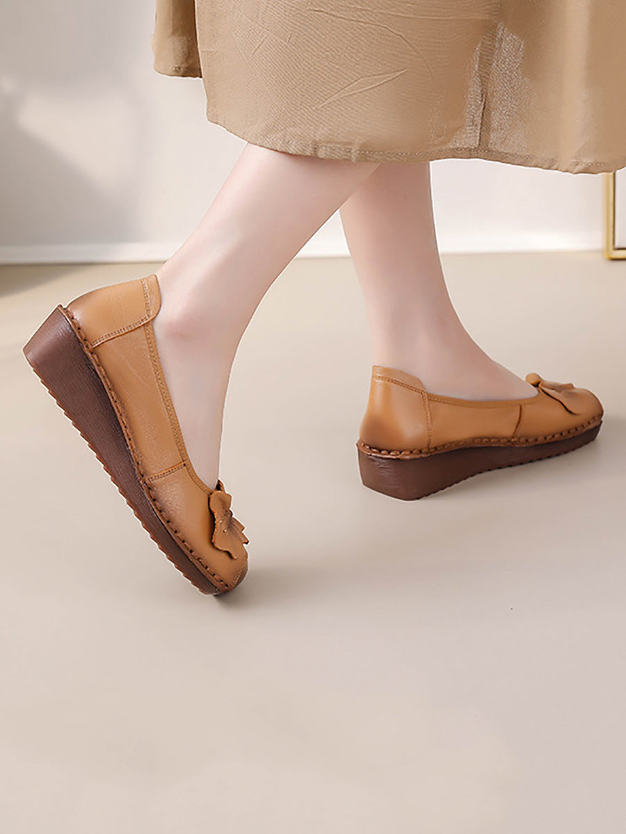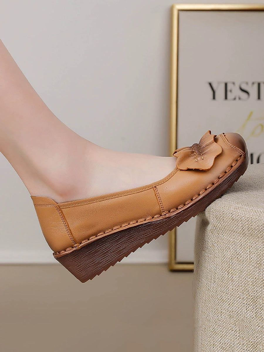 Damen-Freizeitschuhe aus echtem Leder mit Plateau-Einsätzen