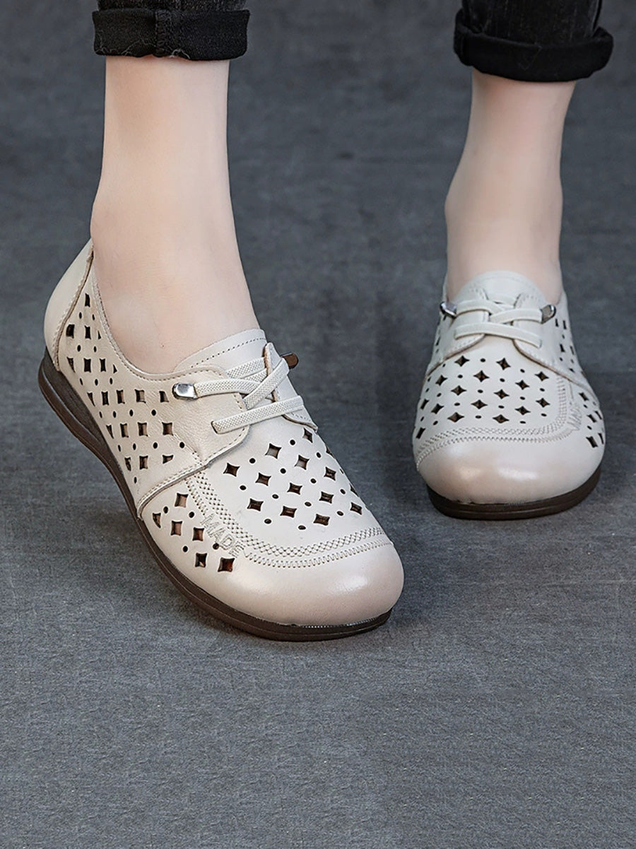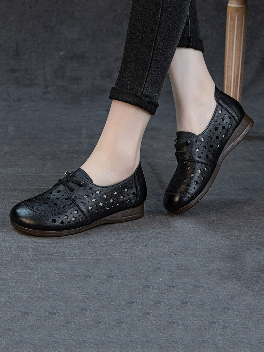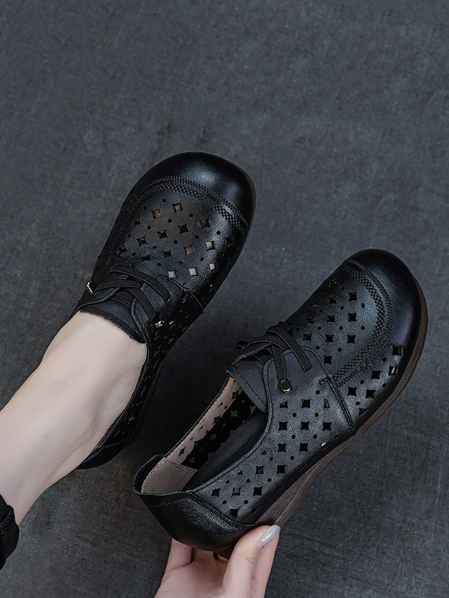 Lässige Damen-Ledersandalen mit Lochmuster