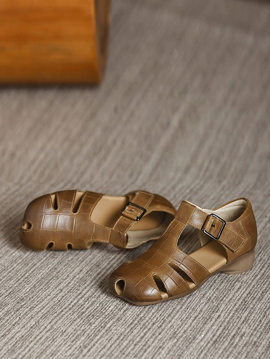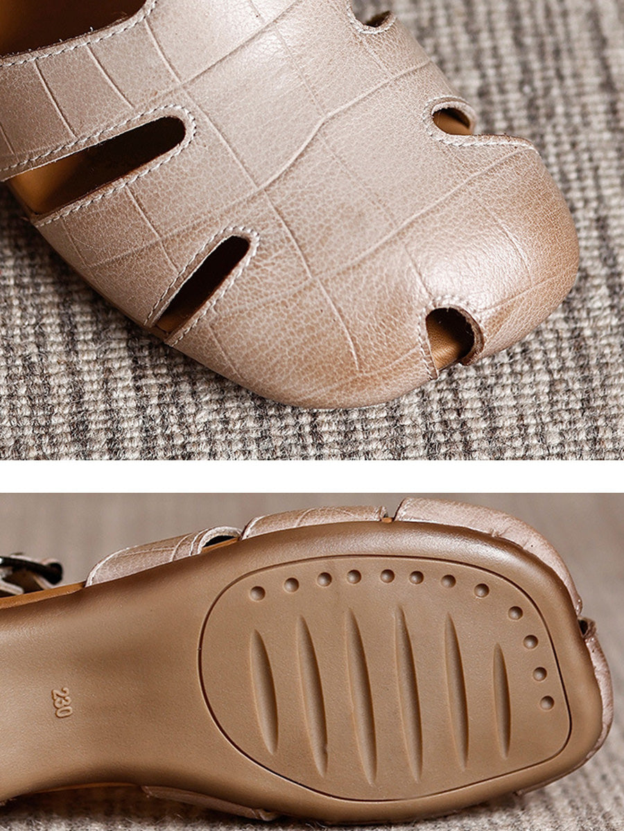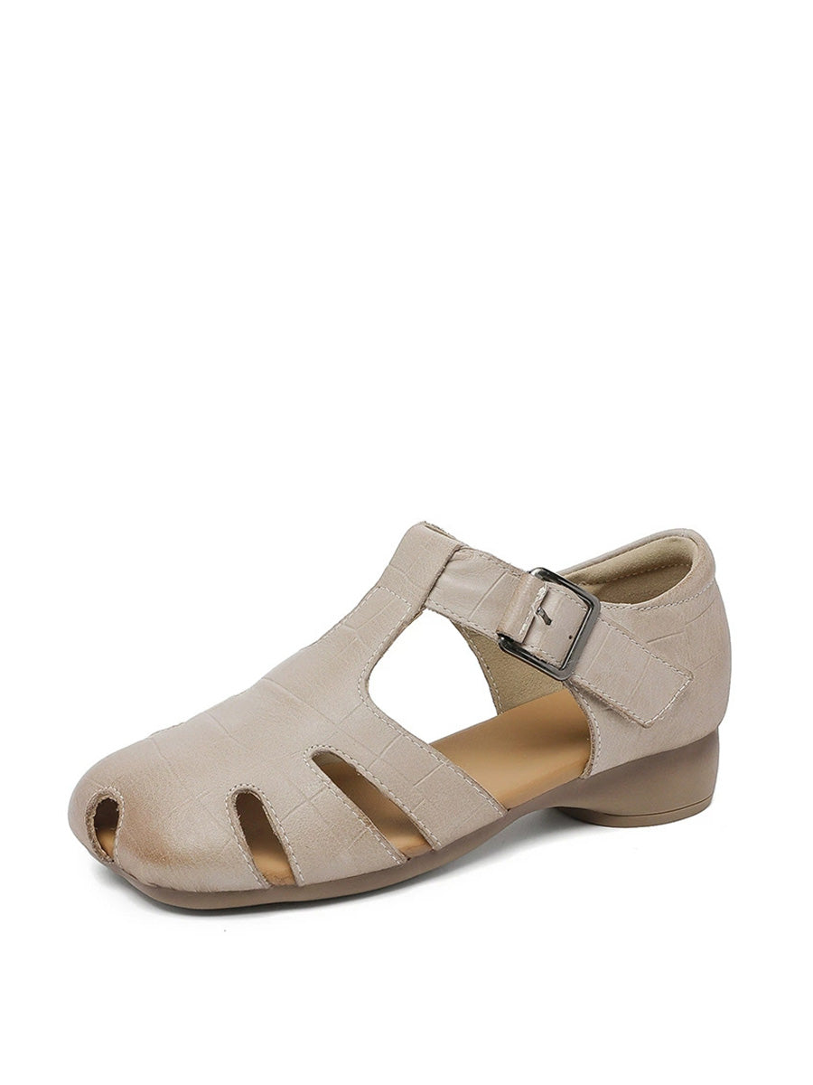 Damen-Sandalen aus echtem Leder, lässig und einfarbig