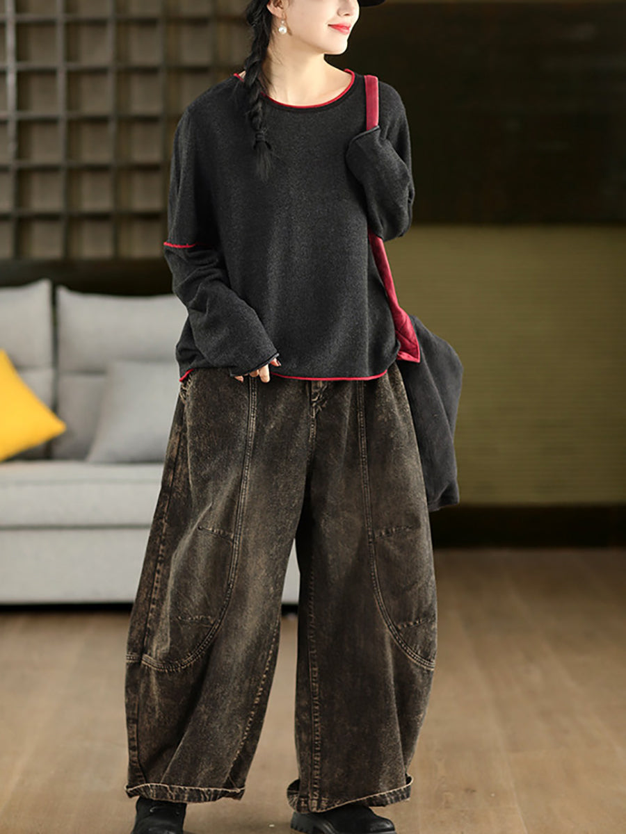 Lässiger Damen-Frühlingspullover mit Rundhalsausschnitt