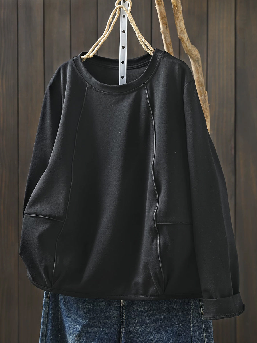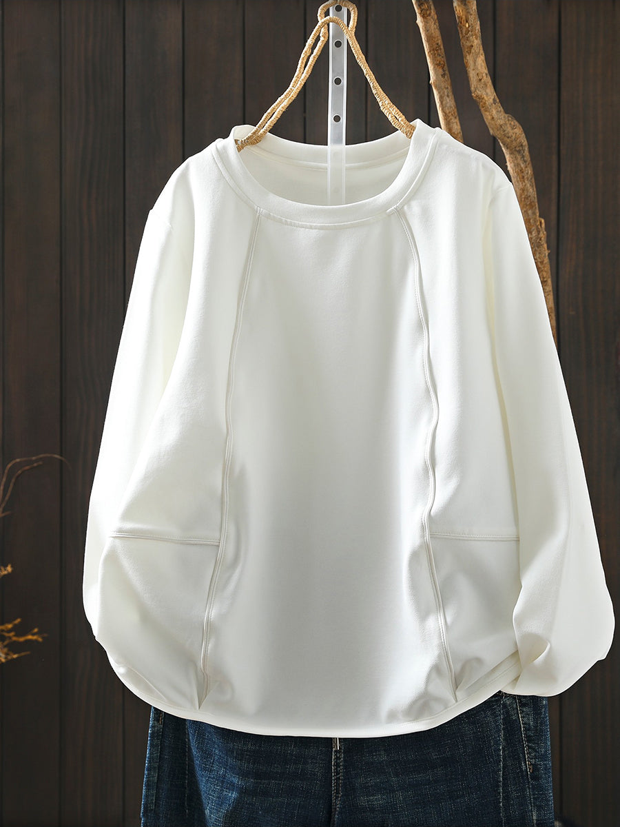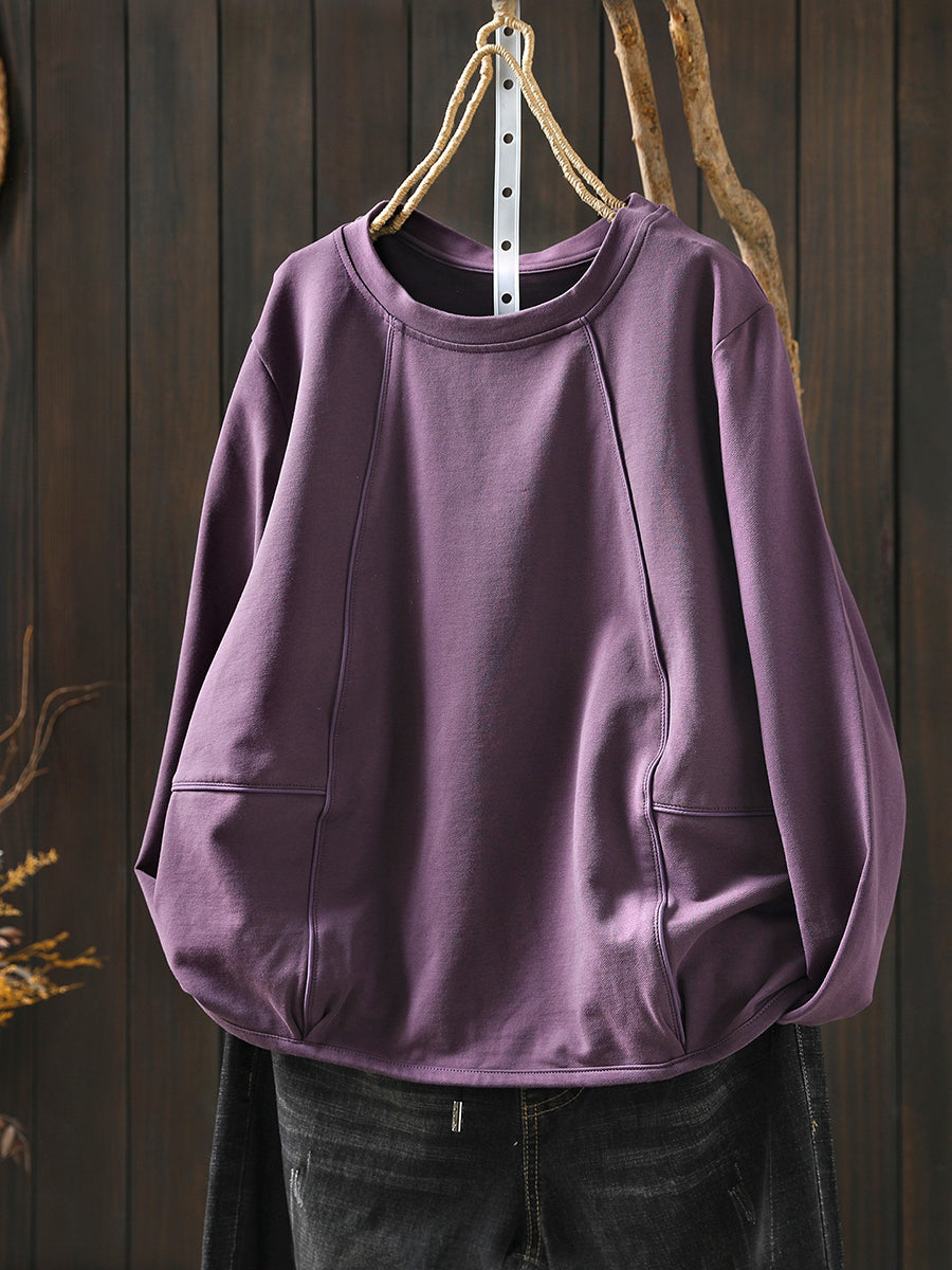 Lässige Damenbluse mit Rundhalsausschnitt in Unifarbe für den Frühling