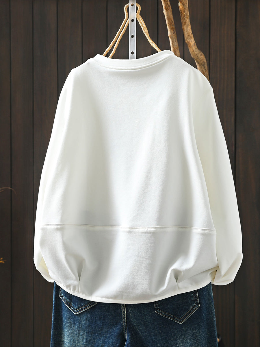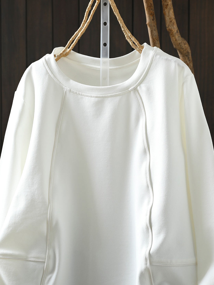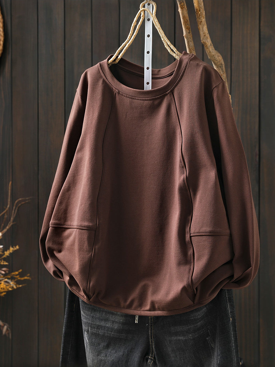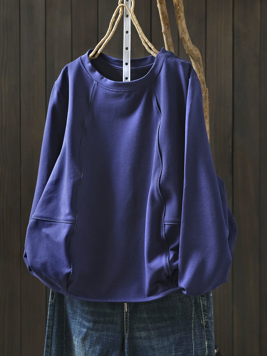Lässige Damenbluse mit Rundhalsausschnitt in Unifarbe für den Frühling