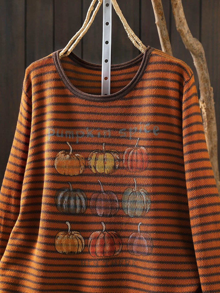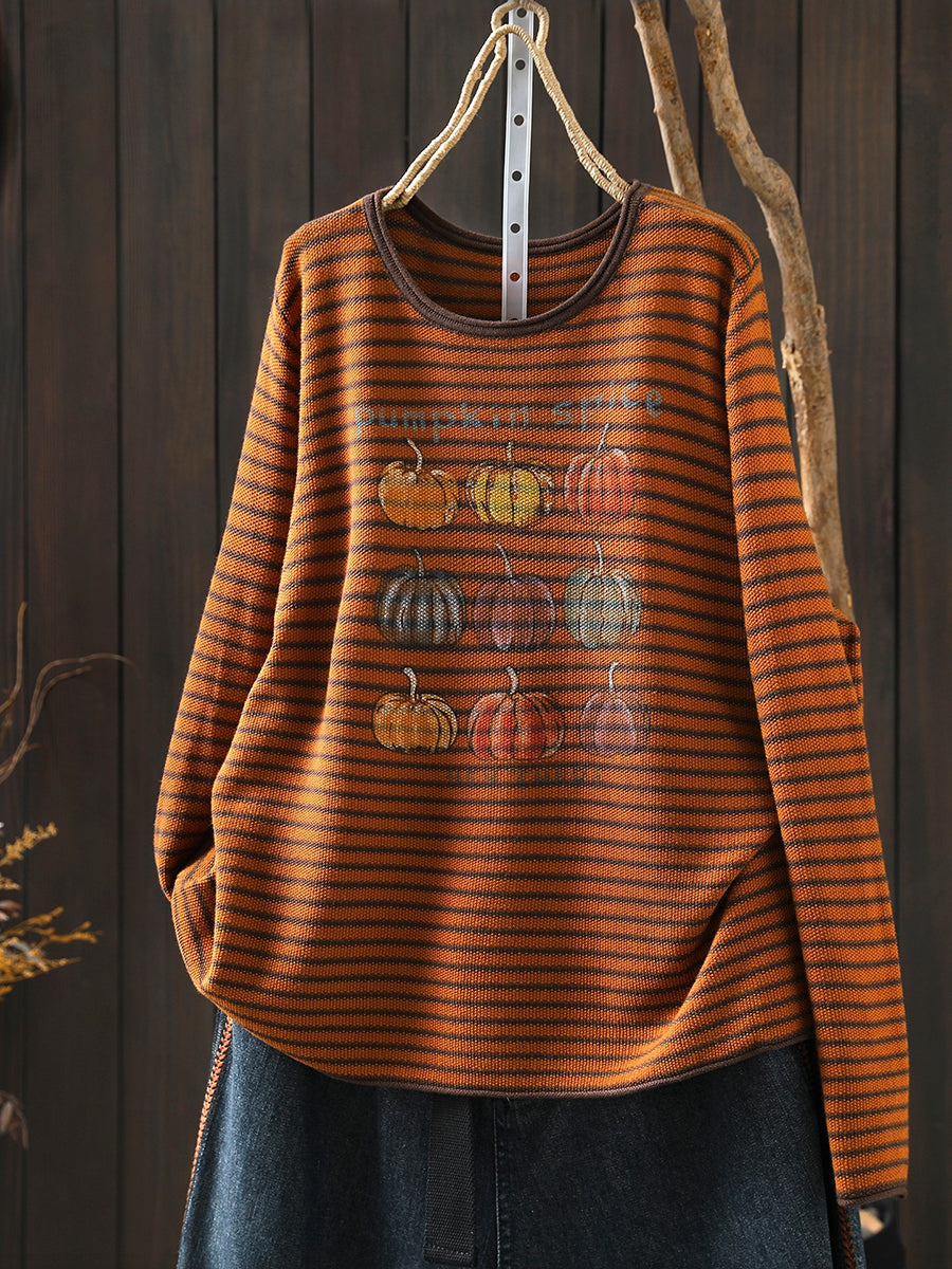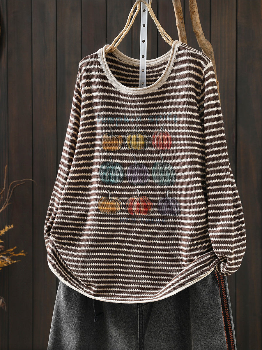 Lässige Damenbluse mit Streifenmuster und Rundhalsausschnitt in Kürbisform für den Frühling