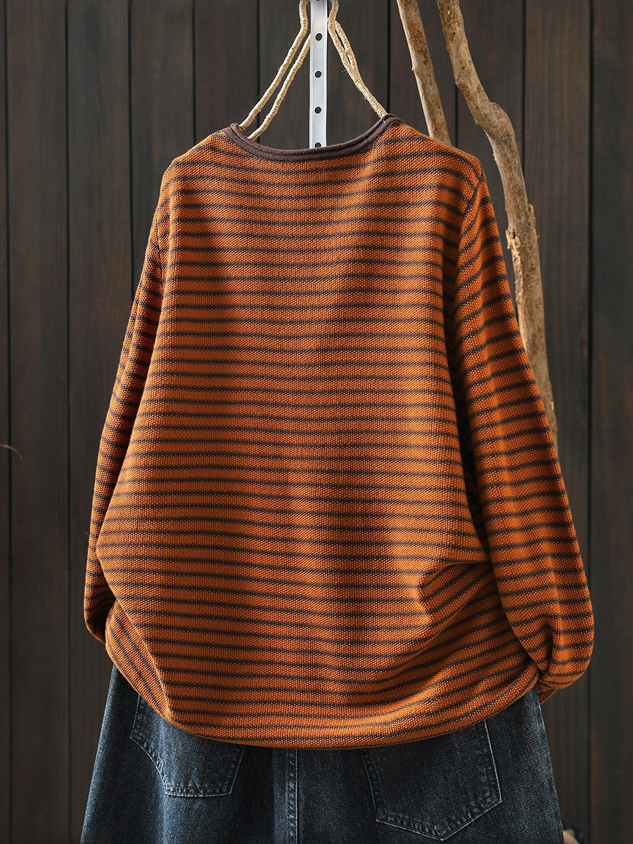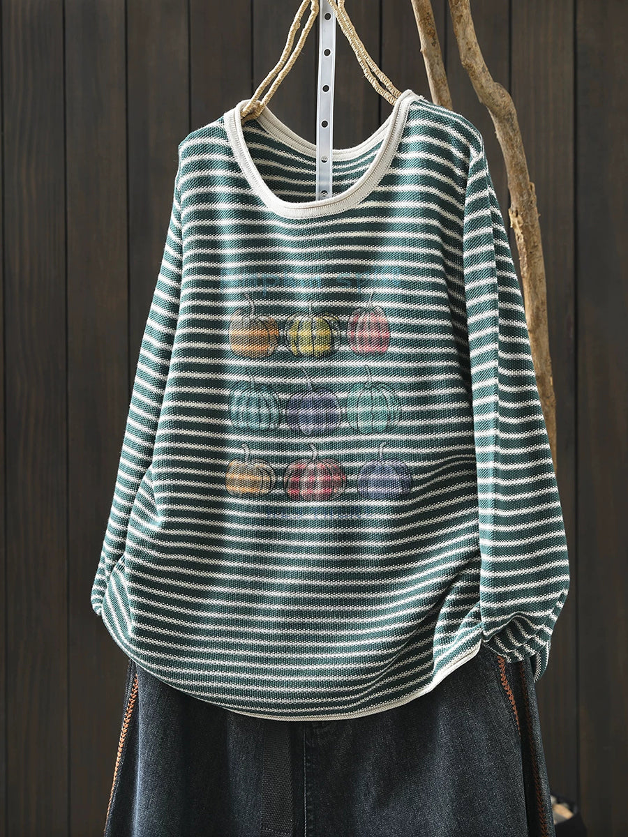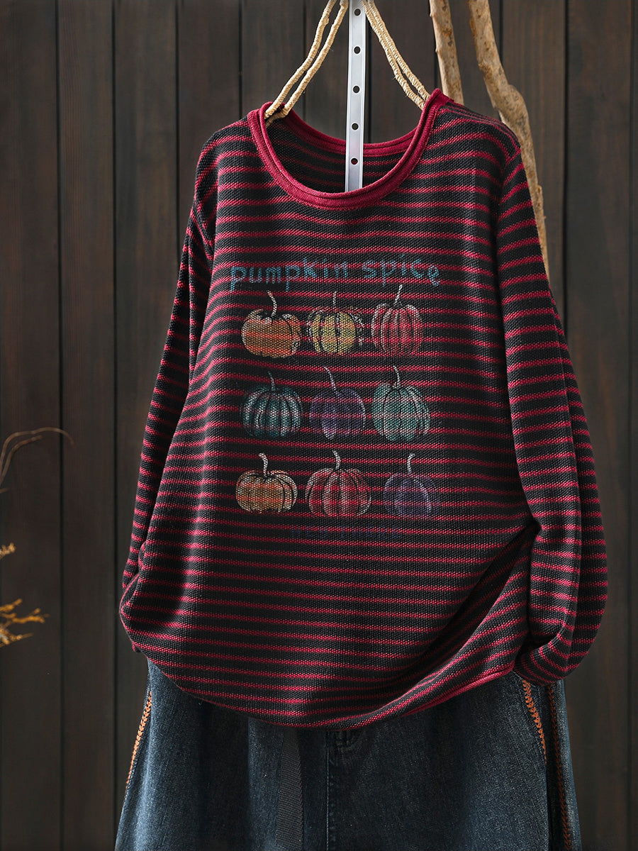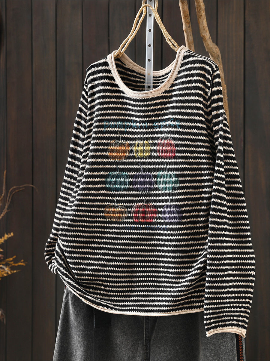 Lässige Damenbluse mit Streifenmuster und Rundhalsausschnitt in Kürbisform für den Frühling