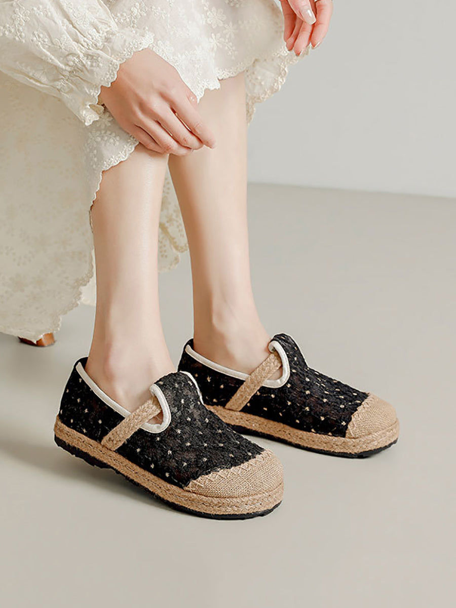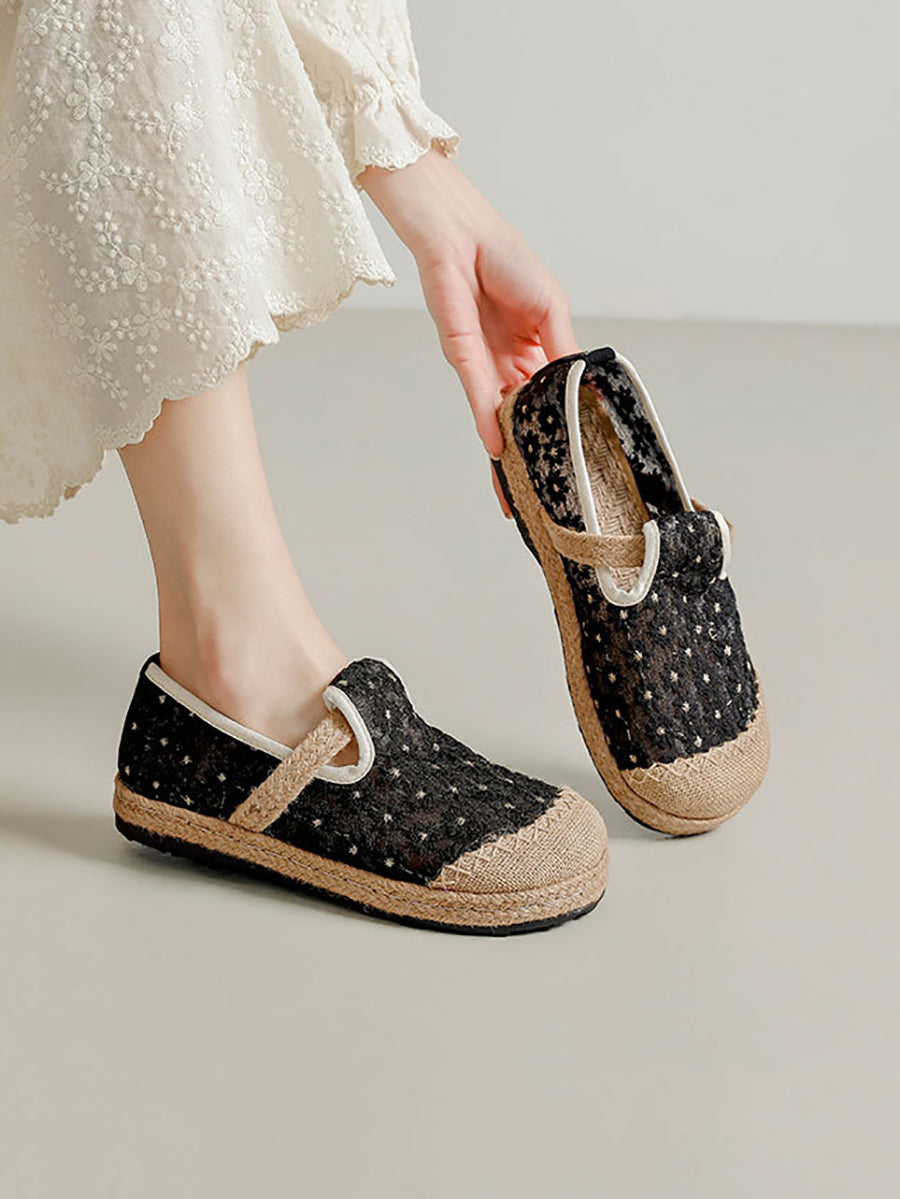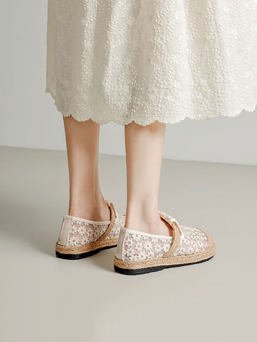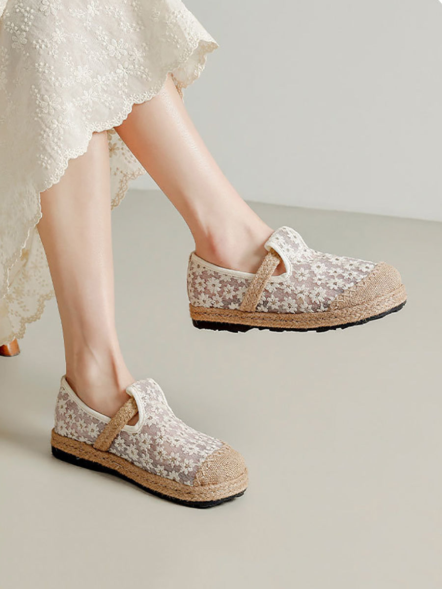 Damen-Flachschuhe mit ethnischer Blumenstickerei