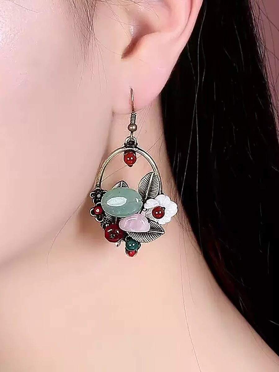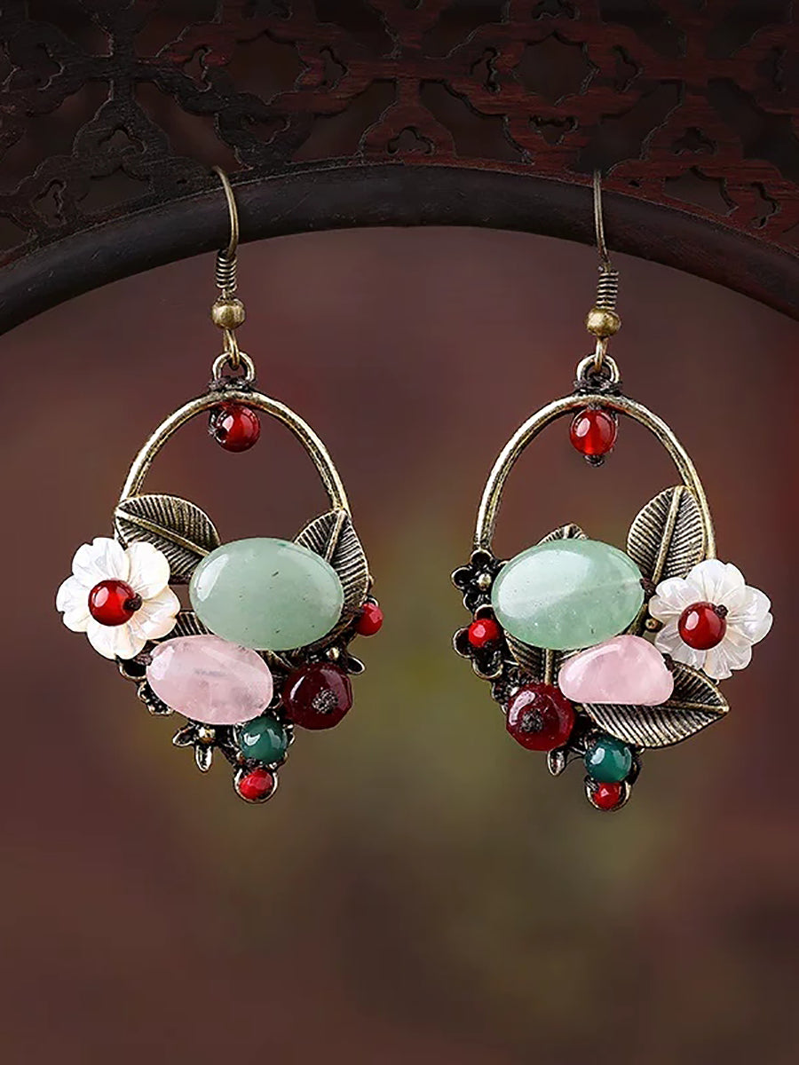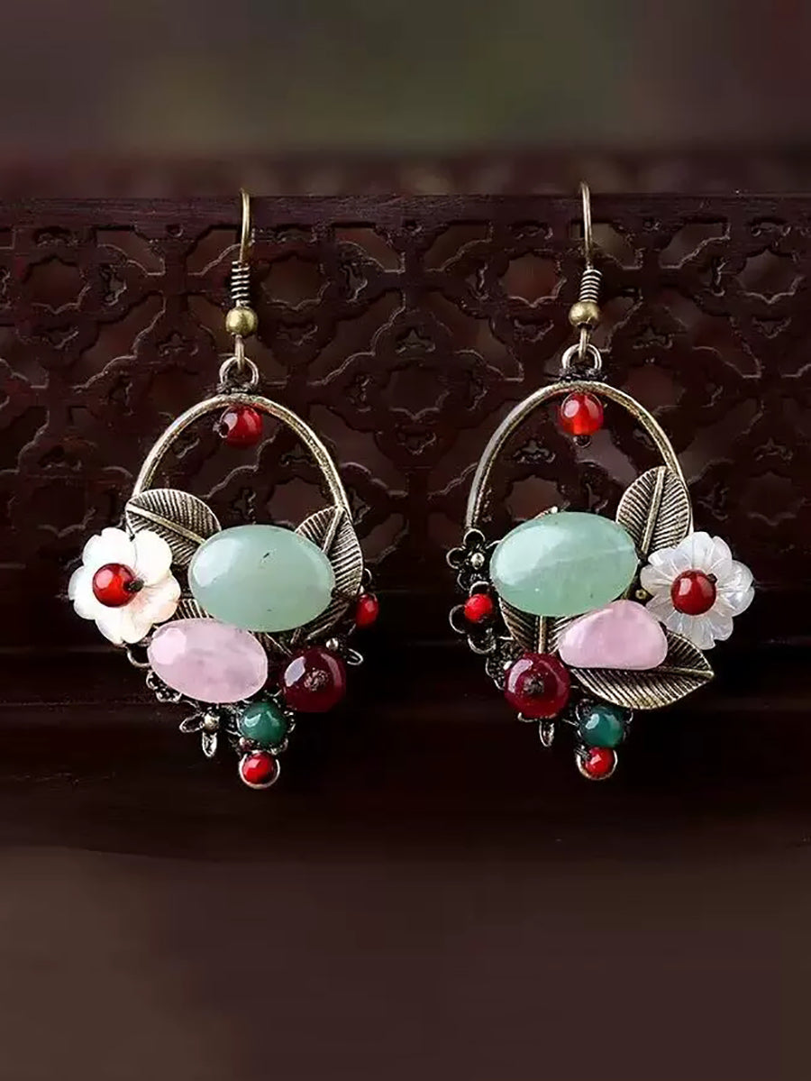 Ethnische Ohrringe aus Jadelegierung und Muscheln für Damen