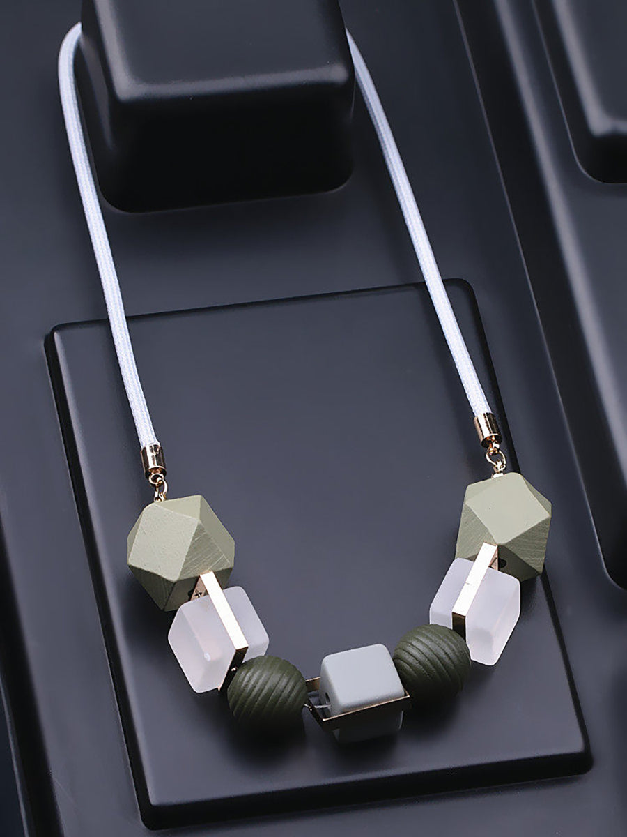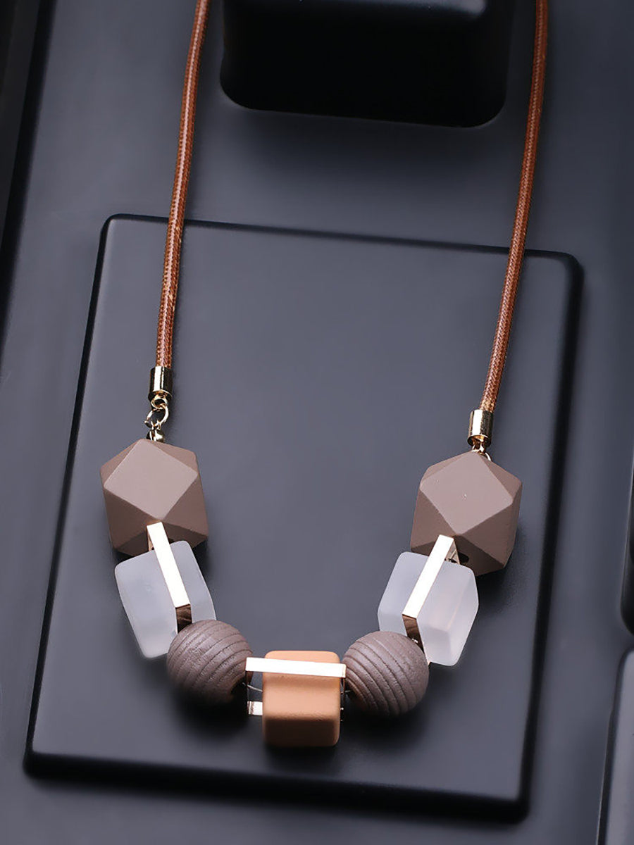 Halskette aus Kunstharz, Stein und Holz im Ethno-Stil für Damen