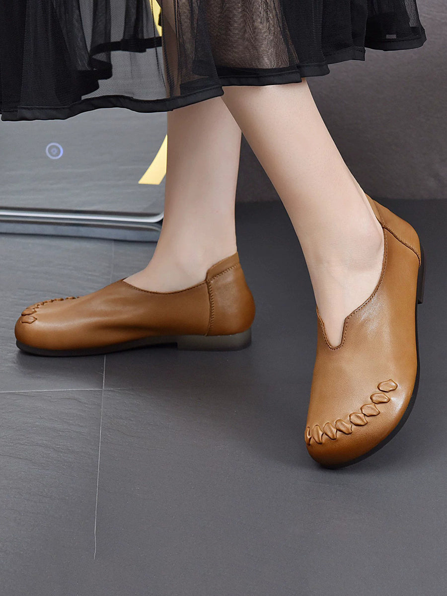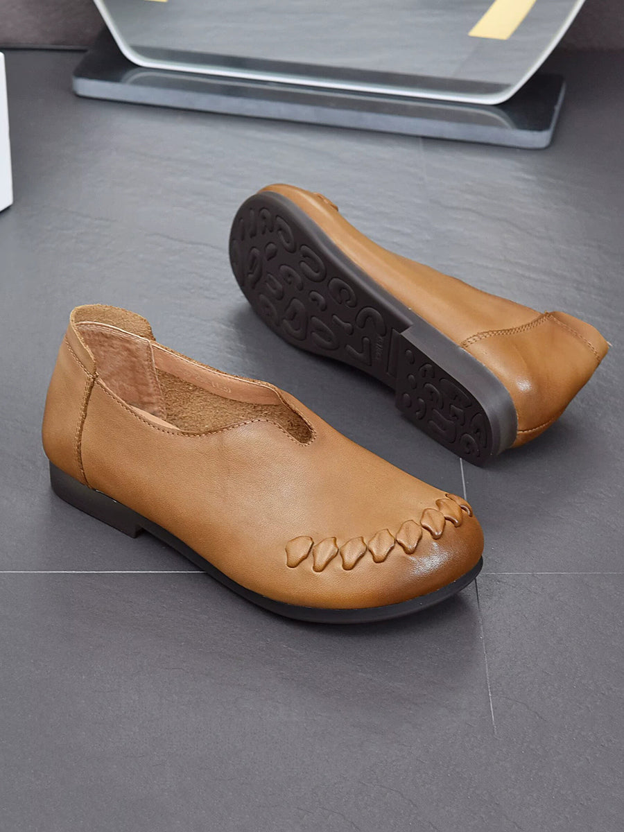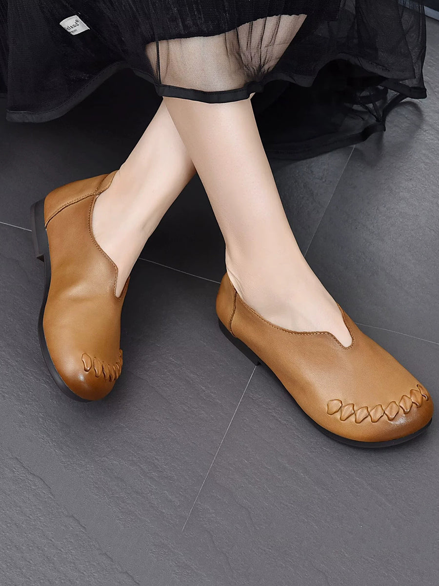 Vielseitige Damenschuhe aus echtem Leder mit niedrigem Absatz
