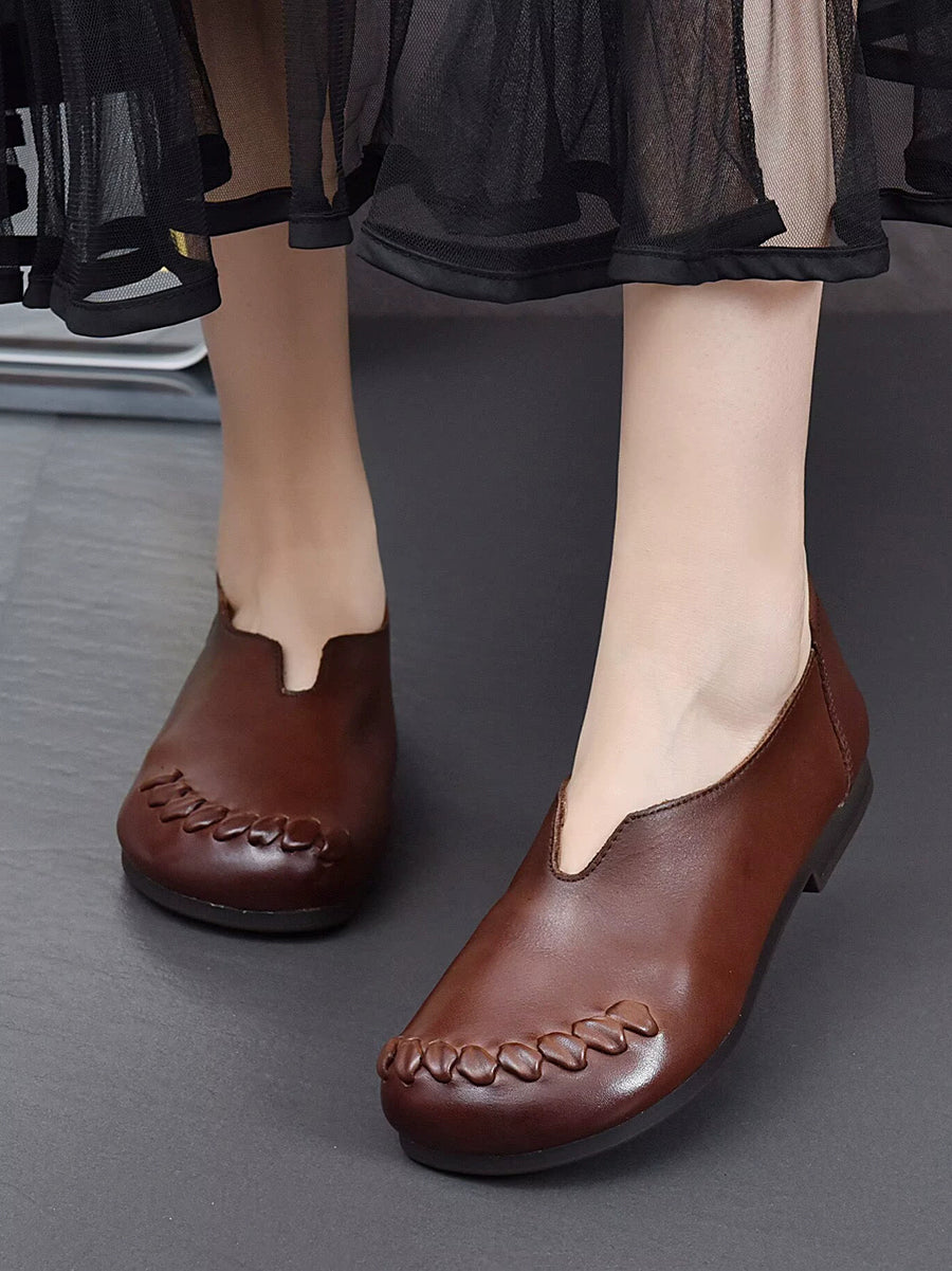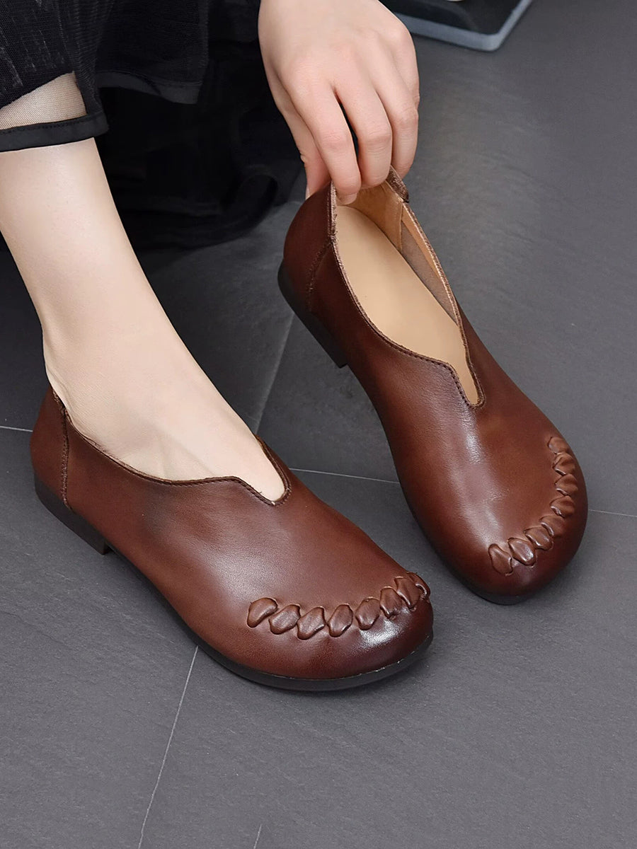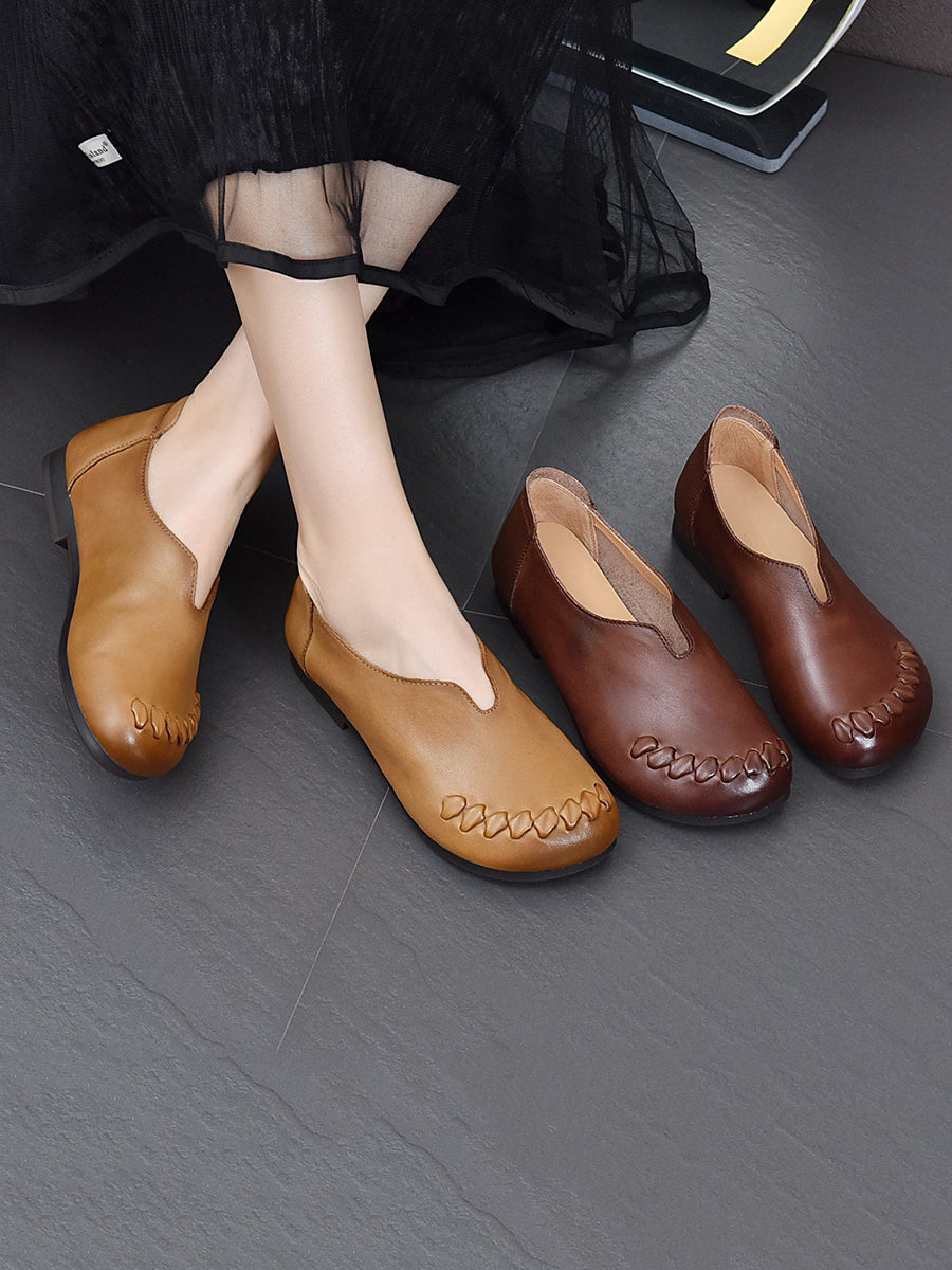 Vielseitige Damenschuhe aus echtem Leder mit niedrigem Absatz