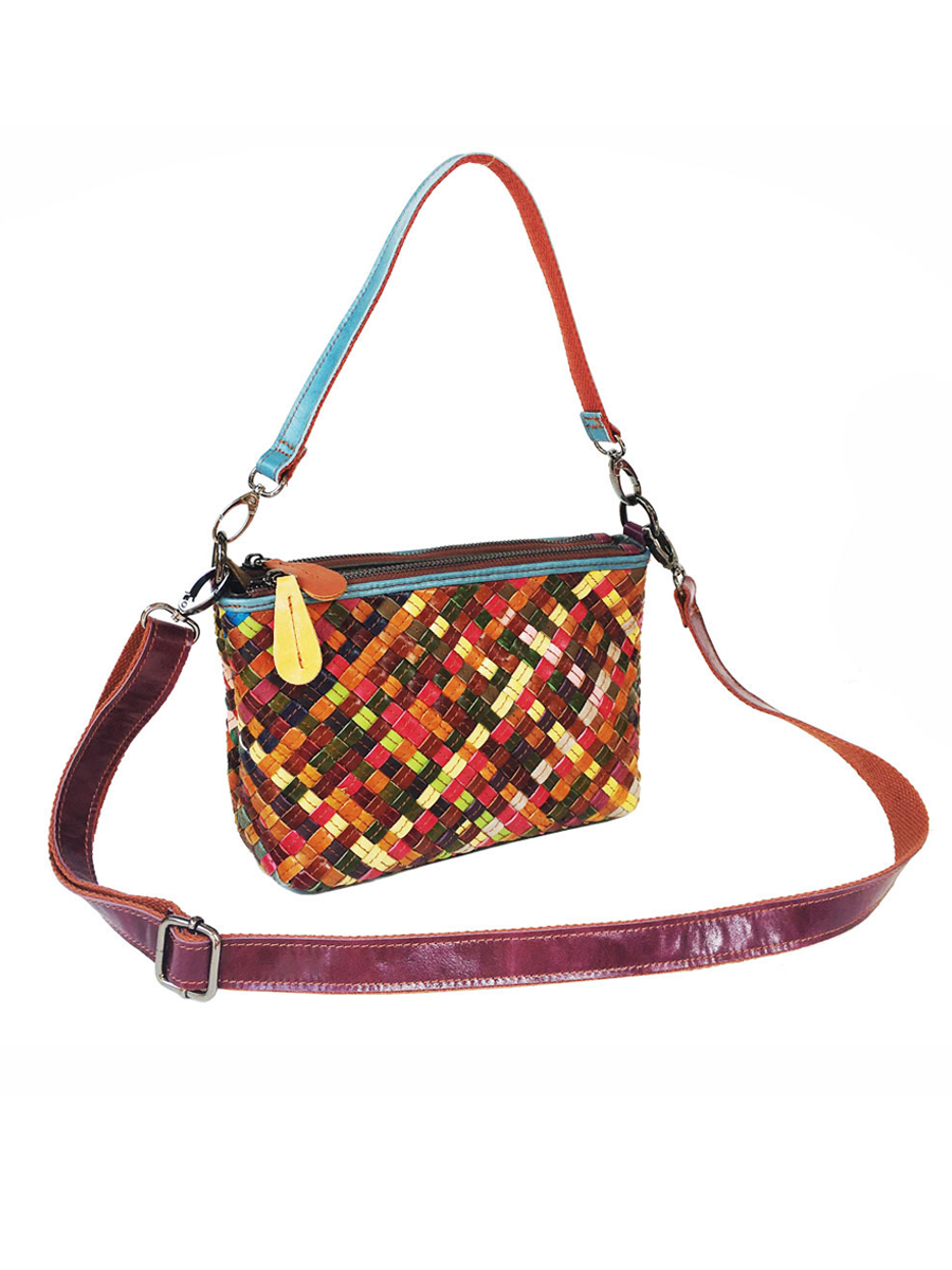 Handgewebte Damen-Umhängetasche aus Leder