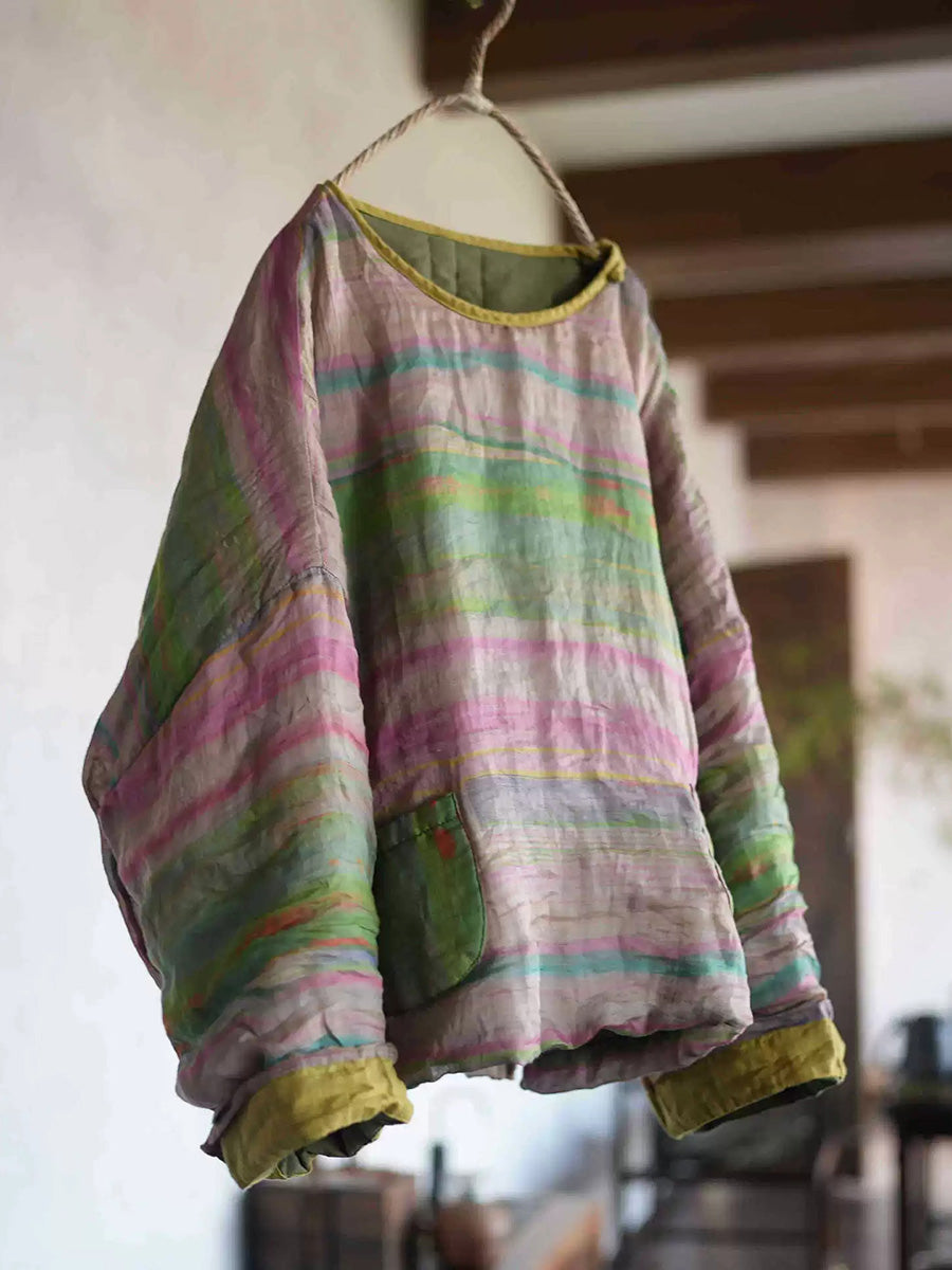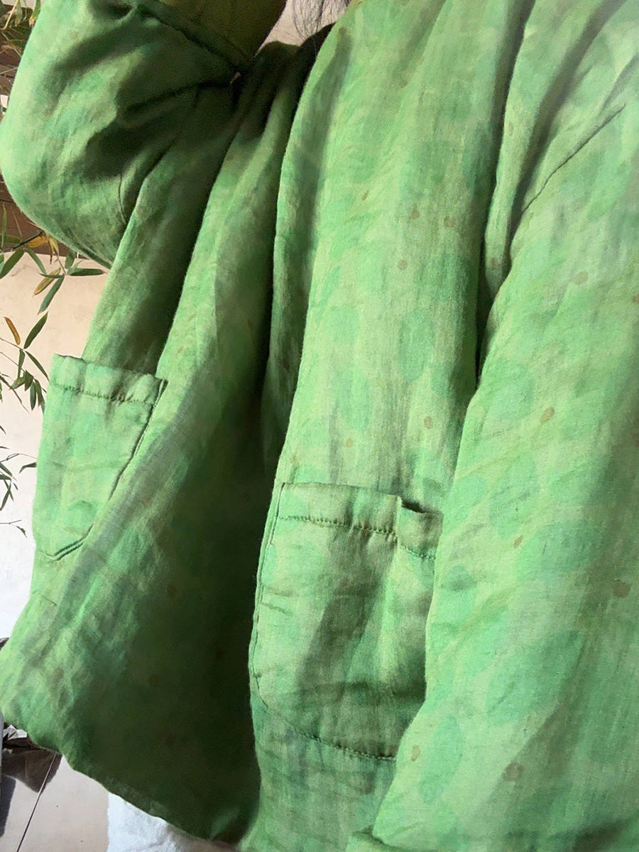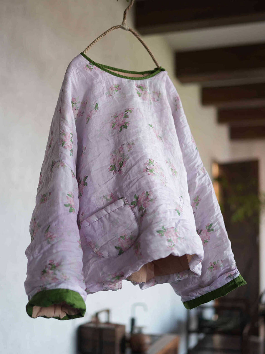 Damen Retro-Blumenmuster Ramie-Wattierter Rundhalsmantel