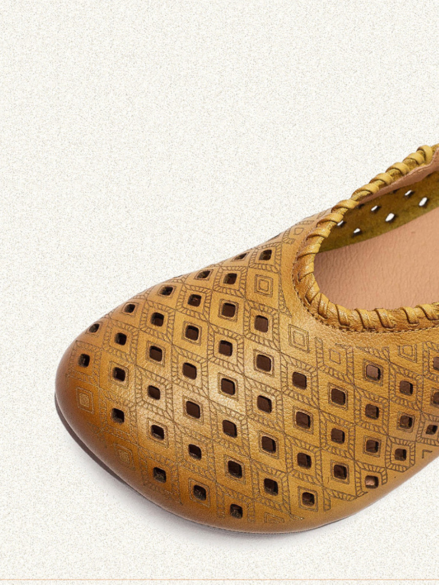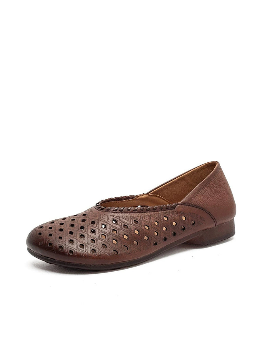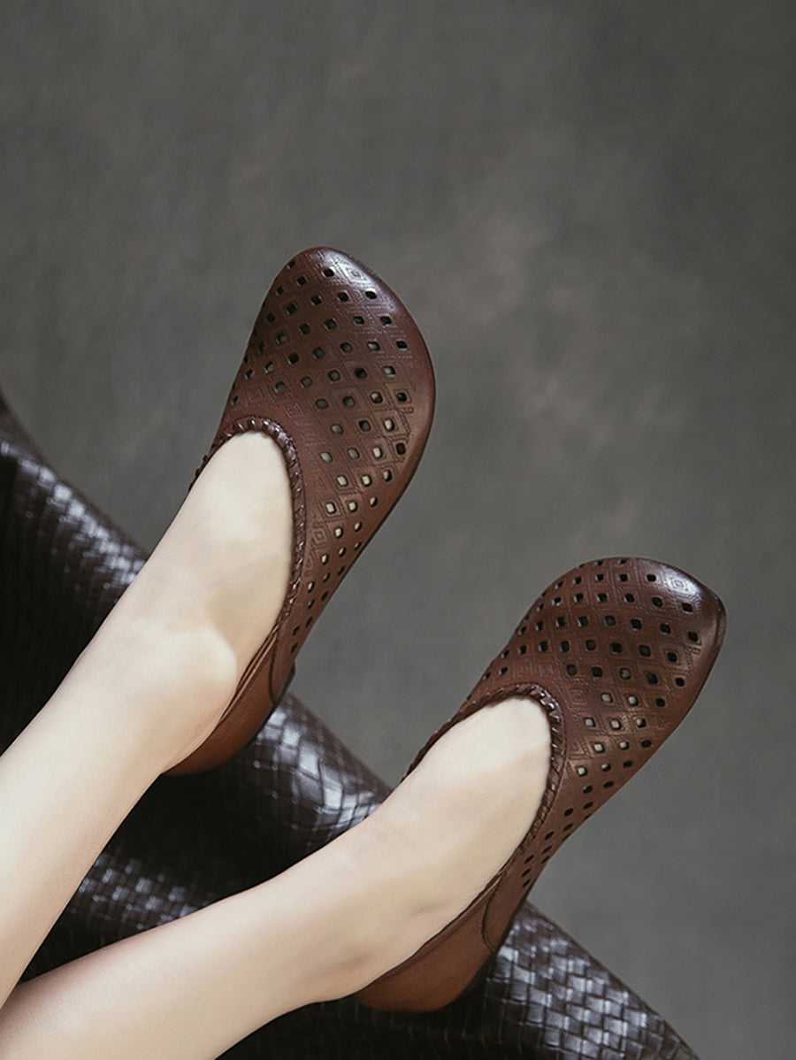 Retro-Sandalen aus echtem Leder für Damen mit niedrigem Absatz