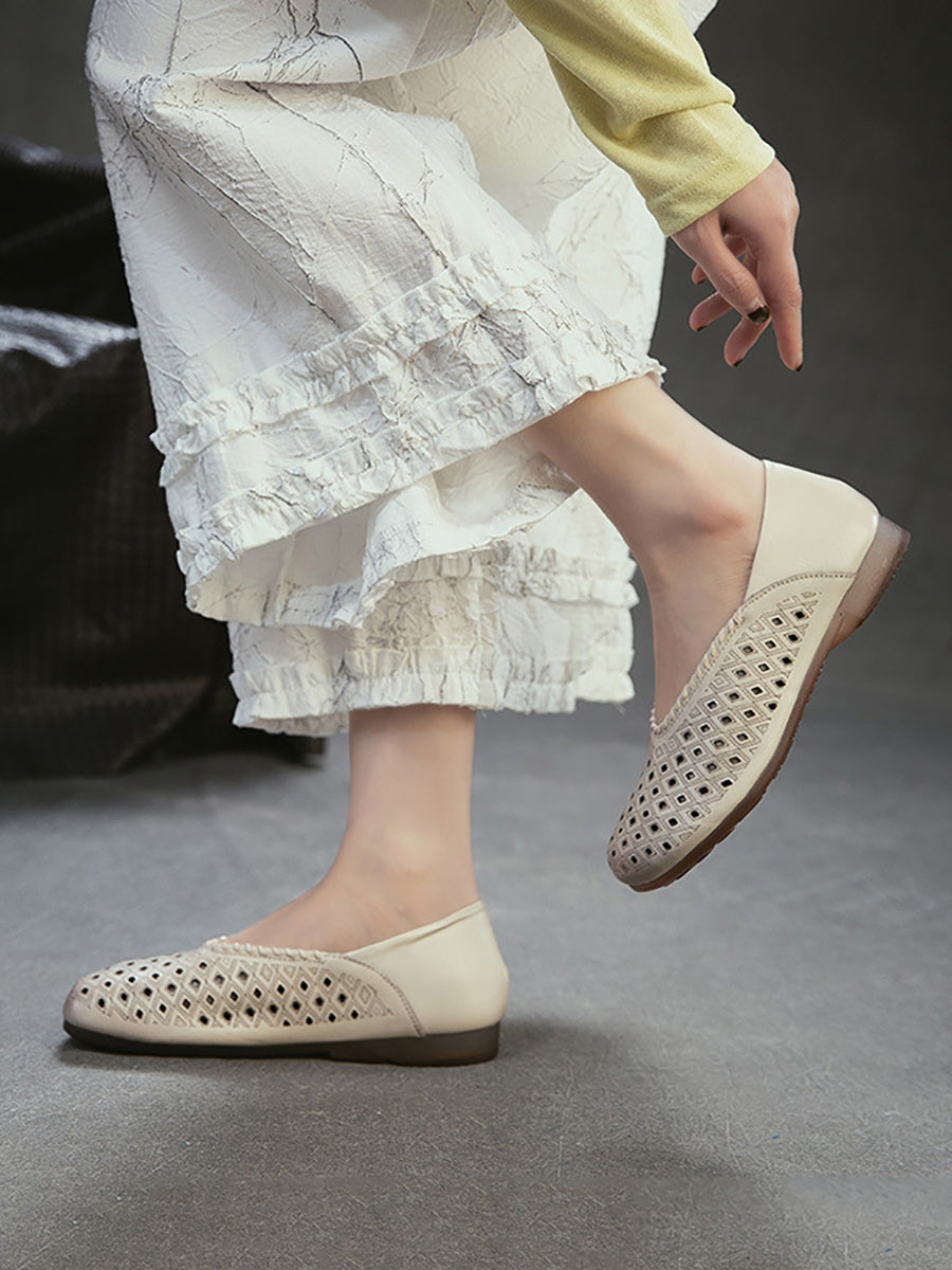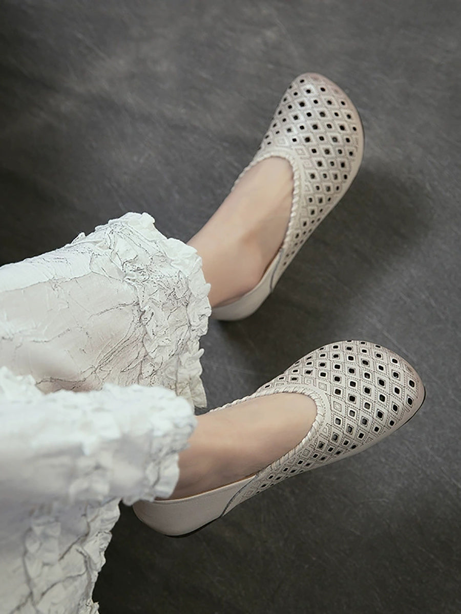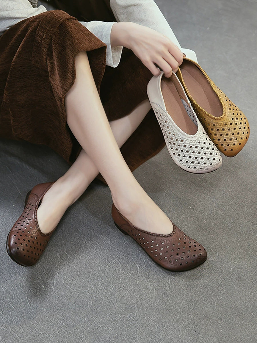 Retro-Sandalen aus echtem Leder für Damen mit niedrigem Absatz