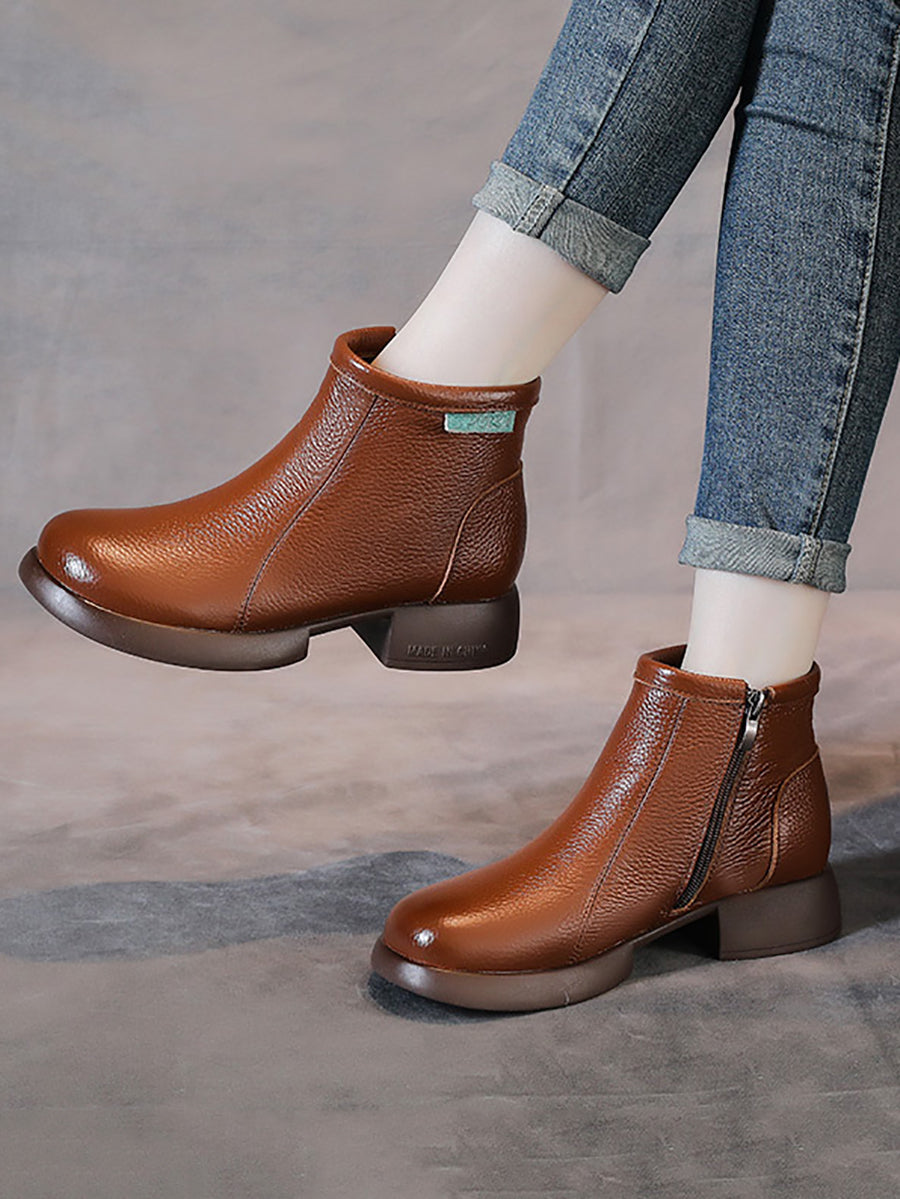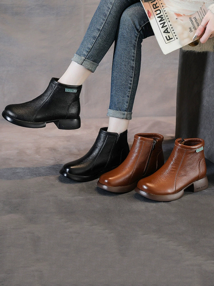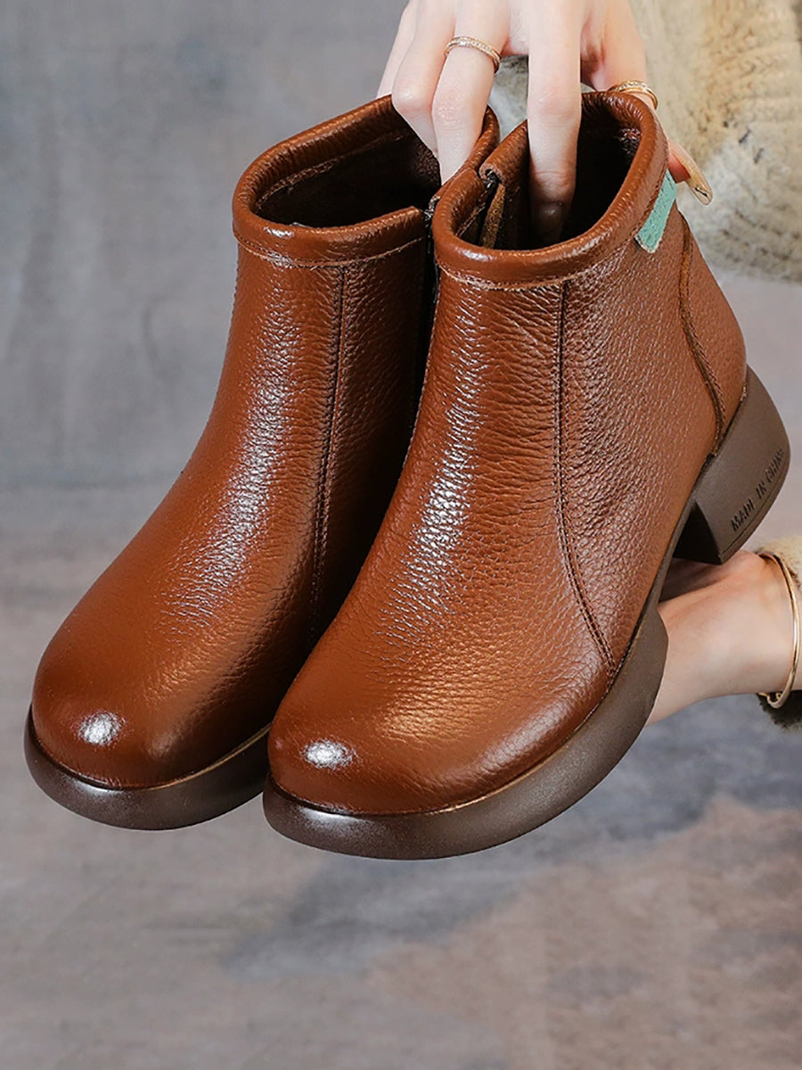 Retro-Ankle-Boots aus echtem Leder für Damen mit mittelhohem Absatz