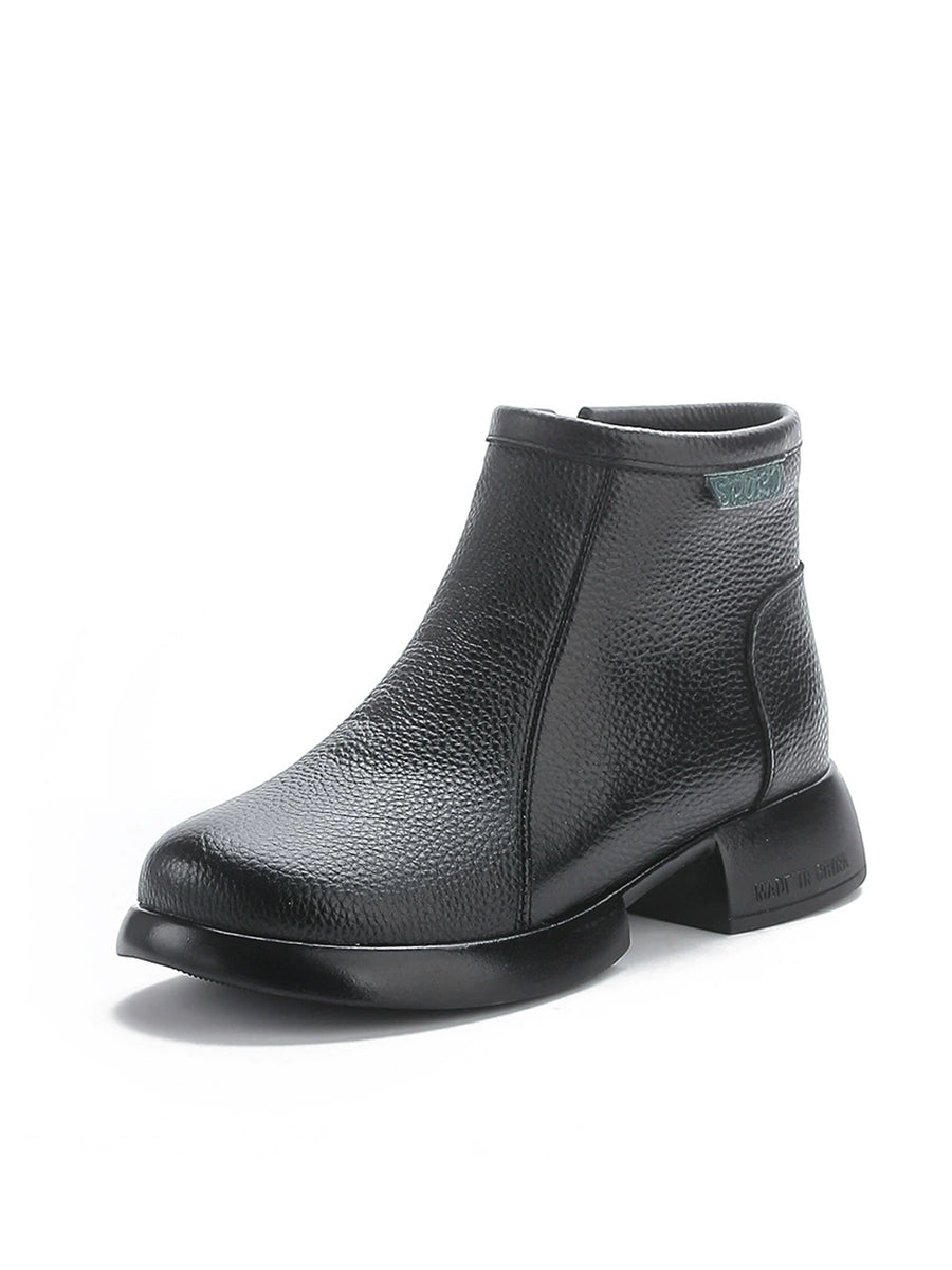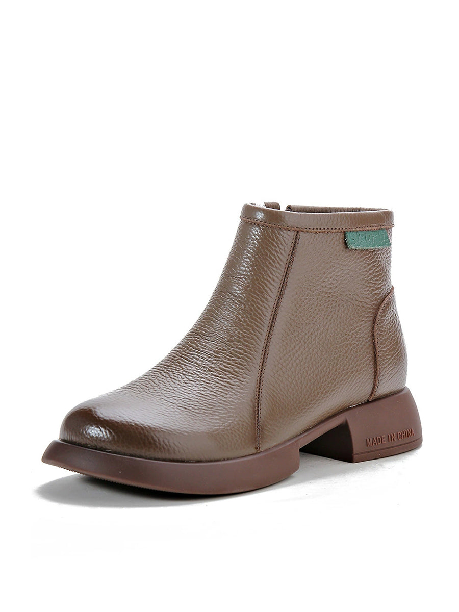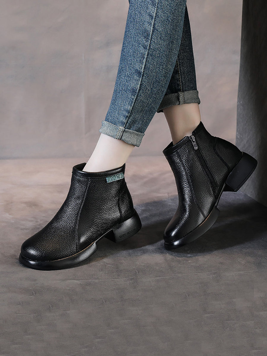 Retro-Ankle-Boots aus echtem Leder für Damen mit mittelhohem Absatz