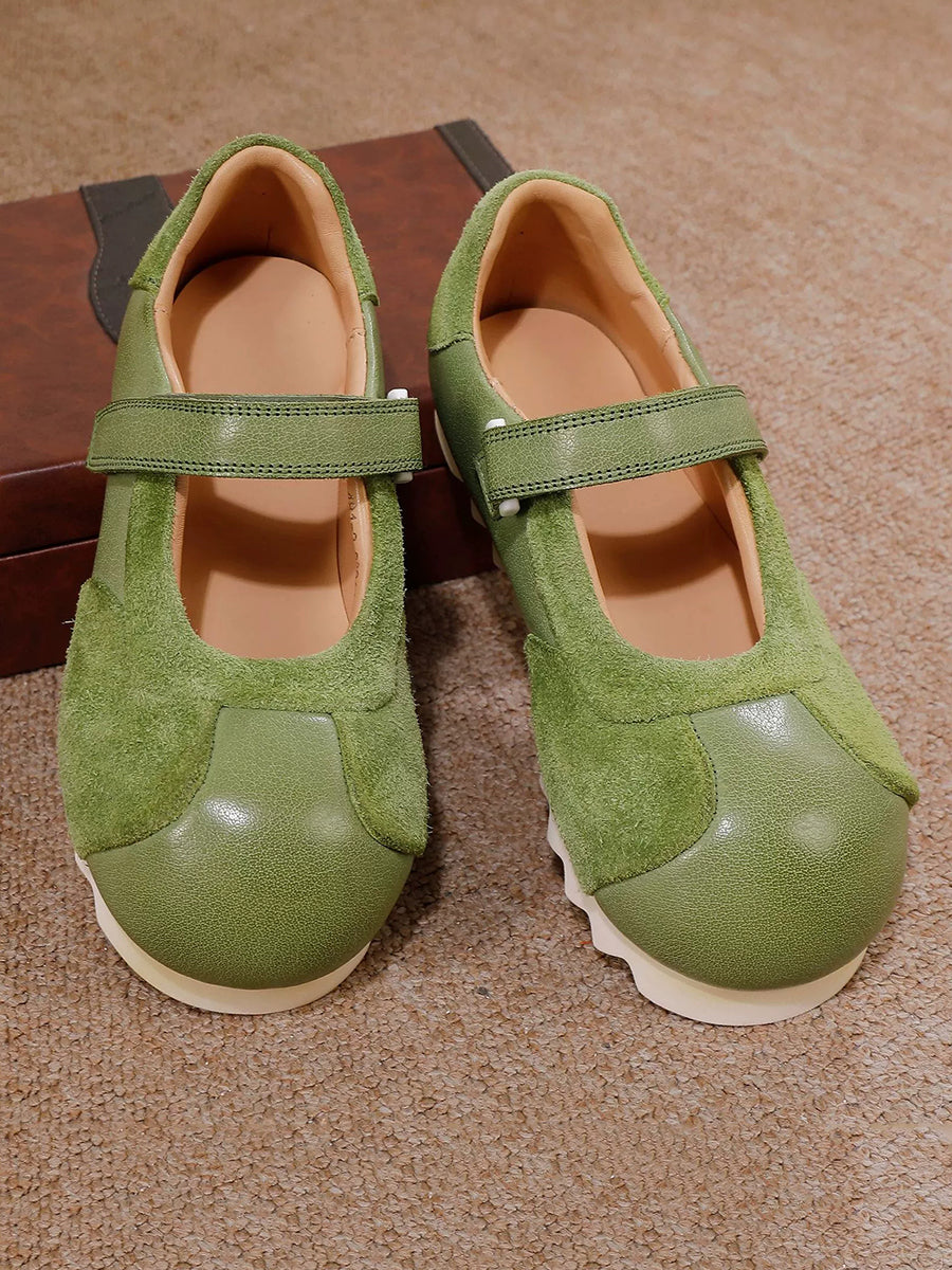Retro-Ballerinas aus echtem Leder für Damen