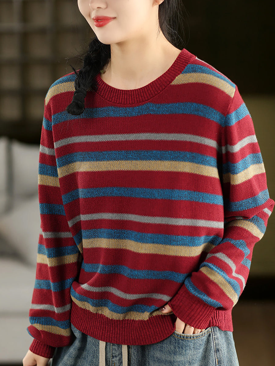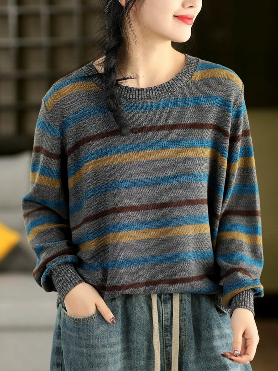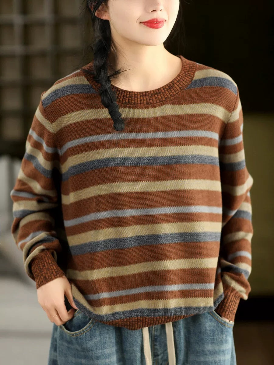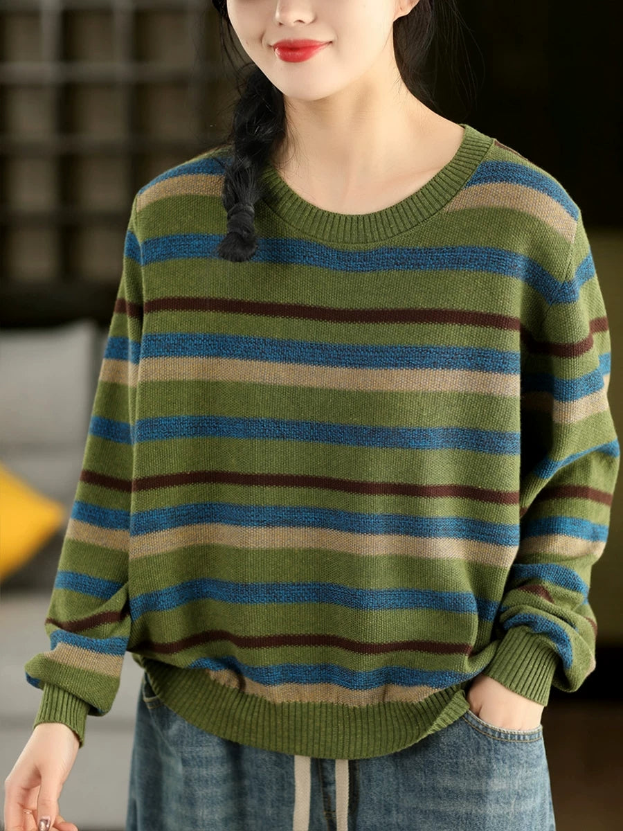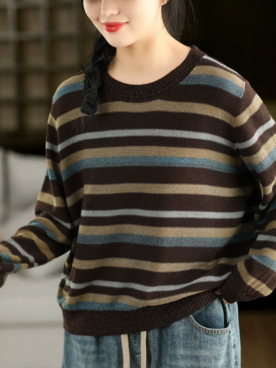 Damen Retro Frühlingsstreifen Rundhalspullover
