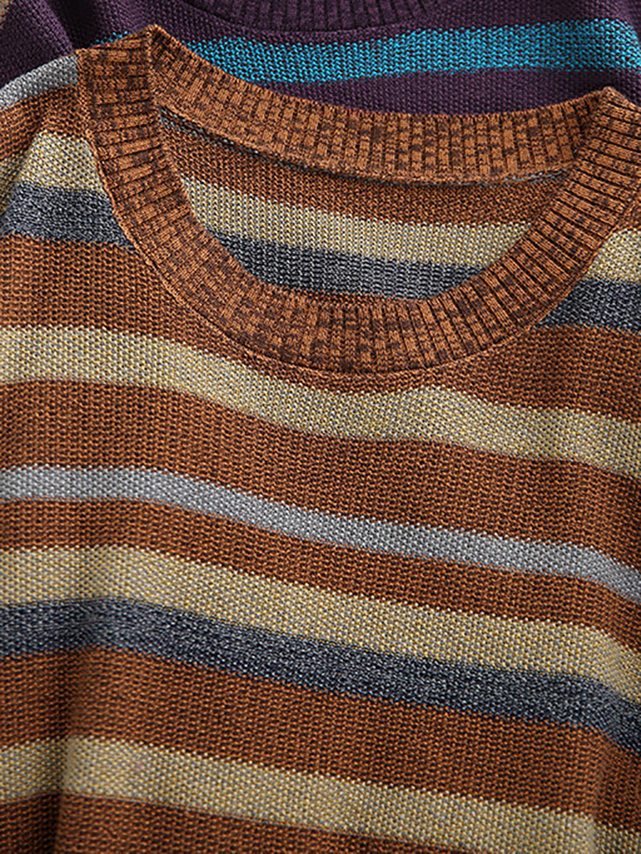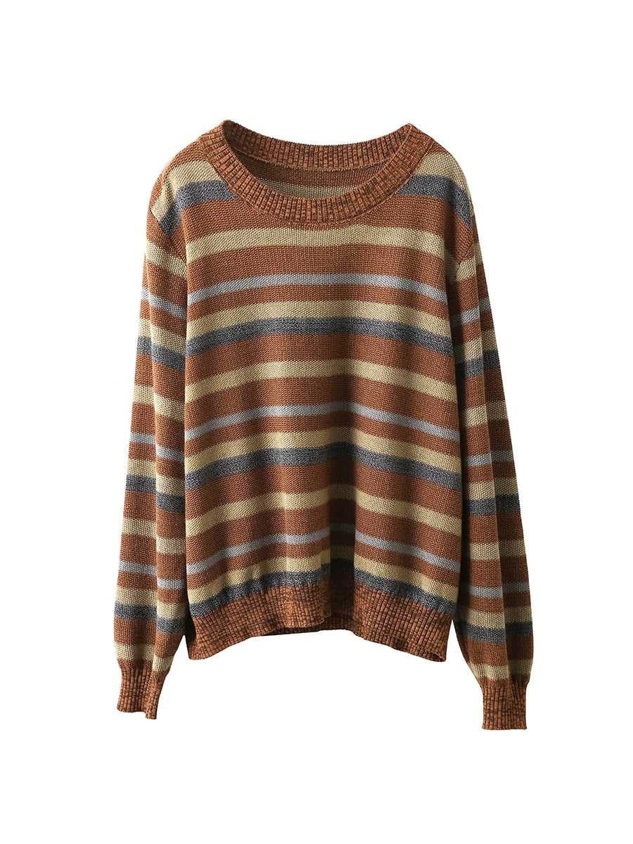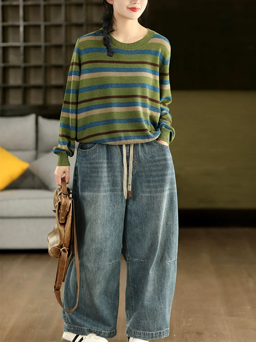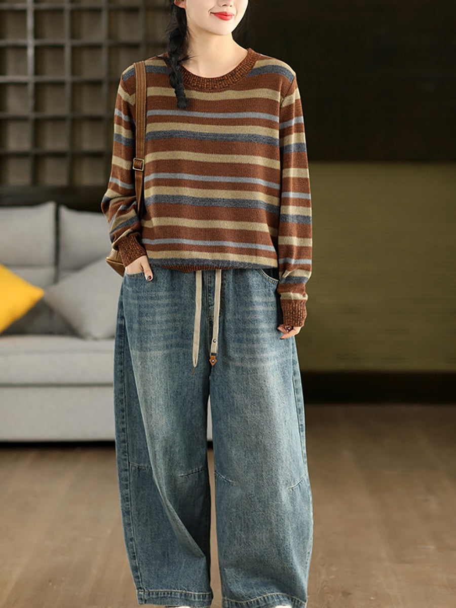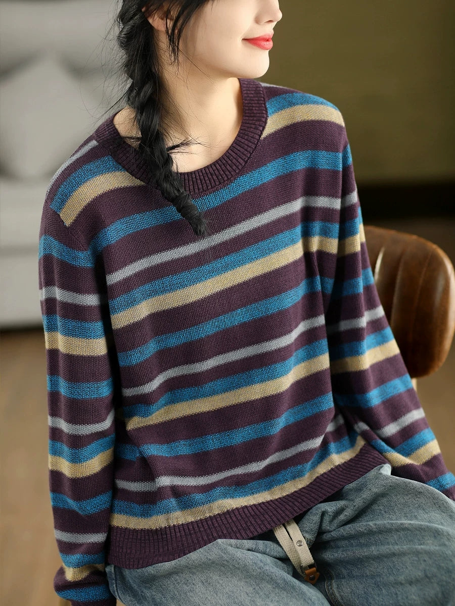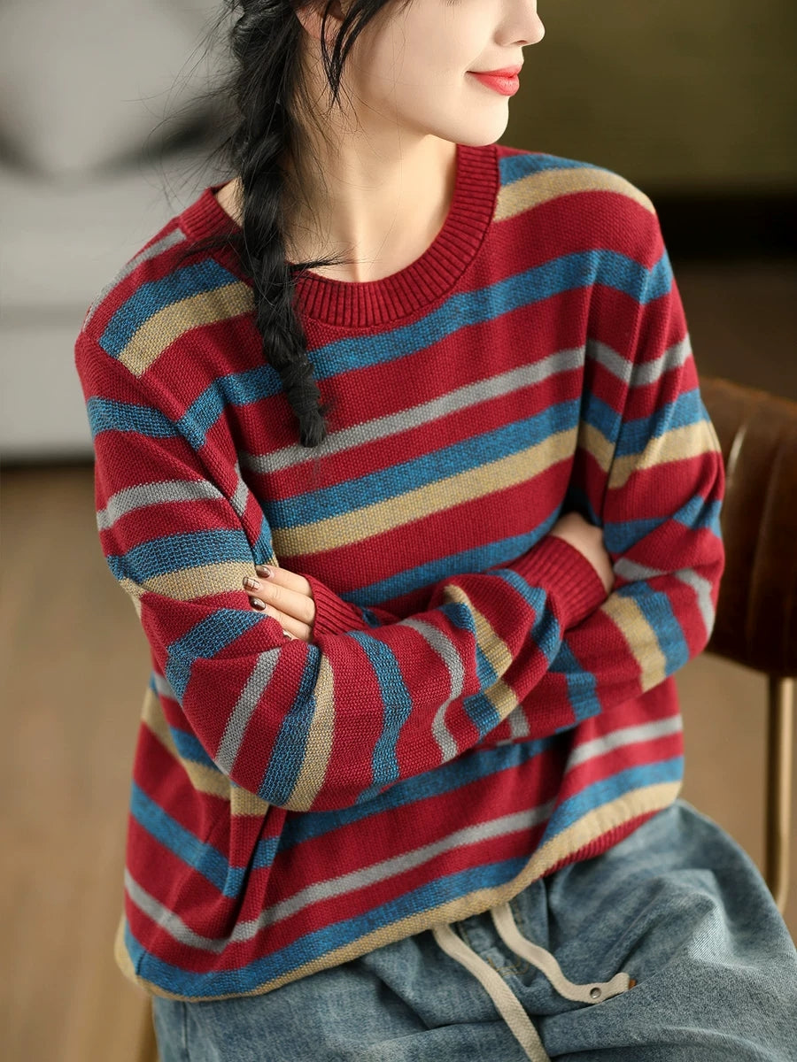 Damen Retro Frühlingsstreifen Rundhalspullover