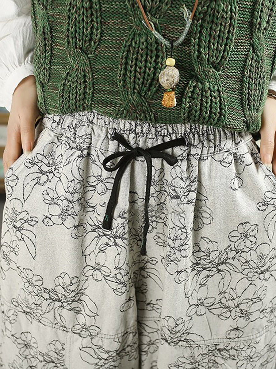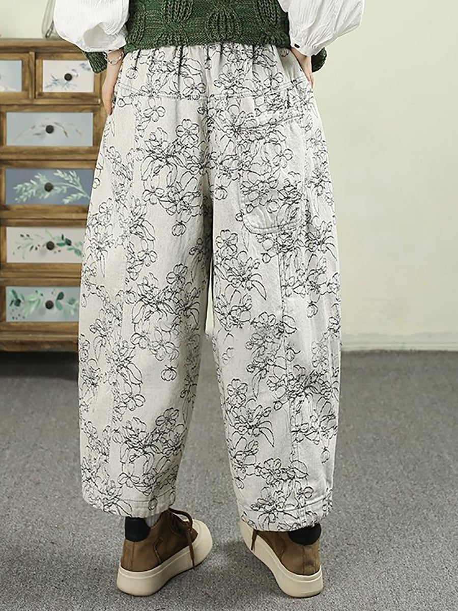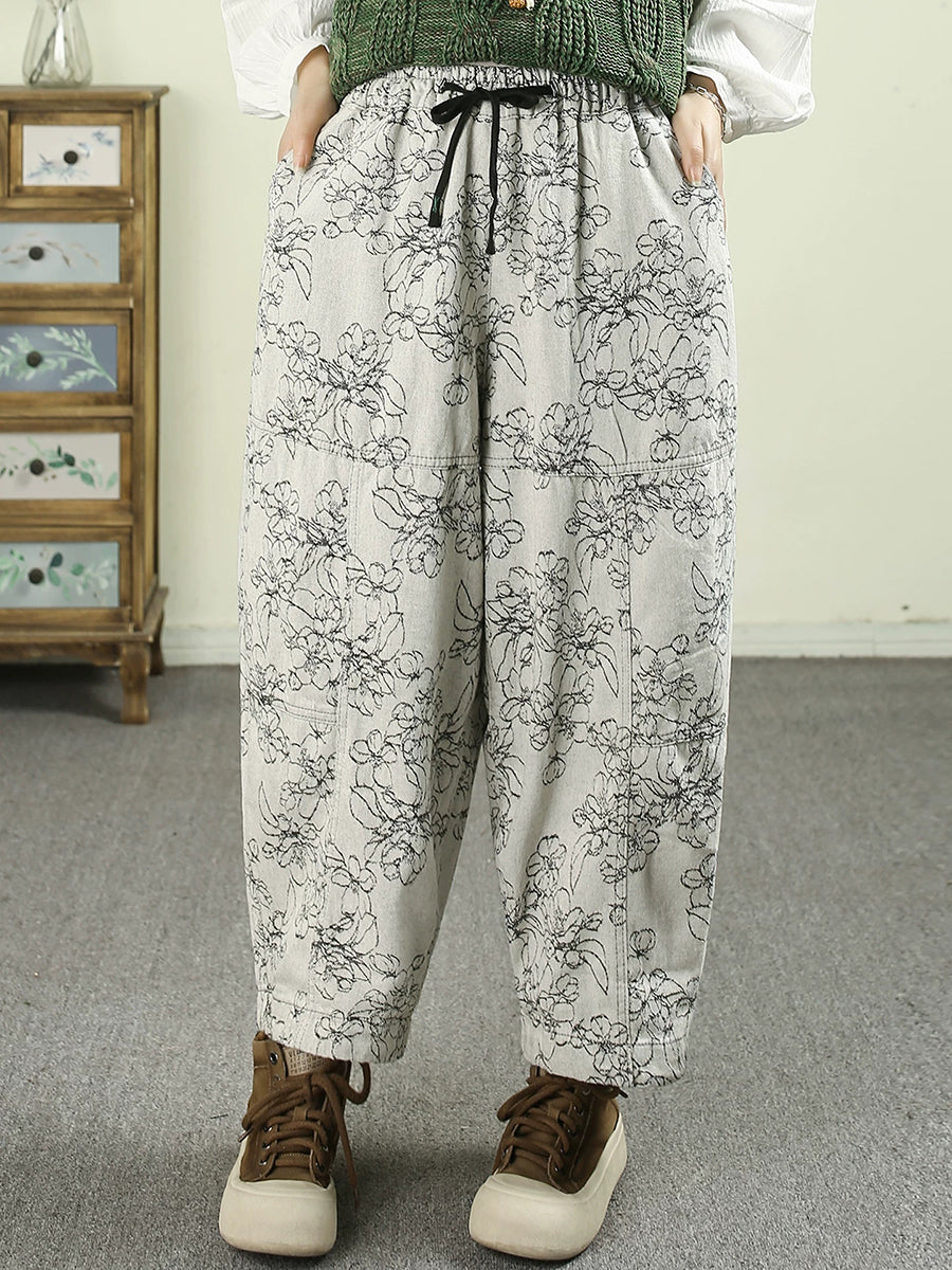 Damen Frühlingshafte Haremshose aus Denim mit Blumenmuster