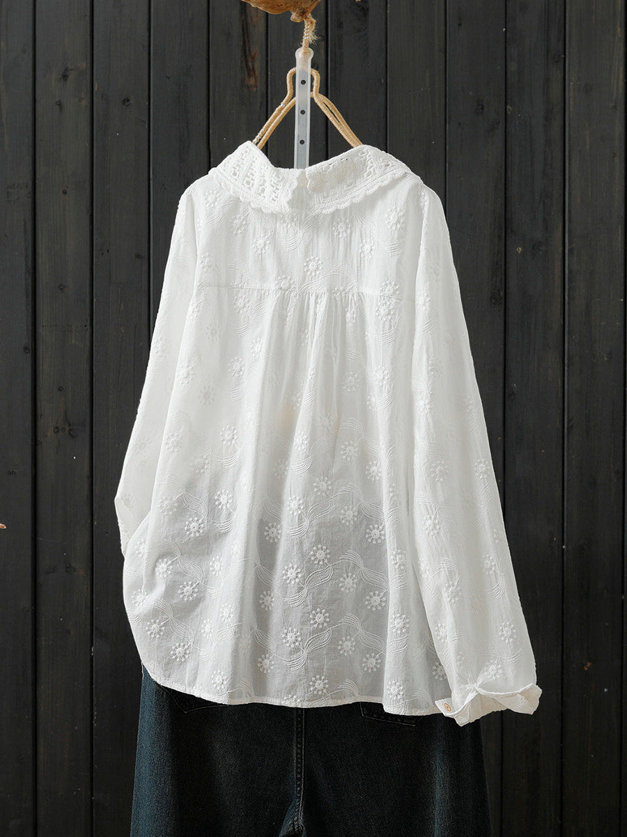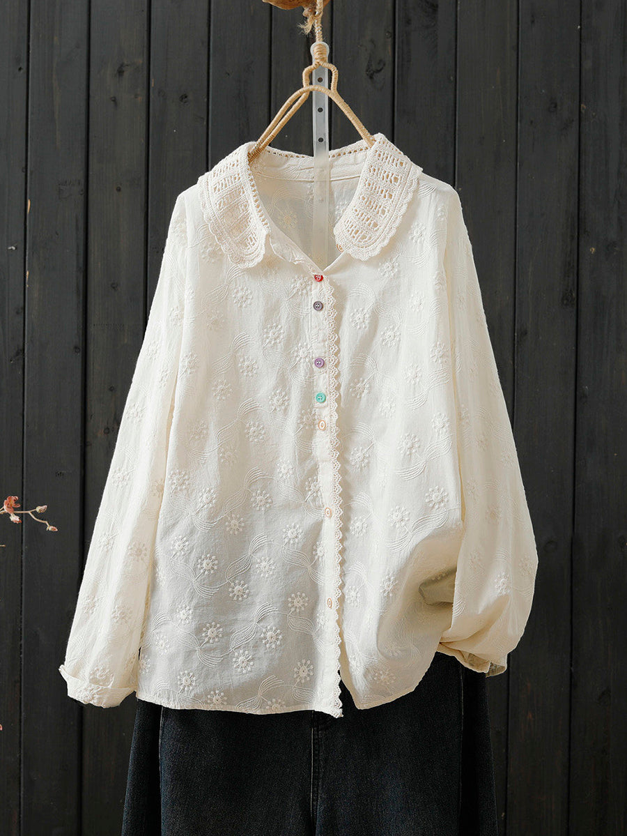 Damen-Frühlingsbluse mit kunstvoller Stickerei aus 100 % Baumwolle