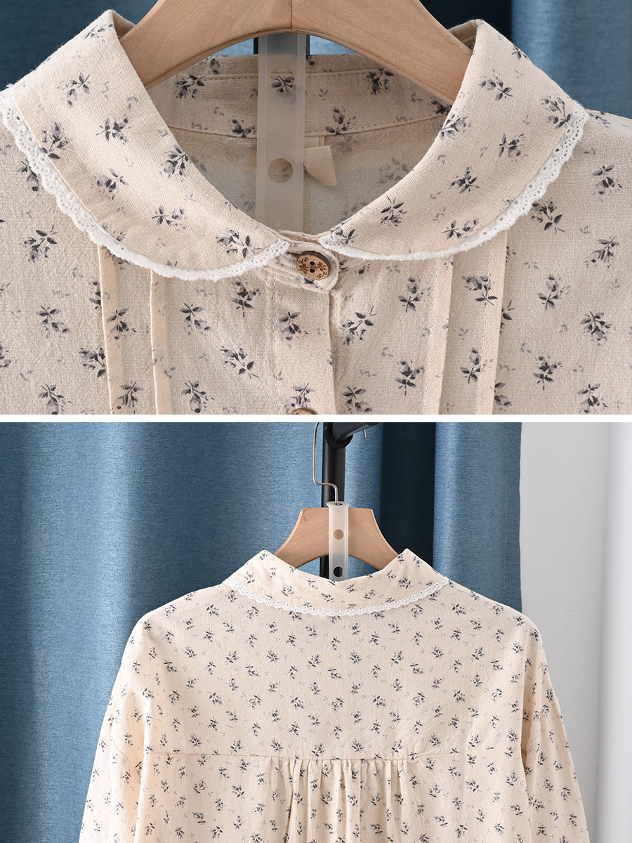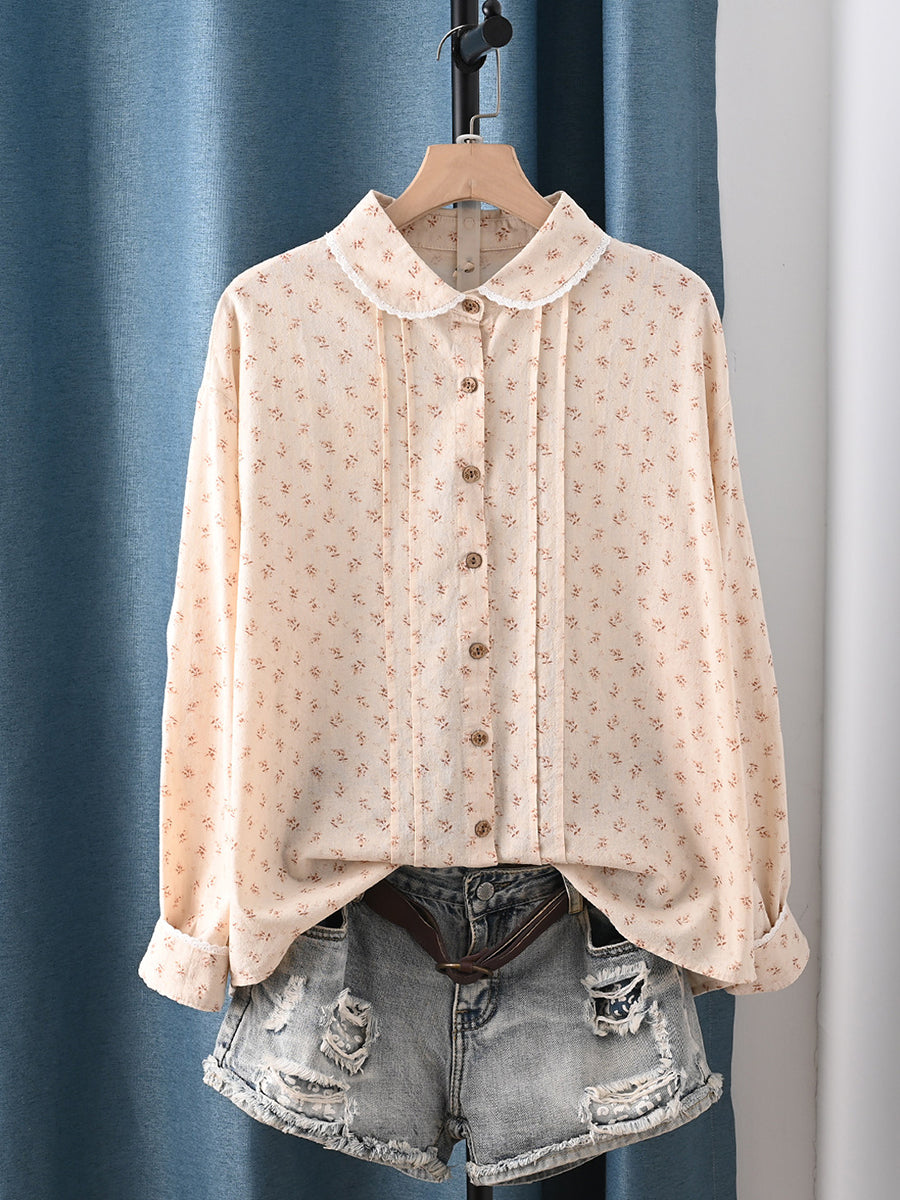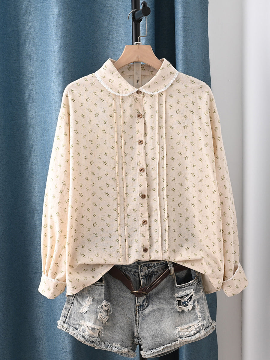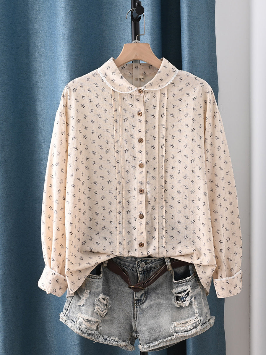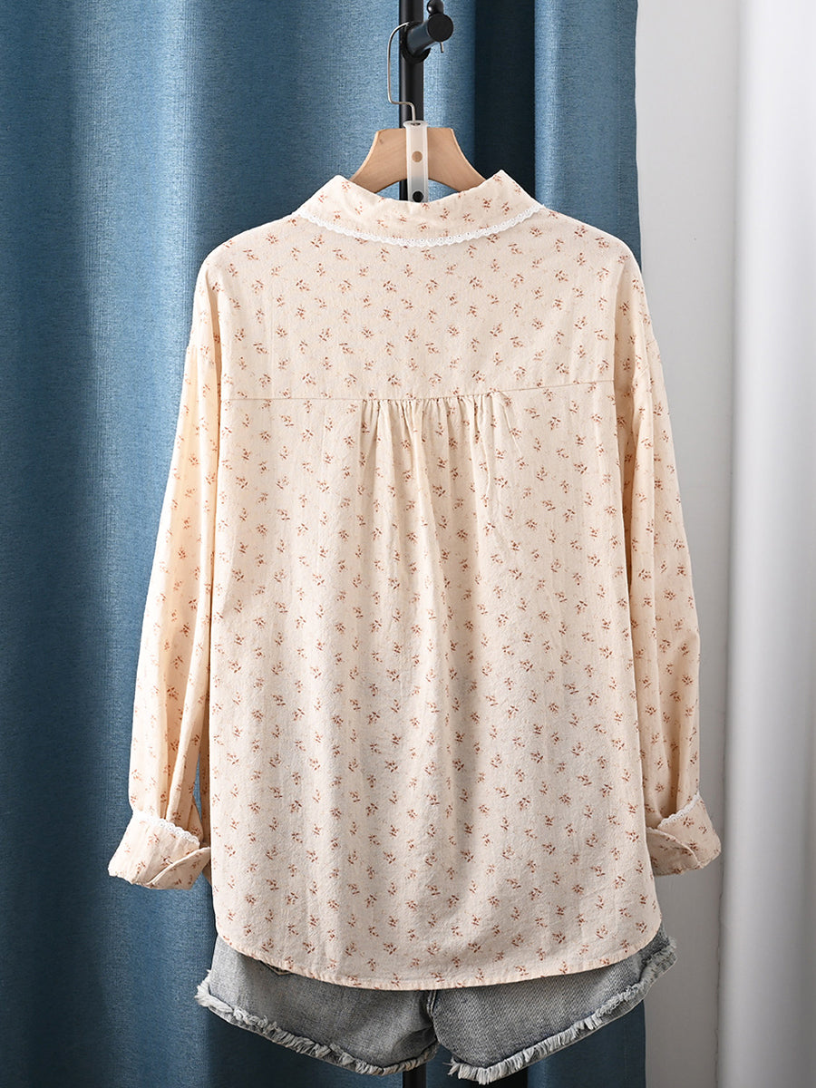Damen Frühlingsbluse mit künstlerischem Blumenmuster aus 100 % Baumwolle mit Umlegekragen